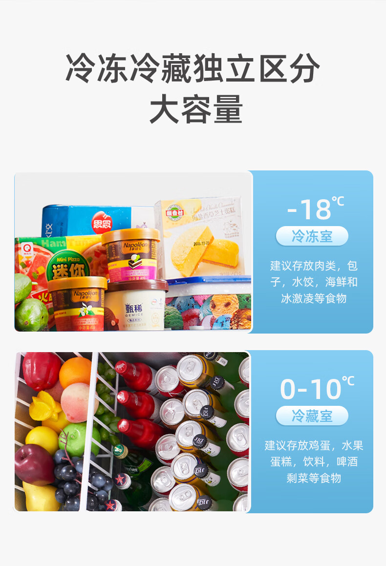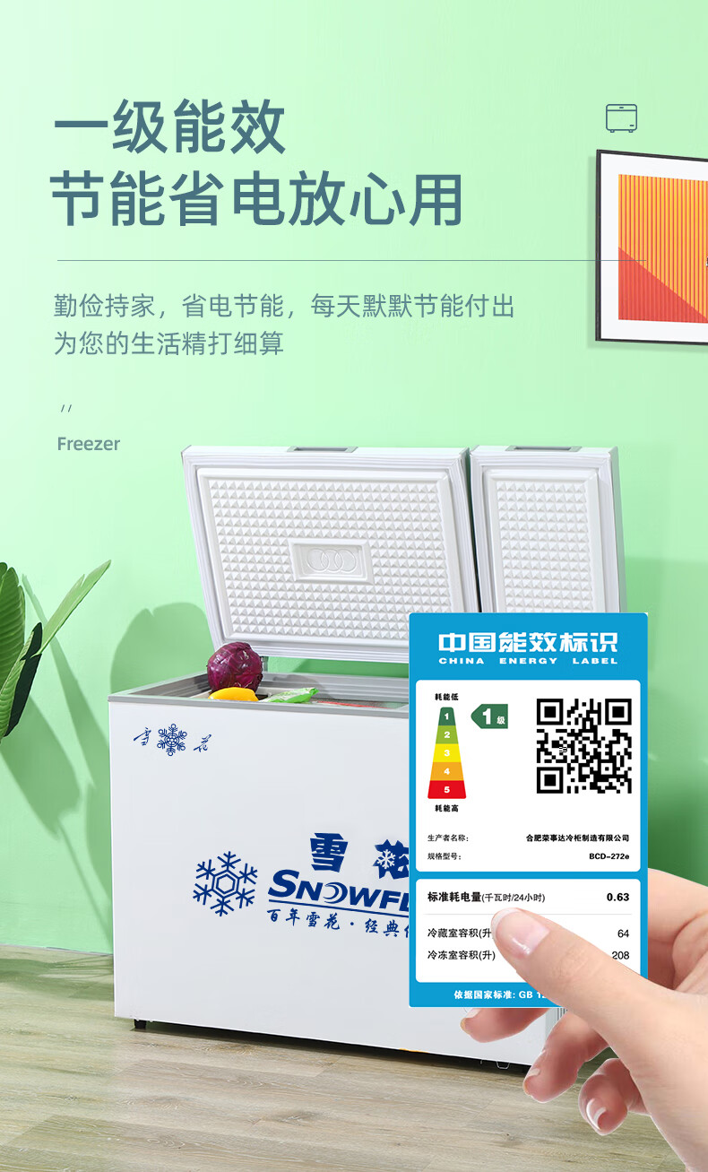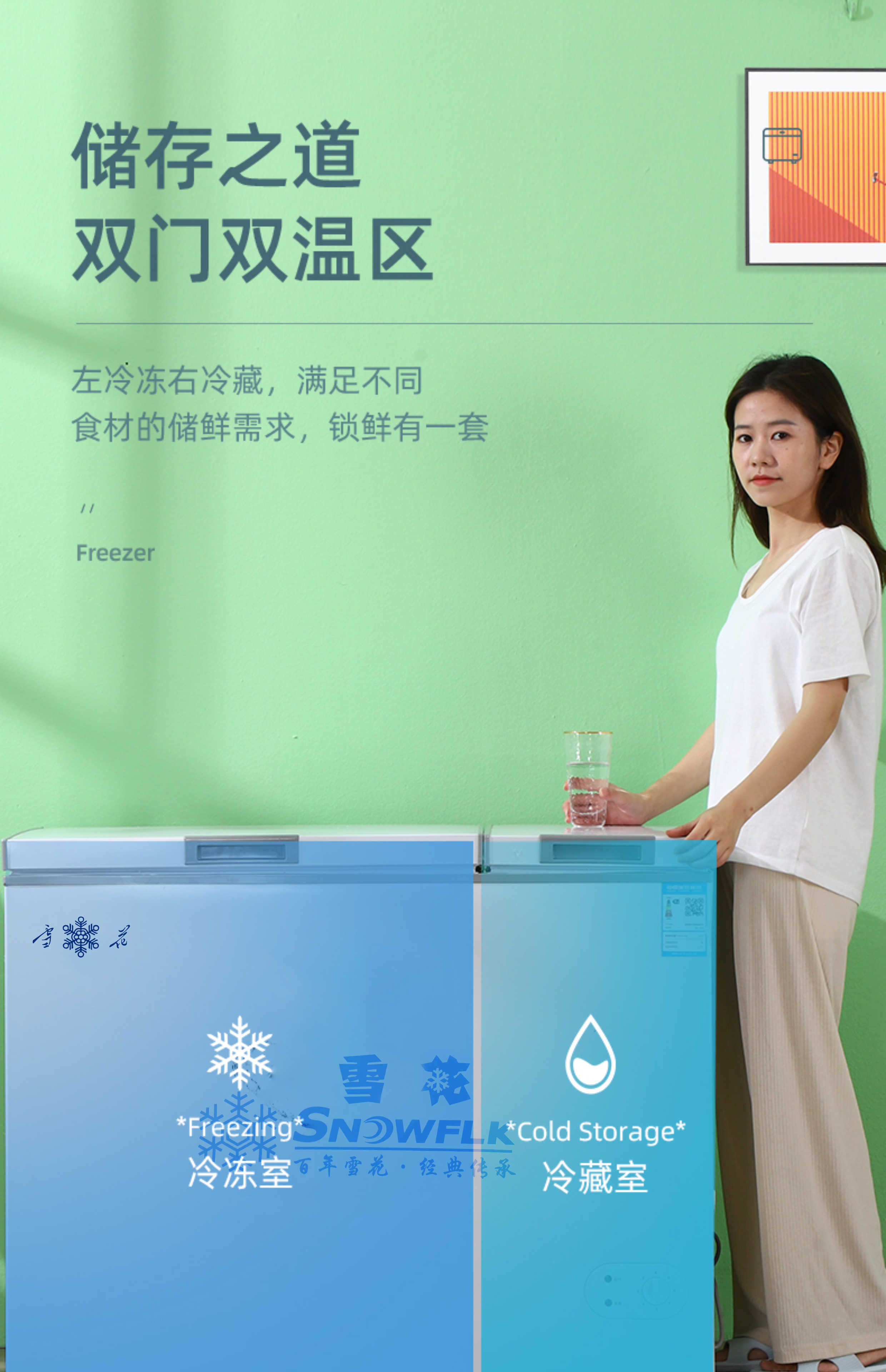 Snowflake dual-temperature freezer household dual-purpose freezing and fresh-keeping small power-saving double-door large-capacity commercial refrigeration small freezer copper tube refrigeration dual-temperature 112丨first-class energy efficiency/dual-temperature dual-chamber 112L