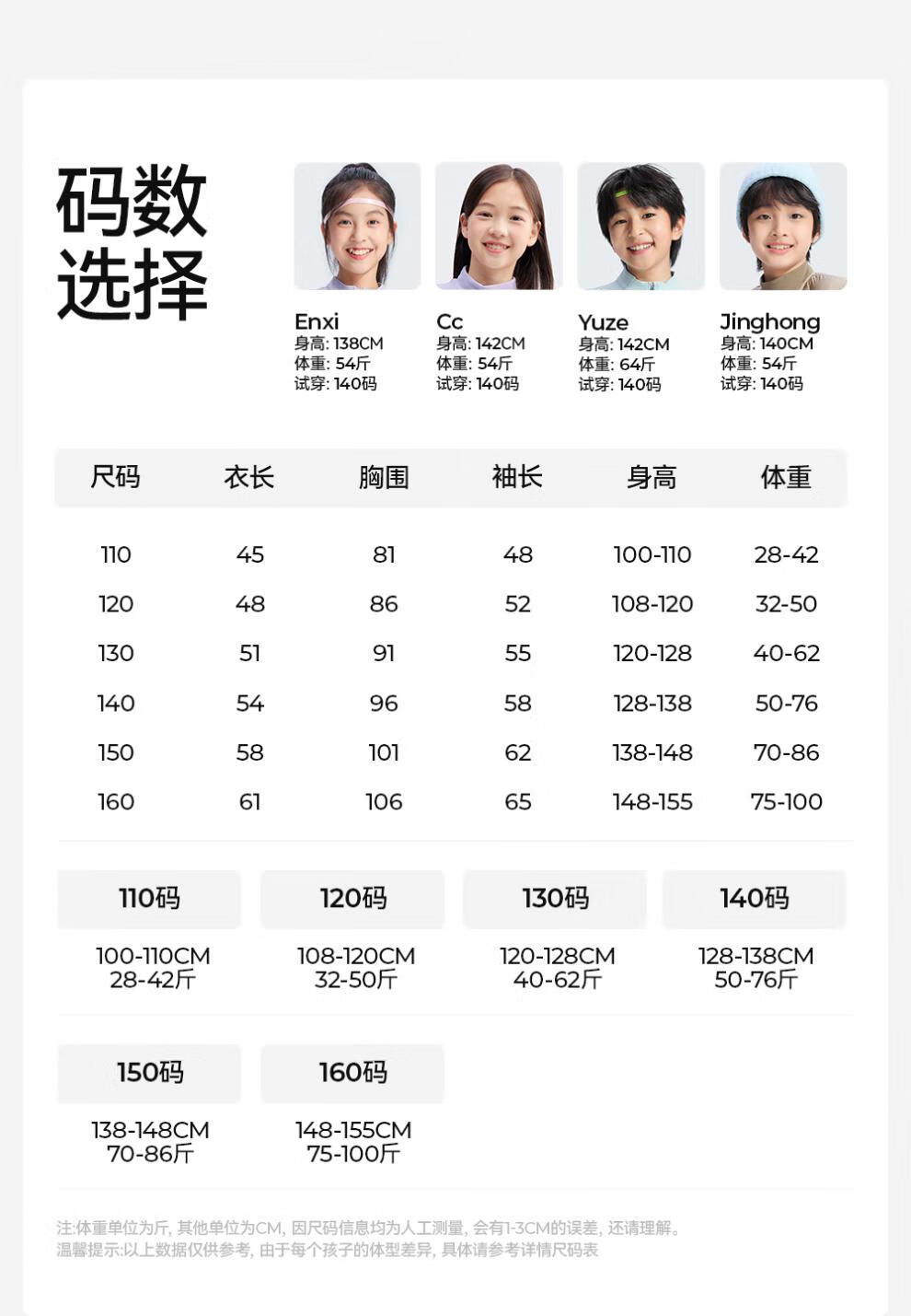 China (cm) 160-165/84-86 165-170 / 88-90 167-172 / 92-96 168-173 / 98-102 170-176 / 106-110