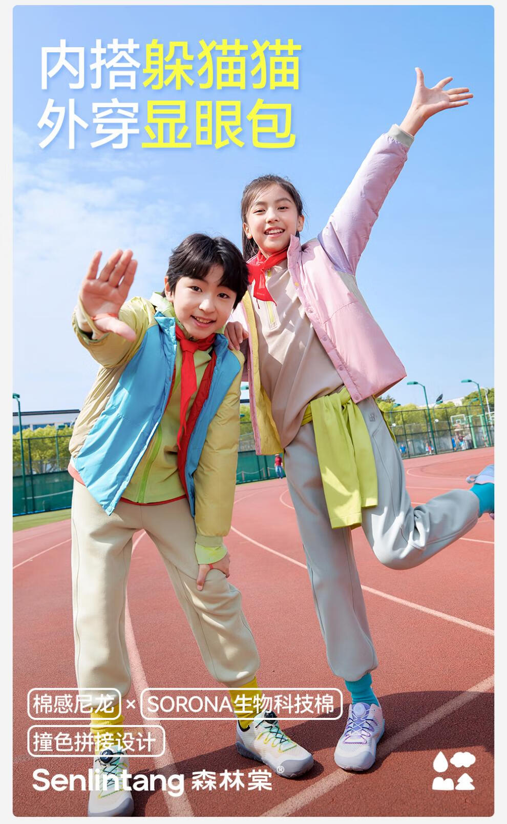 Lin Lin Tang 25 autumn and winter specializes in treating cold school uniforms, new boys and girls contrasting color baby-finding jackets, Clear Sky Kazuha 150 cm