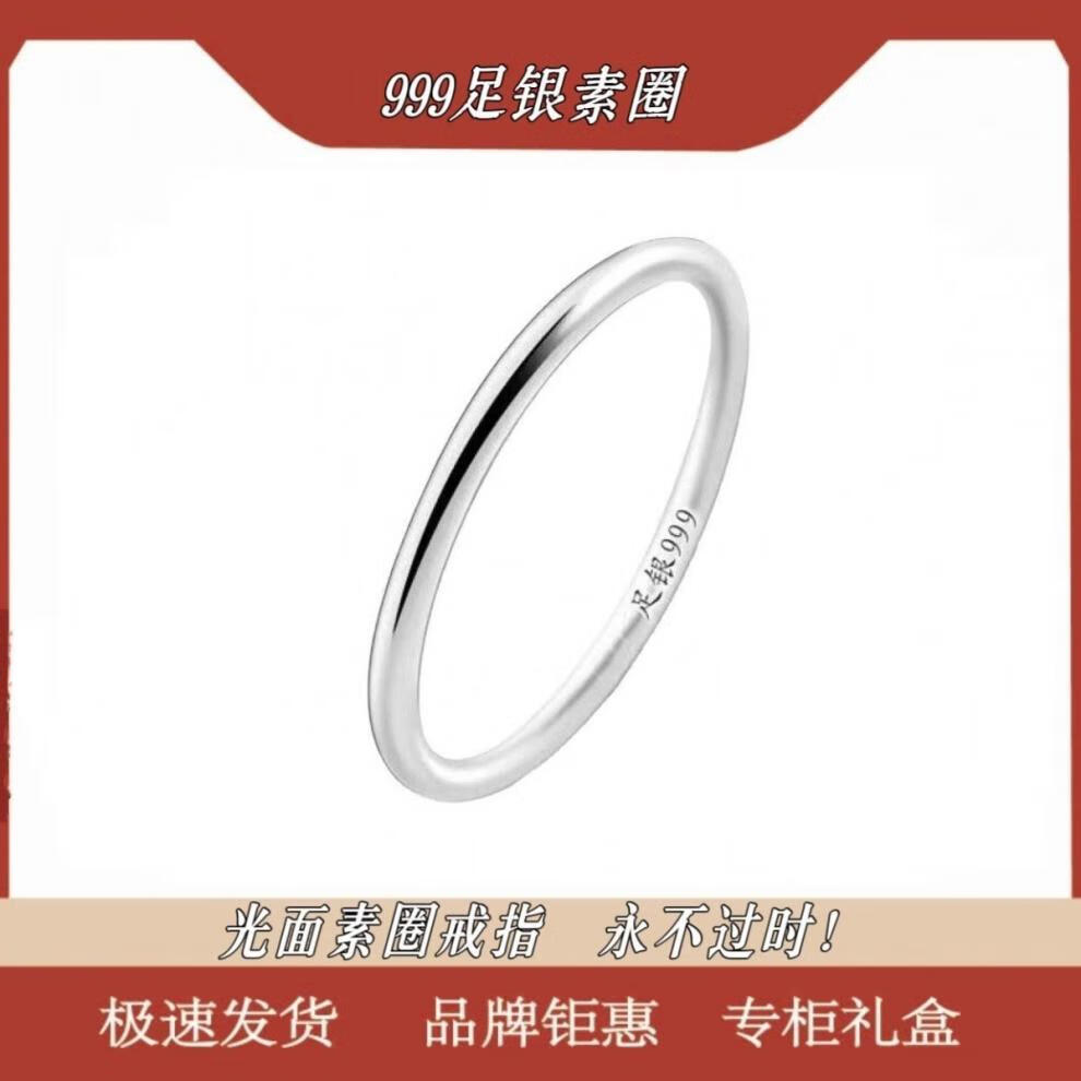 NSYCA Old Phoenix 999 sterling silver plain ring ring for men and women, small closed mouth 999 pure silver tail ring, simple couple ring 999 pure silver simple plain ring / fine style 1.5 size 6 reference weight 90-105 Jin Jin is equal to 0.5 kg Lao Fengxiang