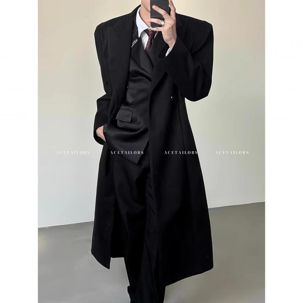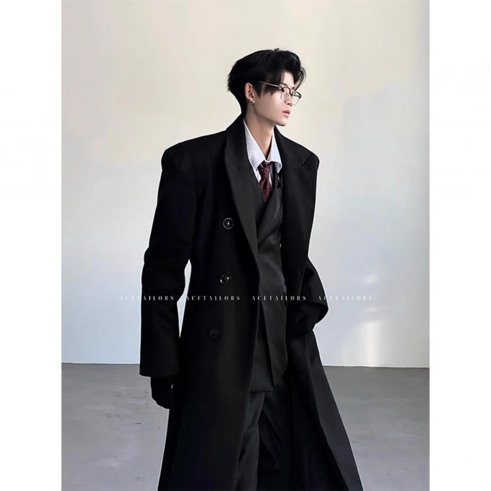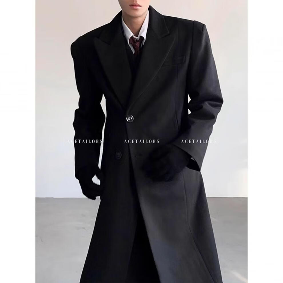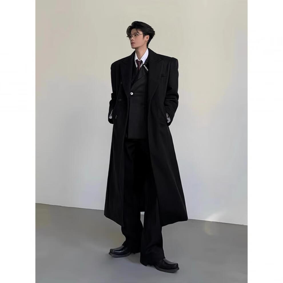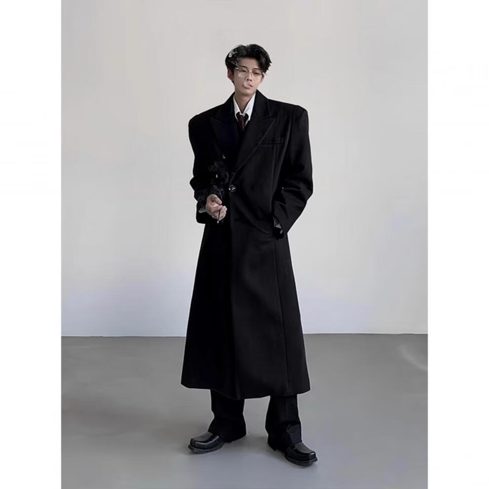 Du Xiaoxian British style black shoulder padded godfather coat men's autumn mid-length high-end cleanfit shoulder windbreaker jacket black regular XL recommended 120-140Jin Jin equals 0.5 kg