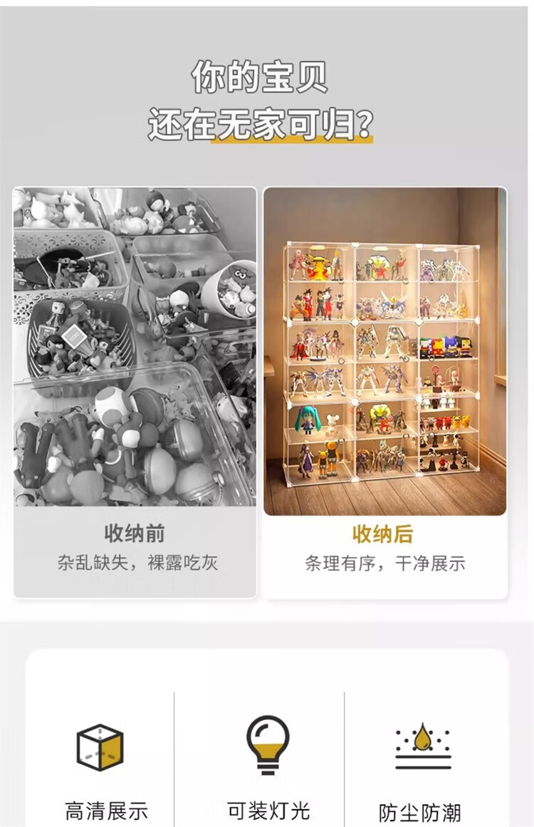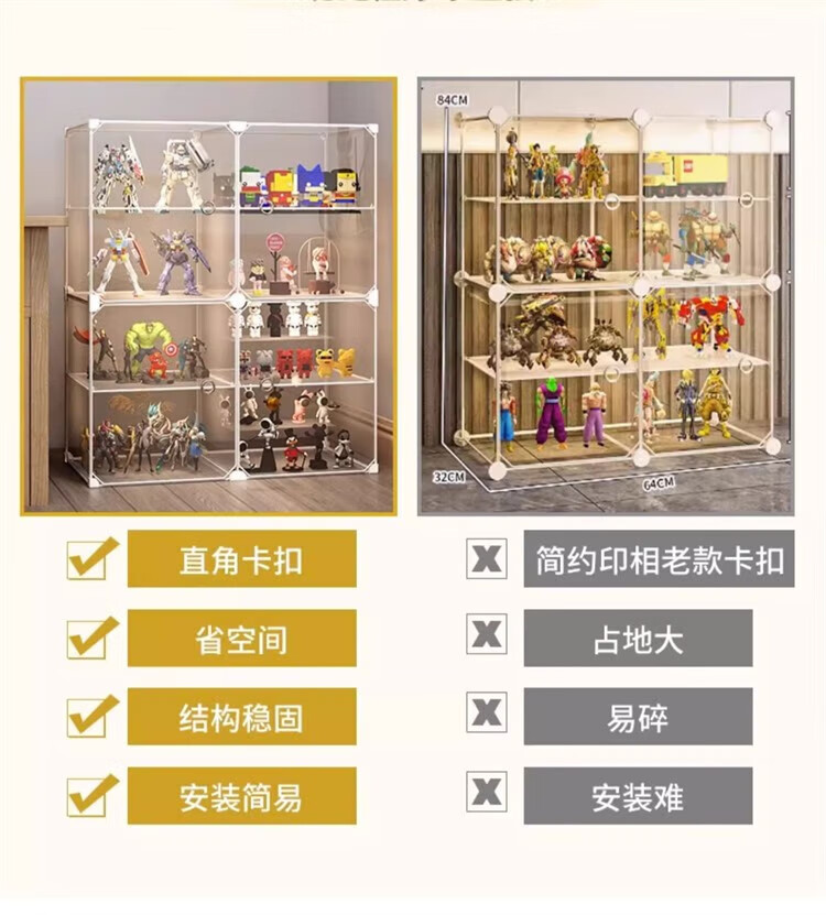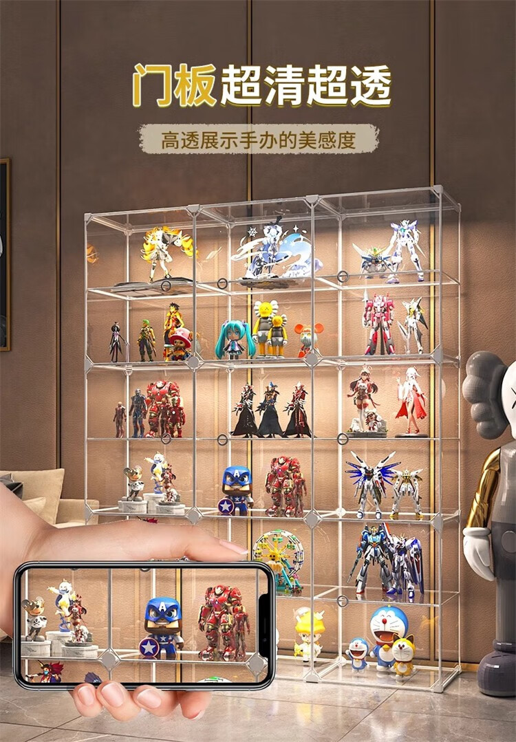He Jiagong figure display cabinet Lego building blocks transparent storage box household imitation acrylic toy dust-proof model display rack A 1 column 4 layers