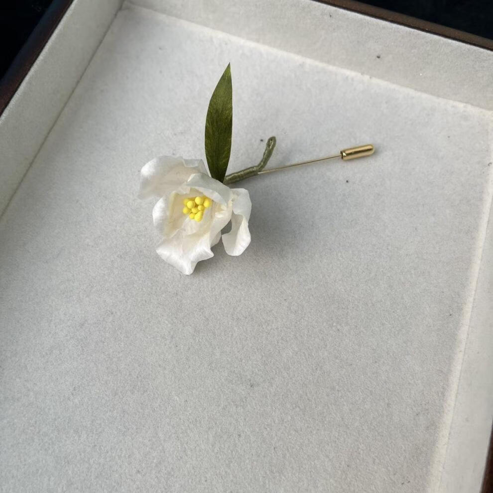 Shantou Lincun丨Handmade white rose丨Original design national style intangible cultural heritage velvet flower brooch for women high-end white rose brooch