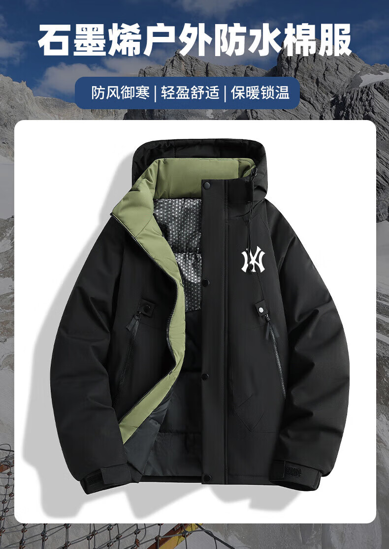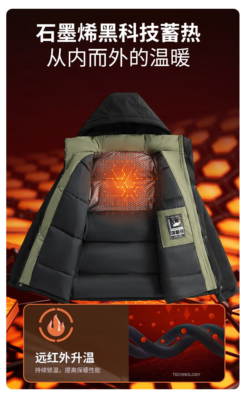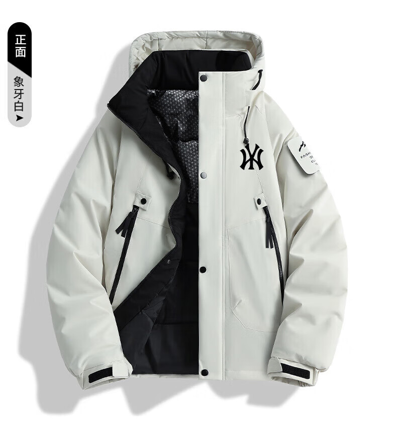 INTO TOP Outdoor Down Cotton Jacket Men's Winter New Graphene Warm Bread Jacket Windproof Thickened Cotton Jacket Men's Ivory White-H XL