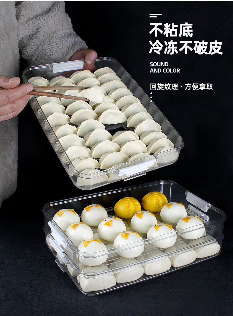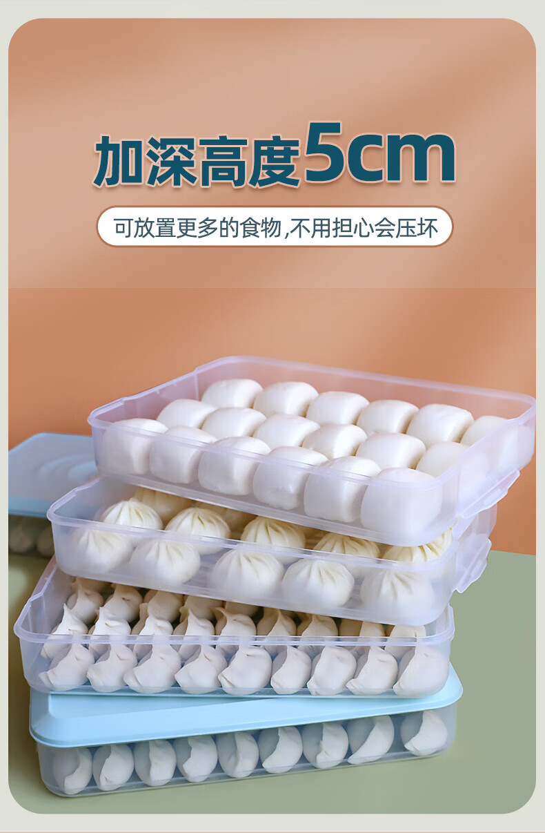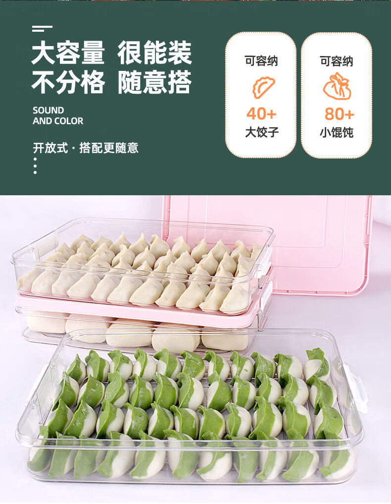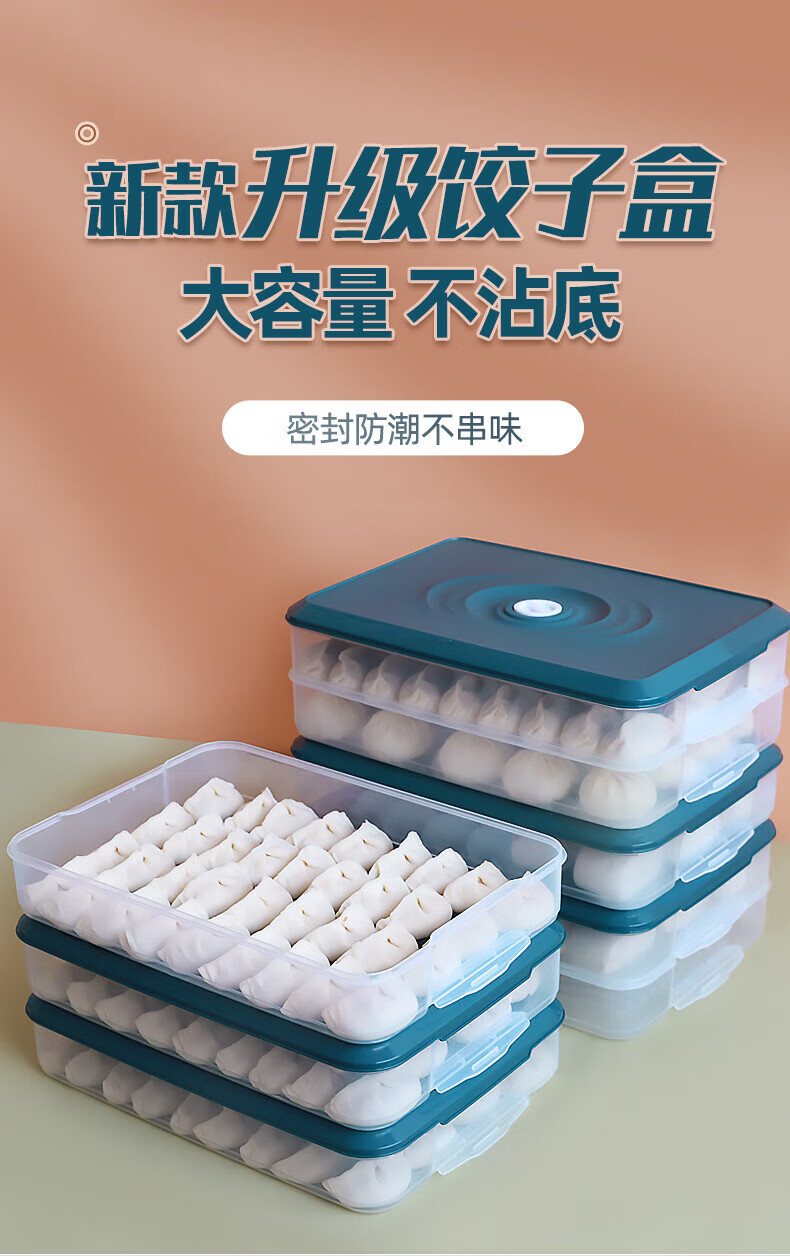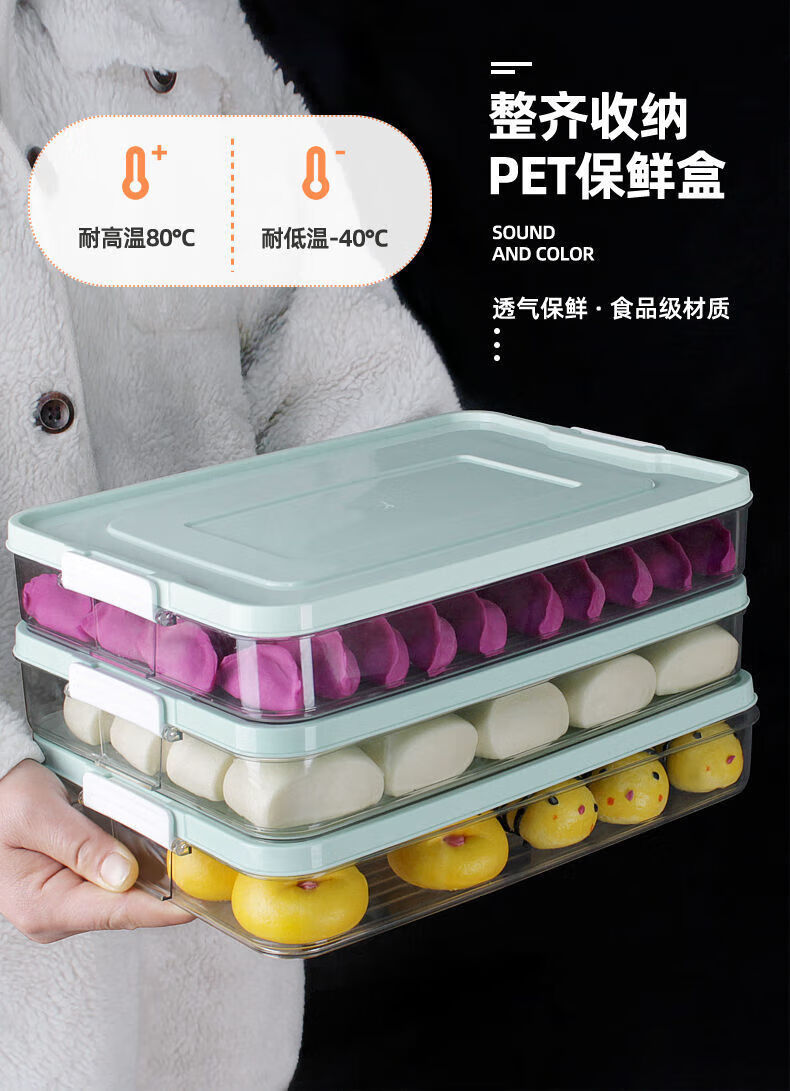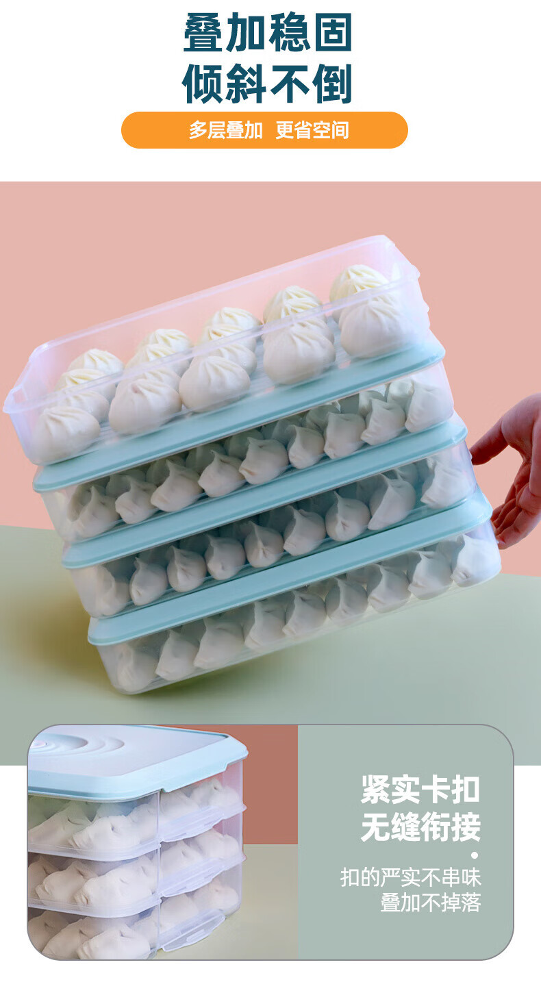 Chaosihui PP heightened and thickened dumpling box kitchen home refrigerator quick-frozen wonton dumplings multi-layer fresh-keeping storage box light green time-keeping non-stick bottom + PP5 material B extra large and heightened version two layers 1 cover holds 130 dumplings