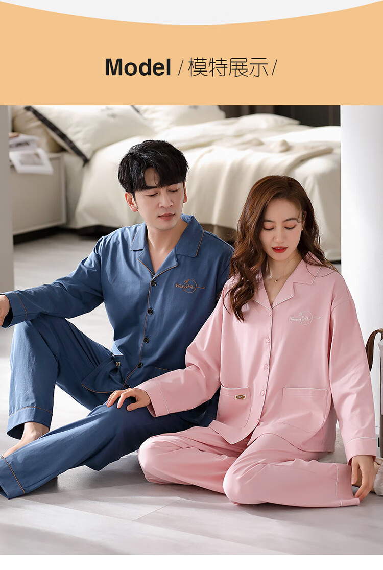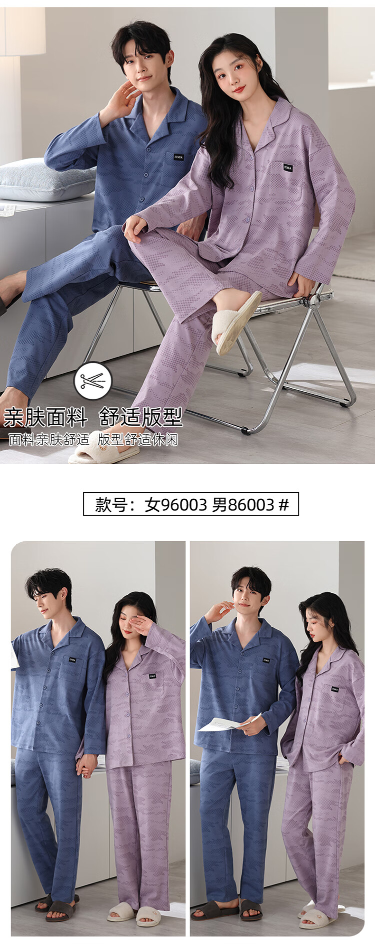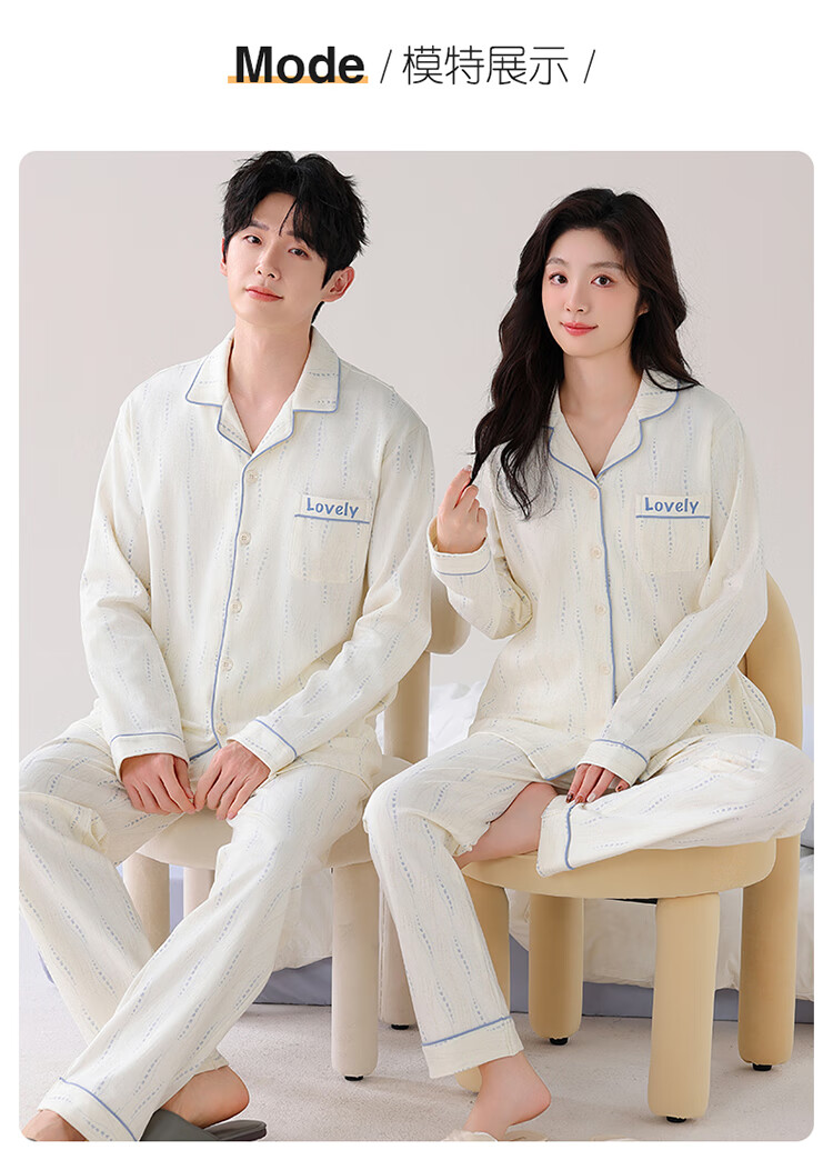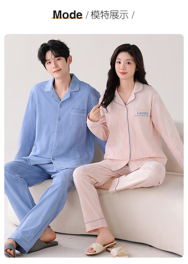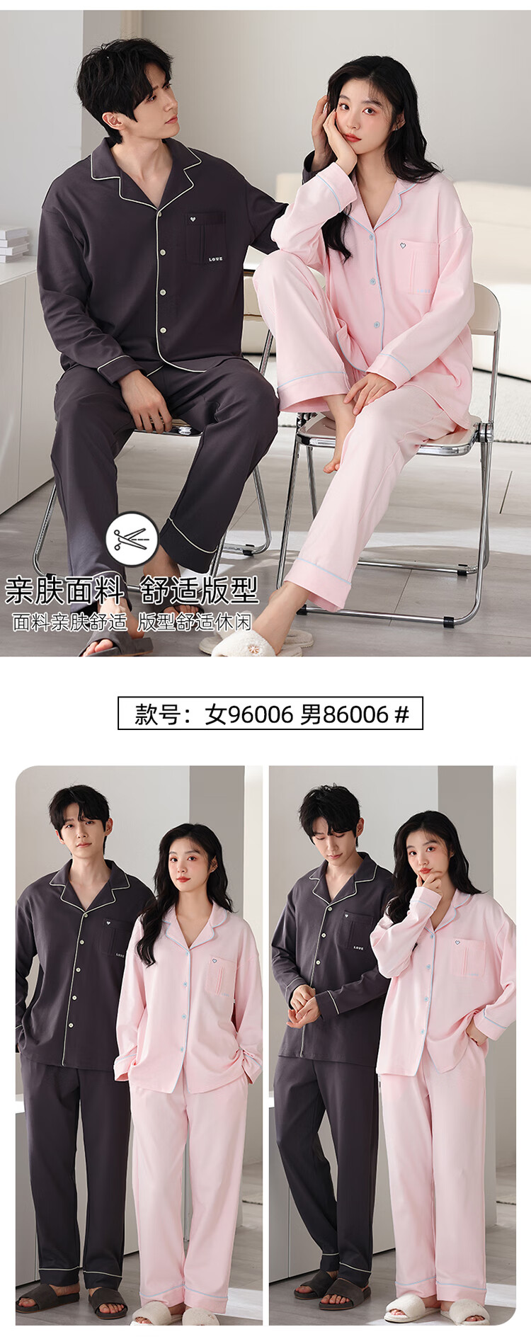 MiiOW large size couples pajamas spring and autumn 2025 new pure cotton long-sleeved men's and women's loose cardigans can be worn outside home clothes set male 29001 female 28001 M female + male 2XL (two sets of prices)
