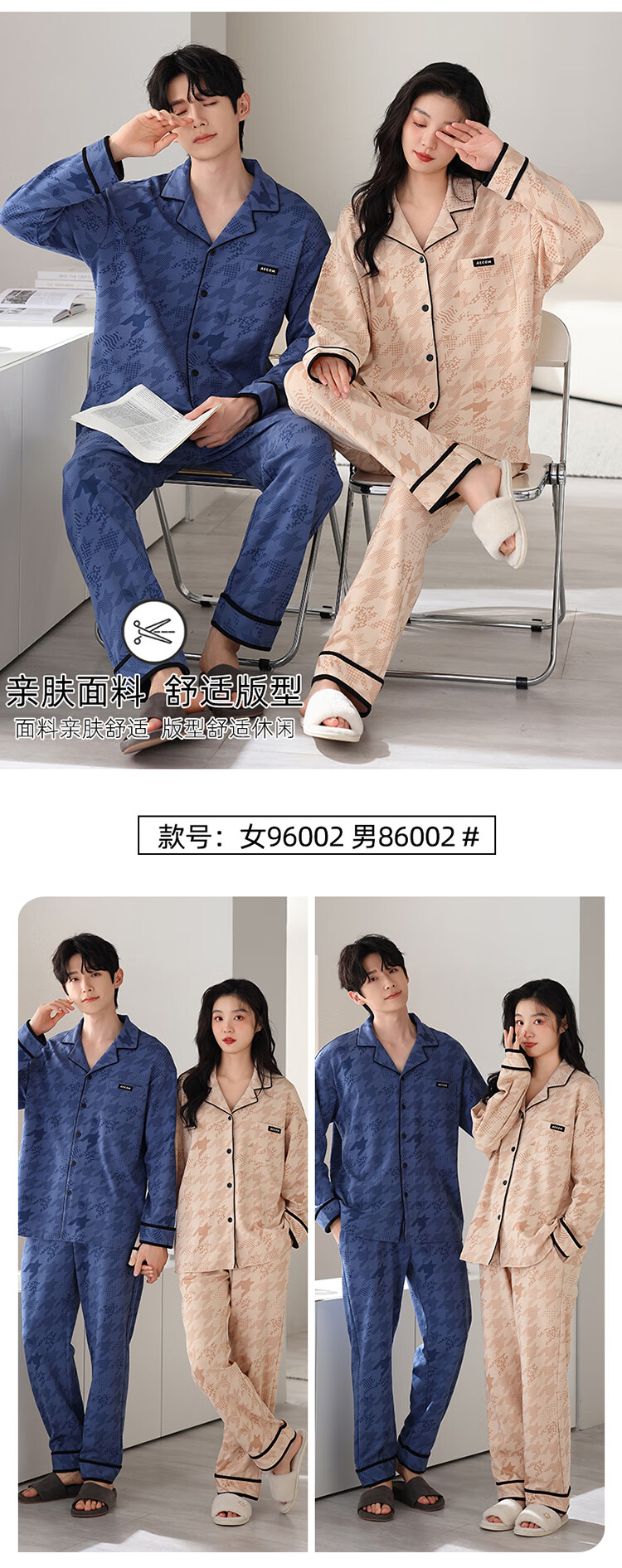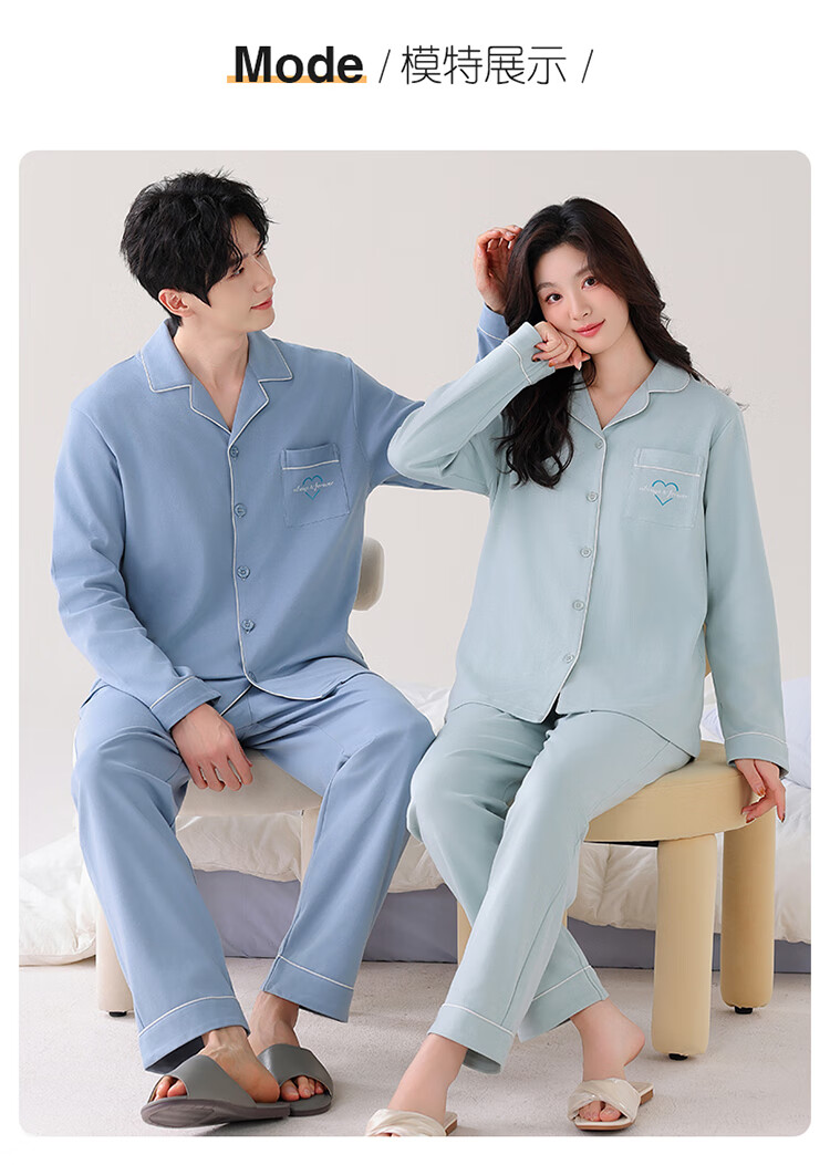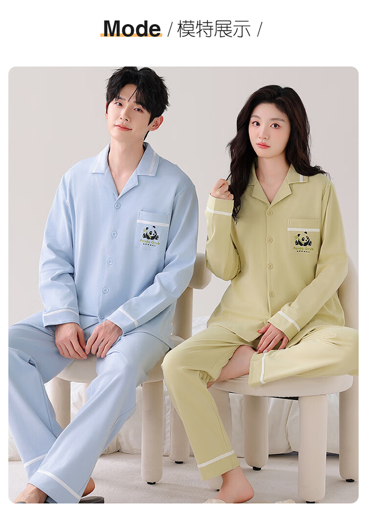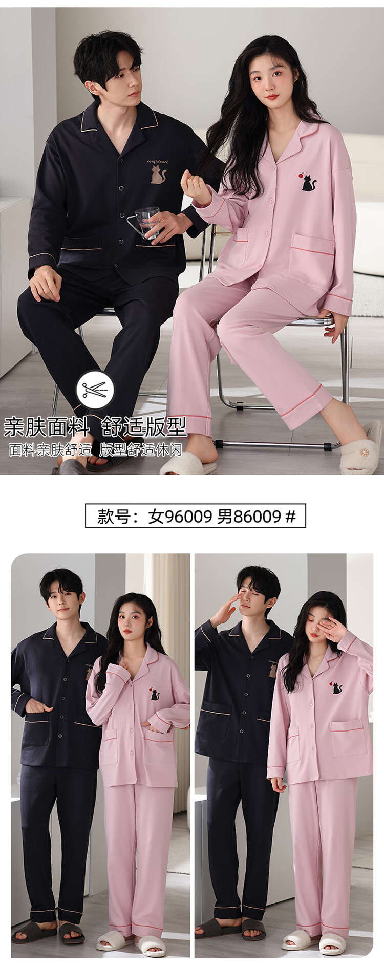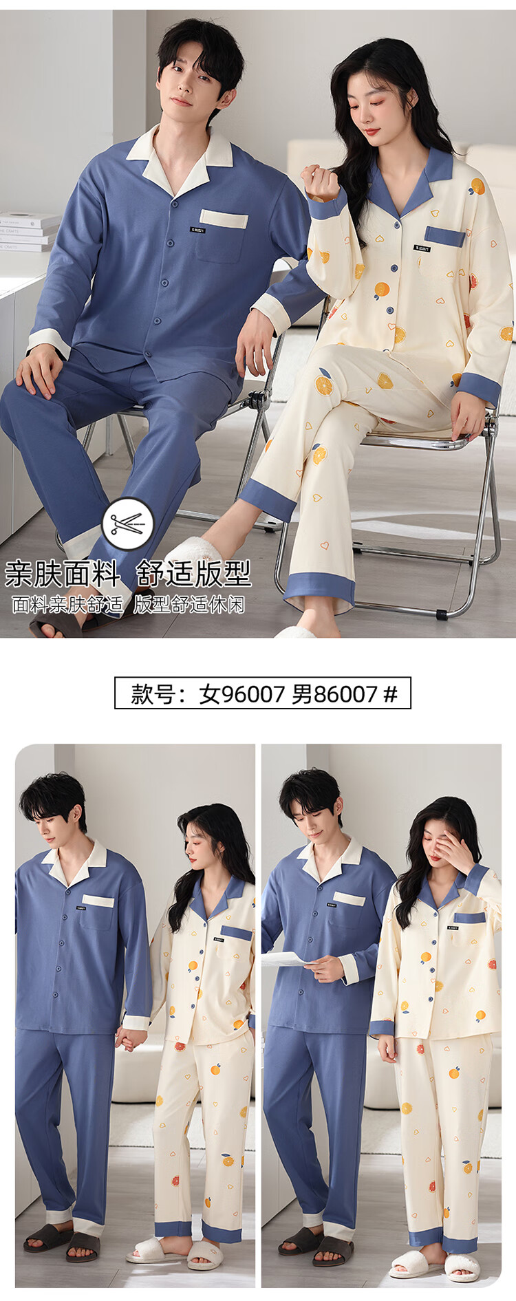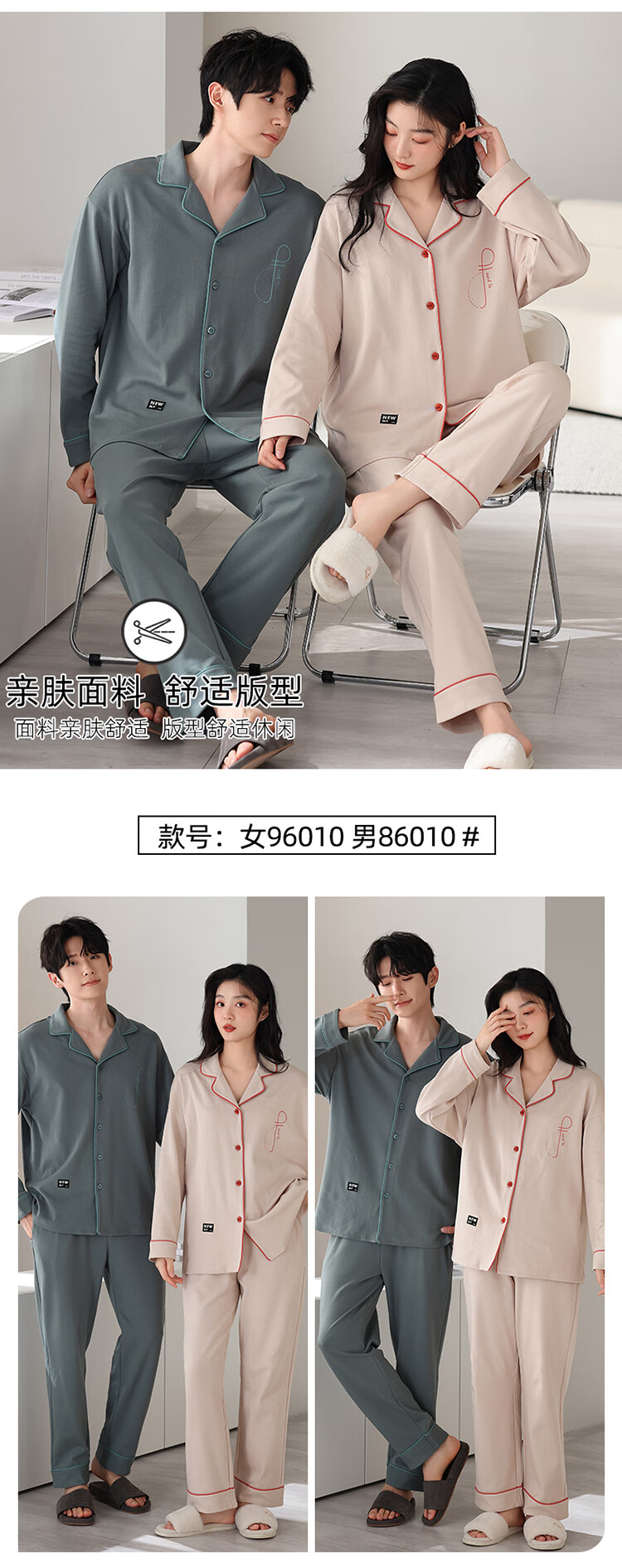 MiiOW large size couples pajamas spring and autumn 2025 new pure cotton long-sleeved men's and women's loose cardigans can be worn outside home clothes set male 29001 female 28001 M female + male 2XL (two sets of prices)