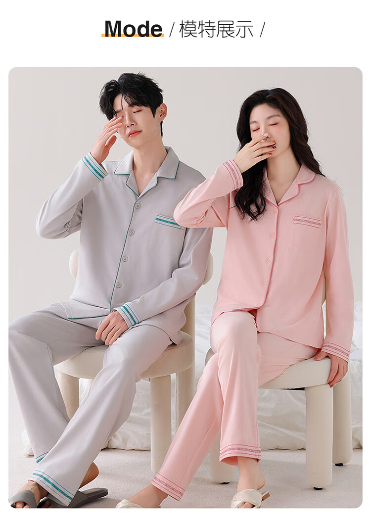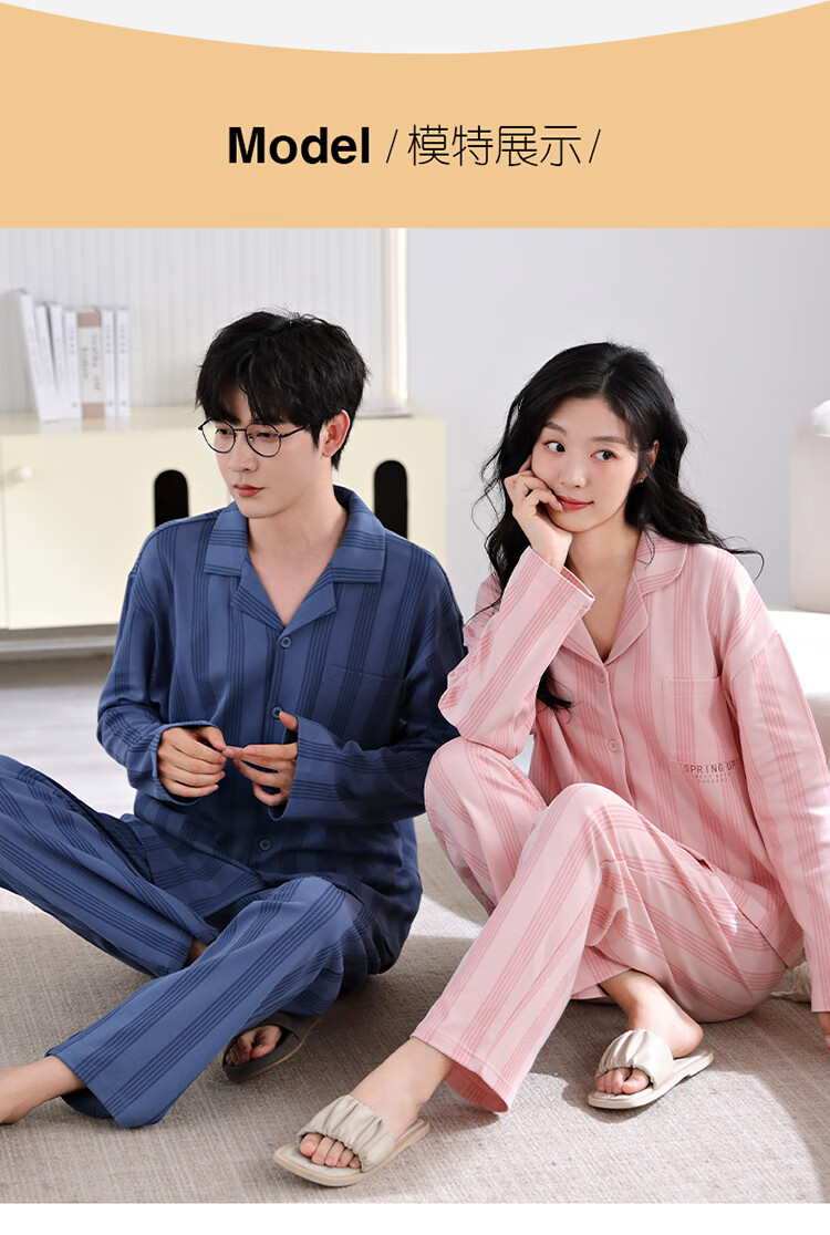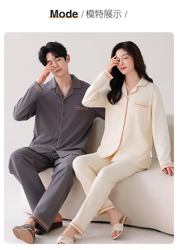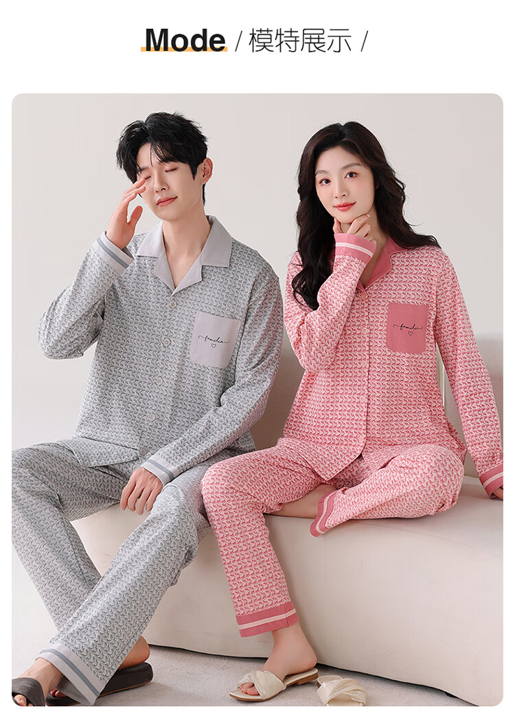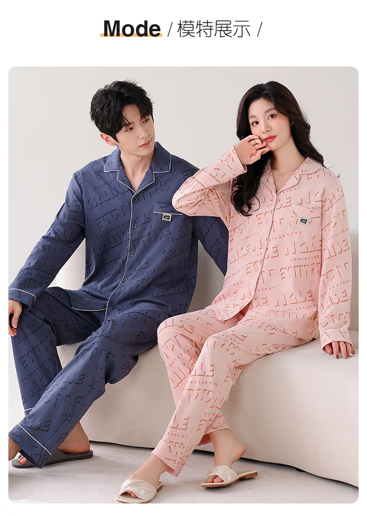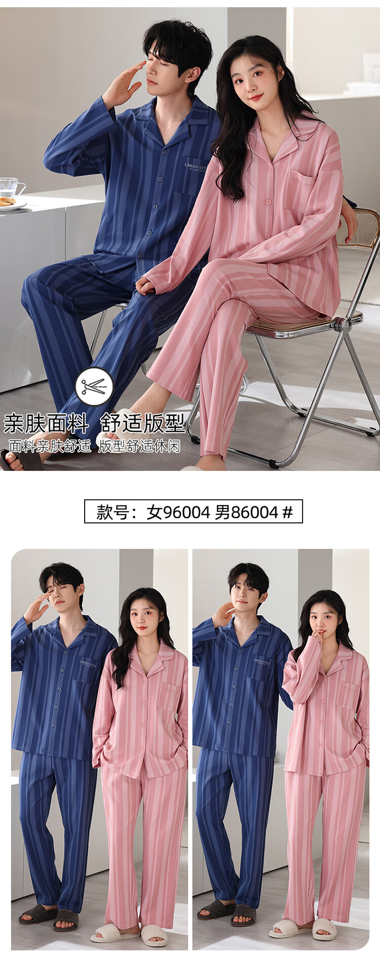MiiOW large size couples pajamas spring and autumn 2025 new pure cotton long-sleeved men's and women's loose cardigans can be worn outside home clothes set male 29001 female 28001 M female + male 2XL (two sets of prices)
