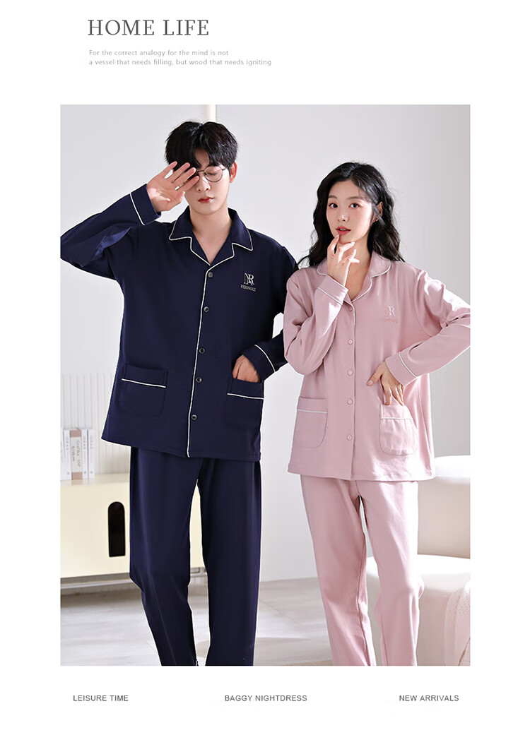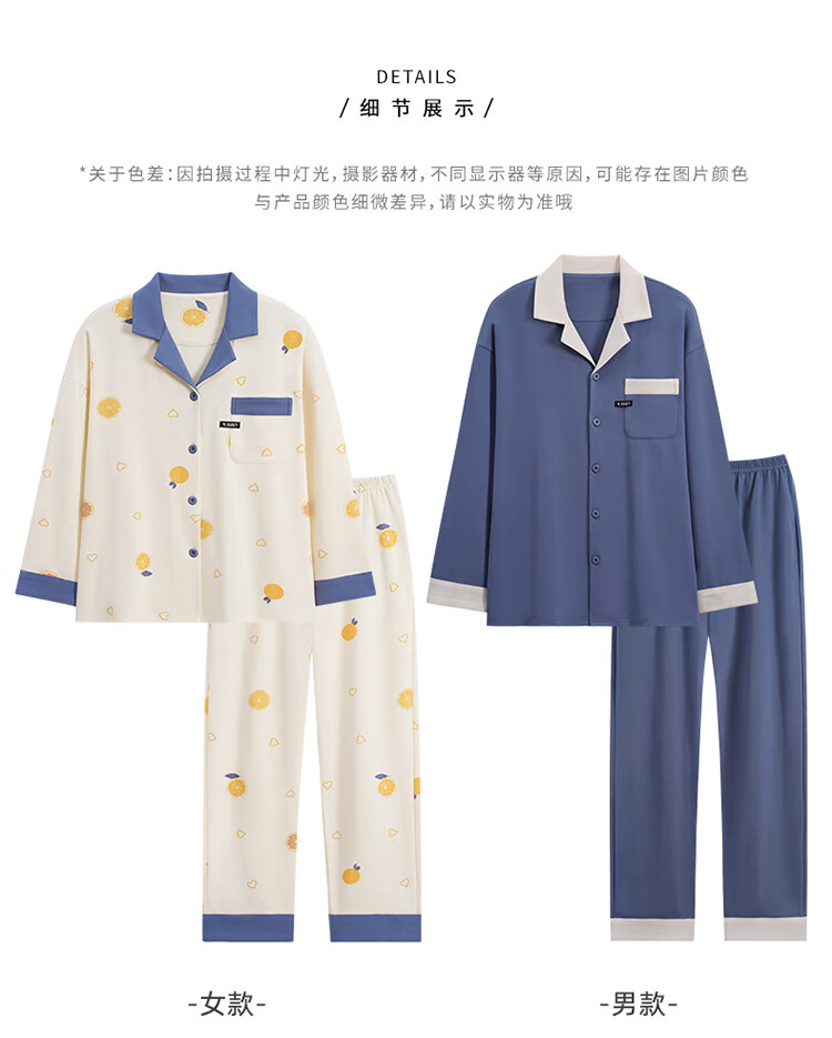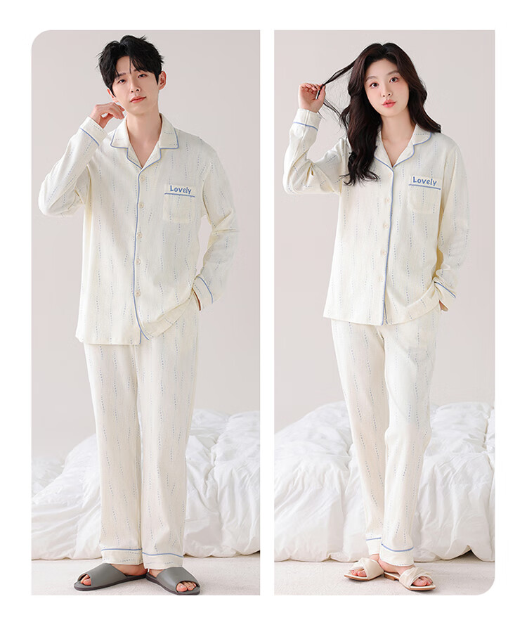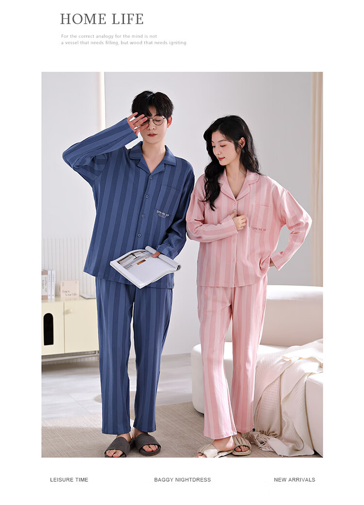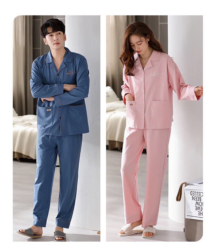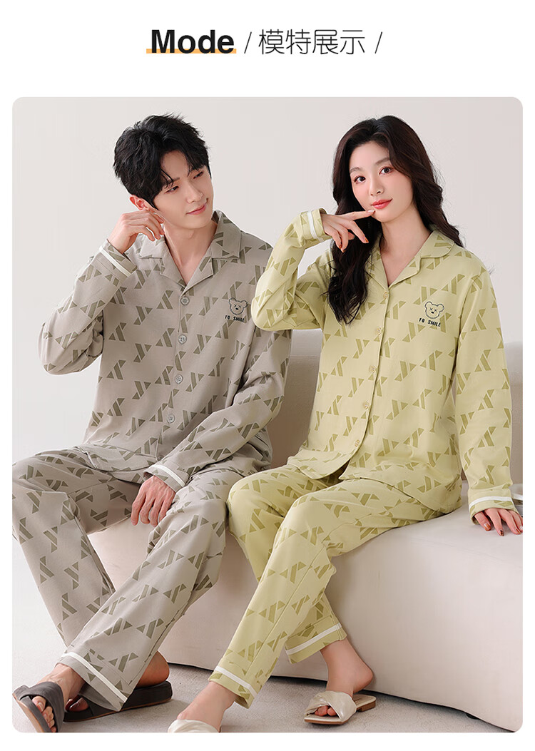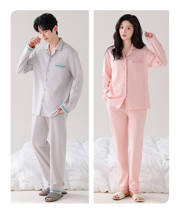 MiiOW large size couples pajamas spring and autumn 2025 new pure cotton long-sleeved men's and women's loose cardigans can be worn outside home clothes set male 29001 female 28001 M female + male 2XL (two sets of prices)