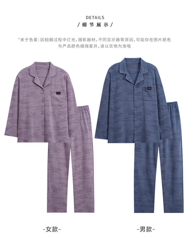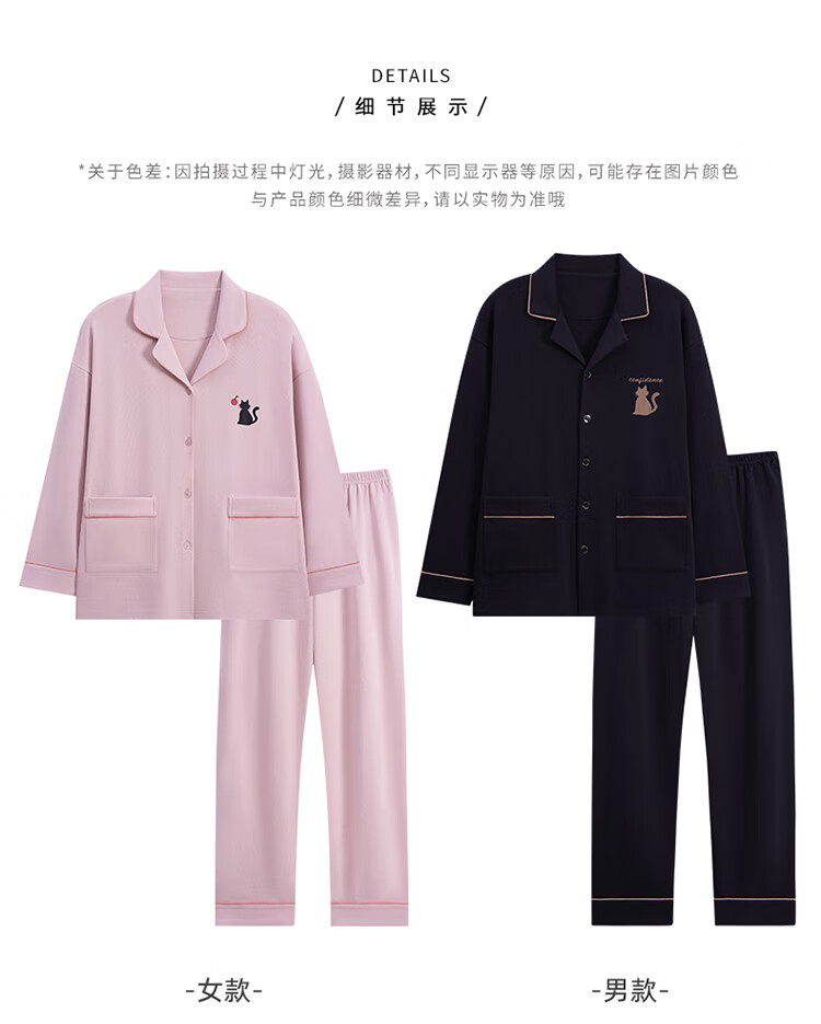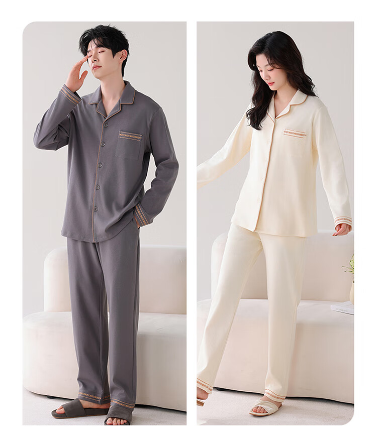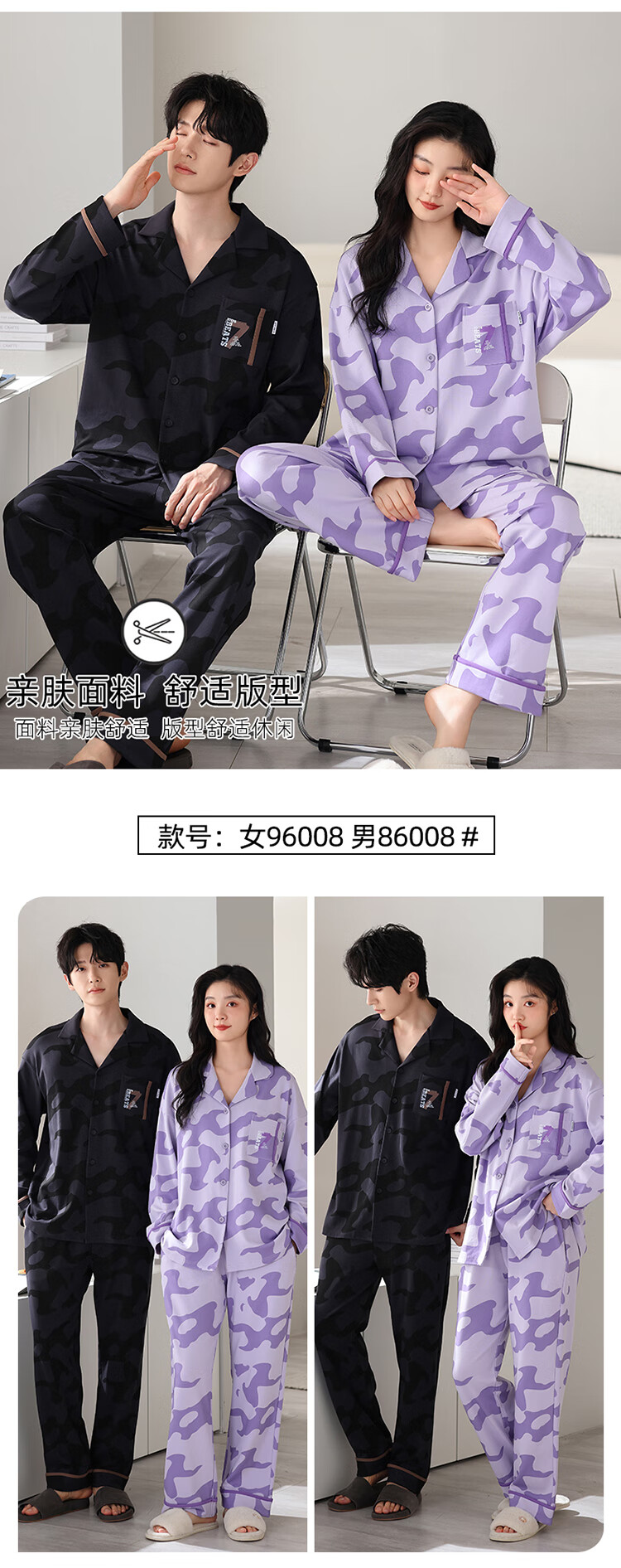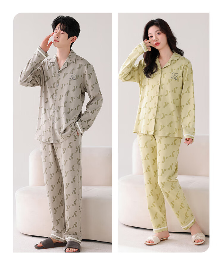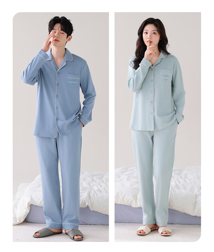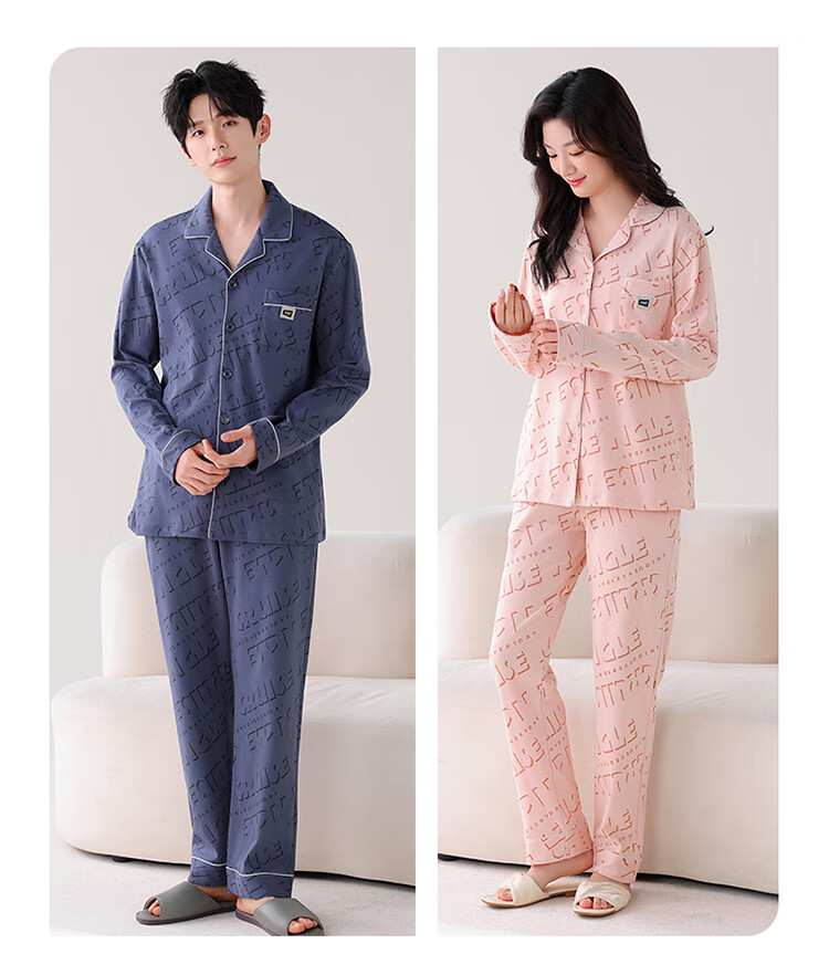 MiiOW large size couples pajamas spring and autumn 2025 new pure cotton long-sleeved men's and women's loose cardigans can be worn outside home clothes set male 29001 female 28001 M female + male 2XL (two sets of prices)