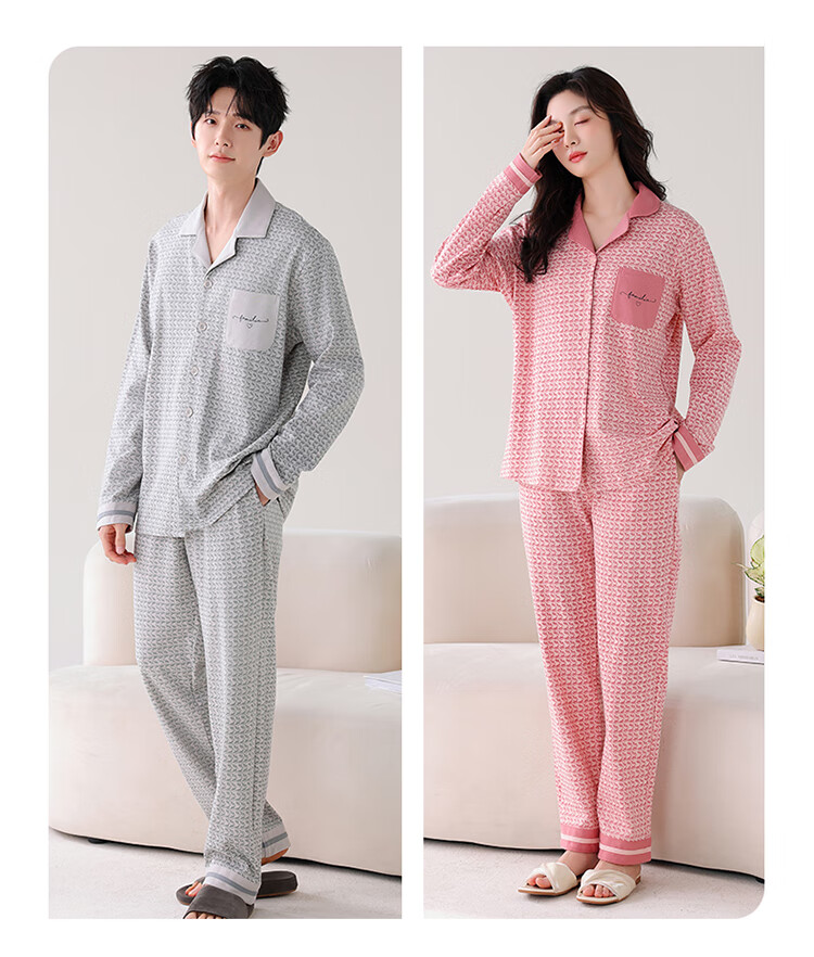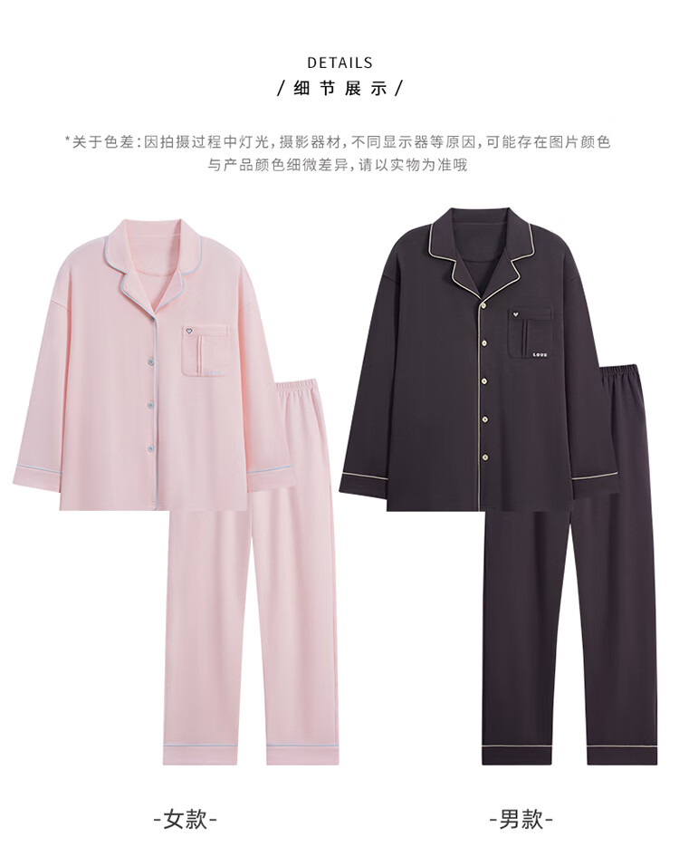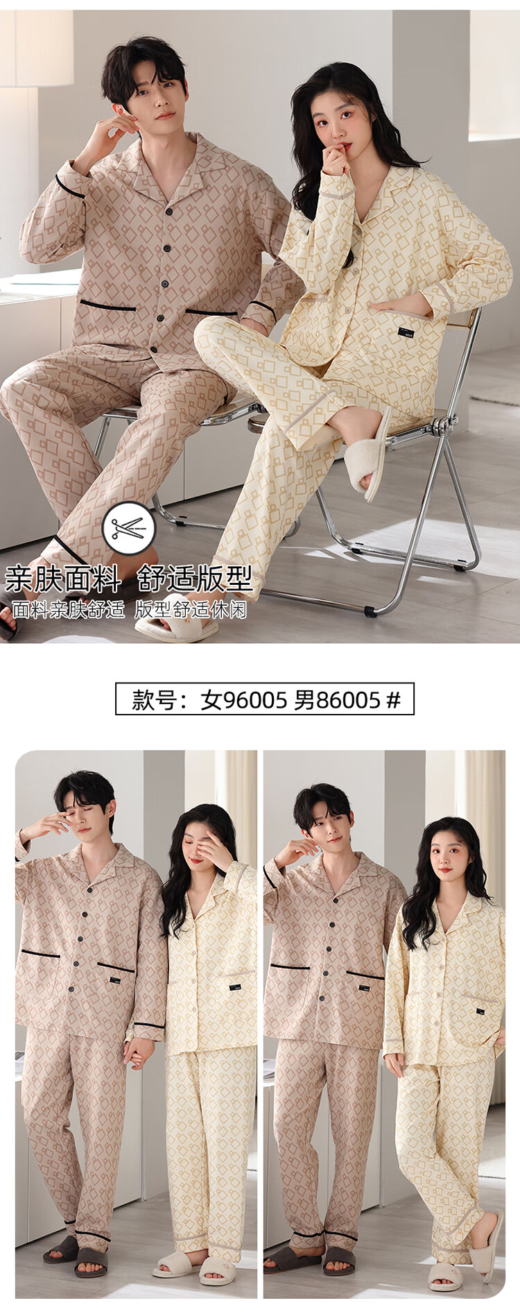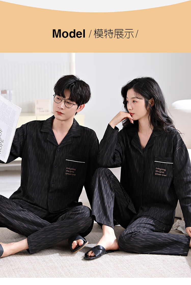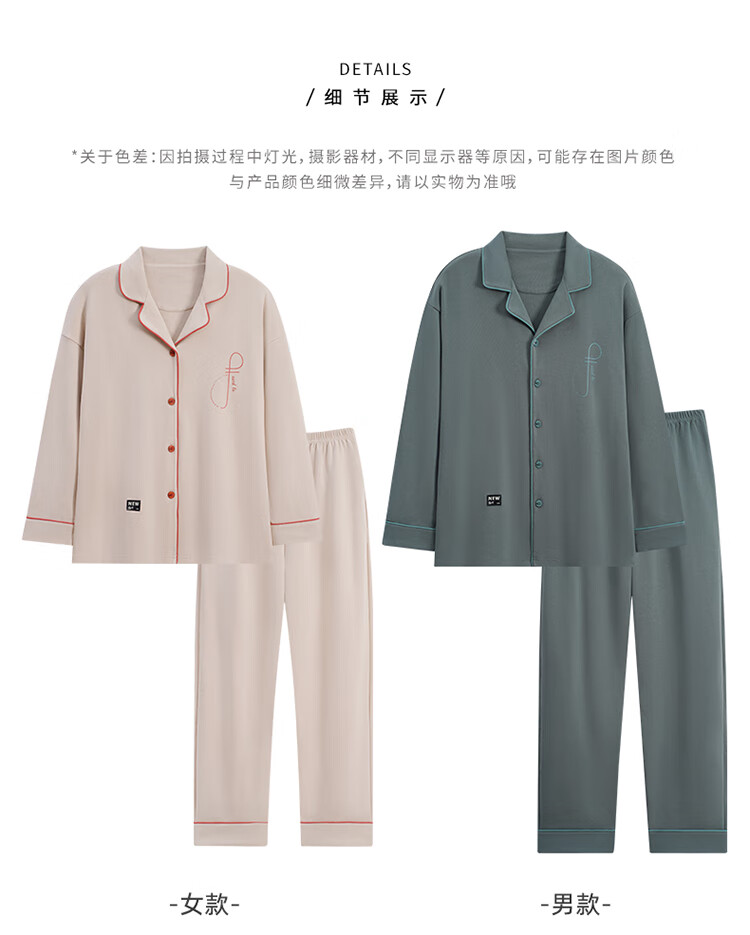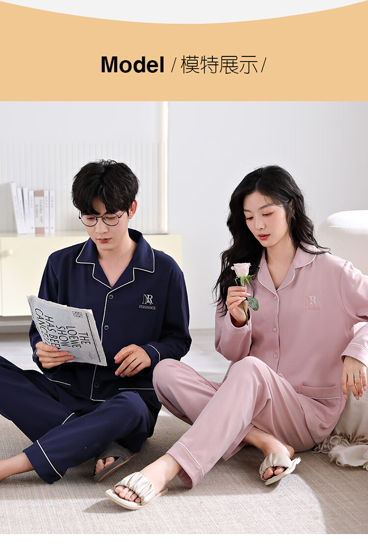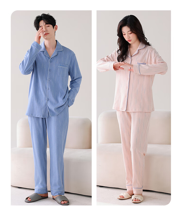 MiiOW large size couples pajamas spring and autumn 2025 new pure cotton long-sleeved men's and women's loose cardigans can be worn outside home clothes set male 29001 female 28001 M female + male 2XL (two sets of prices)