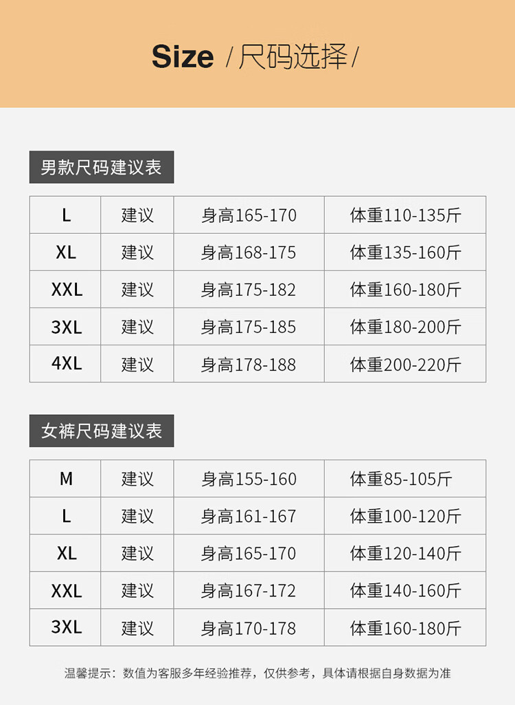 China (cm) 160-165/84-86 165-170 / 88-90 167-172 / 92-96 168-173 / 98-102 170-176 / 106-110