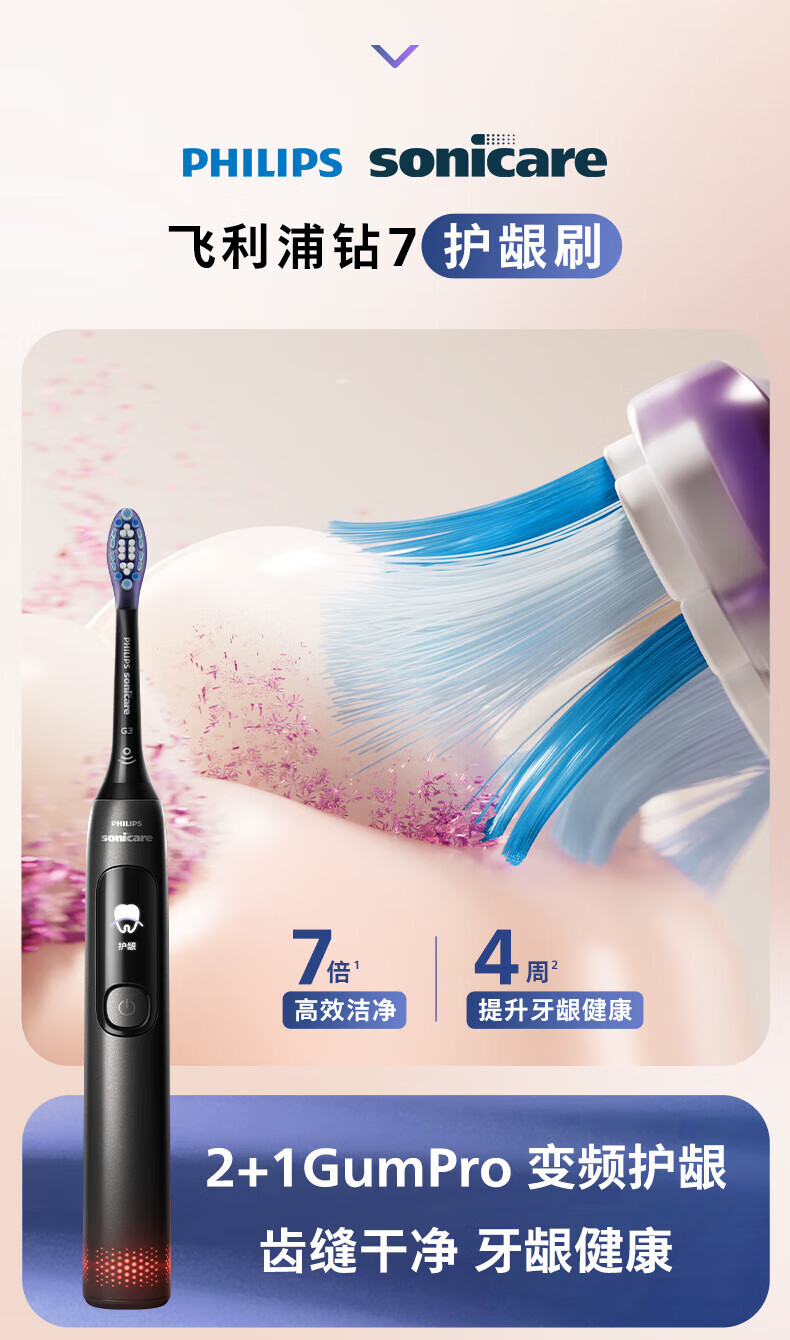 Philips (PHILIPS) Xiao Zhan's same style electric toothbrush Diamond 7 series gum protection brush Couple toothbrush Couple gift for boyfriend and girlfriend birthday gift Annual party New Year's Valentine's Day gift High-end Diamond 7 series Polishing powder HX3792/02