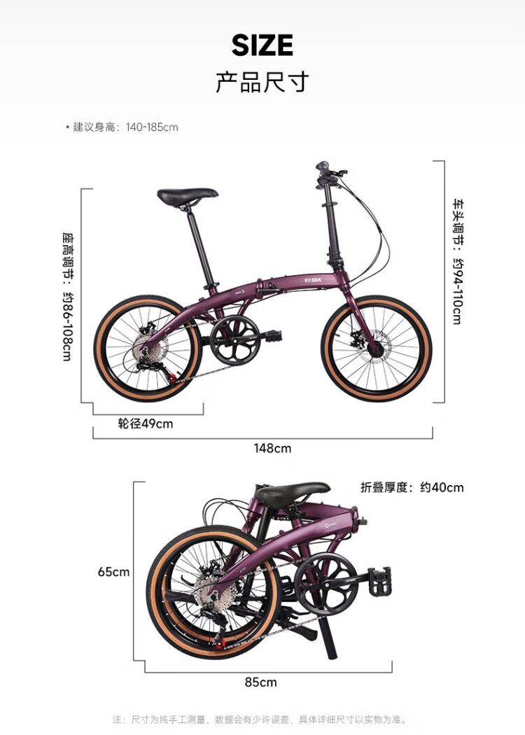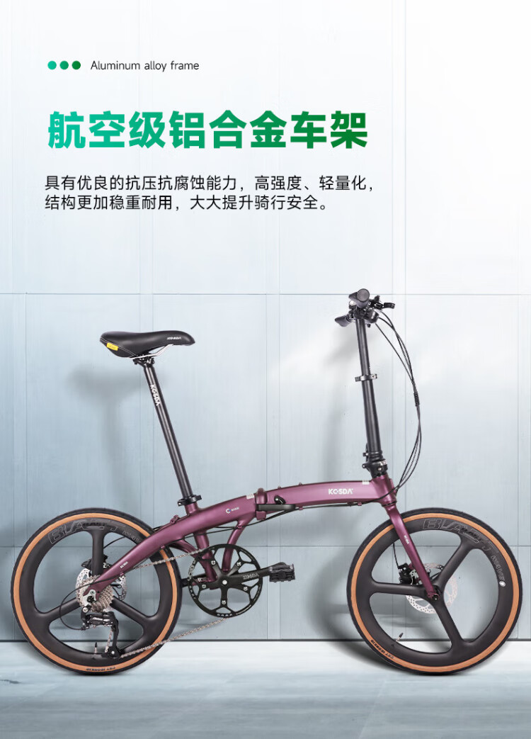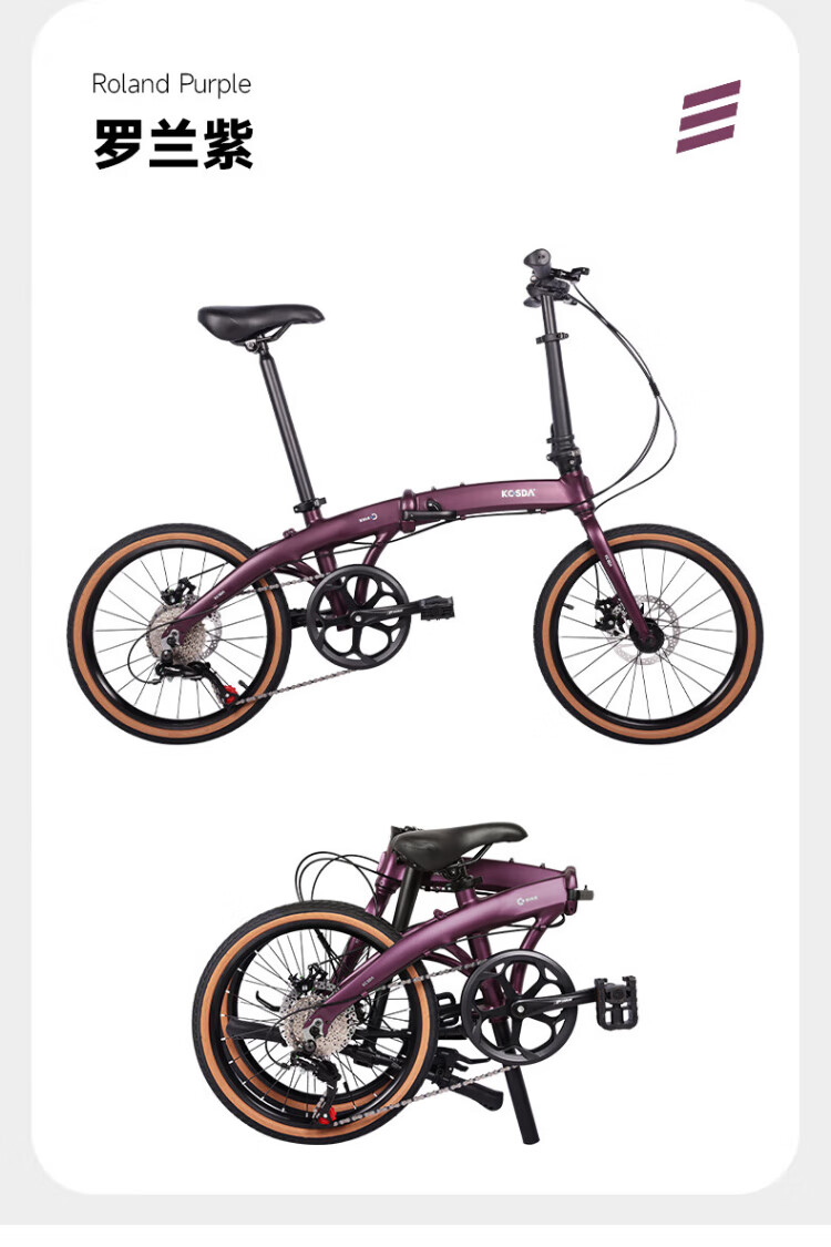 KOSDA 20-inch folding bicycle Keshengda KP10 British version ultra-light men's and women's adult commuter parent-child folding bicycle KP10 British version | Roland Purple - 8 speed new product 20 inches | suitable for height 140-185cm