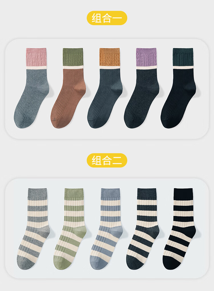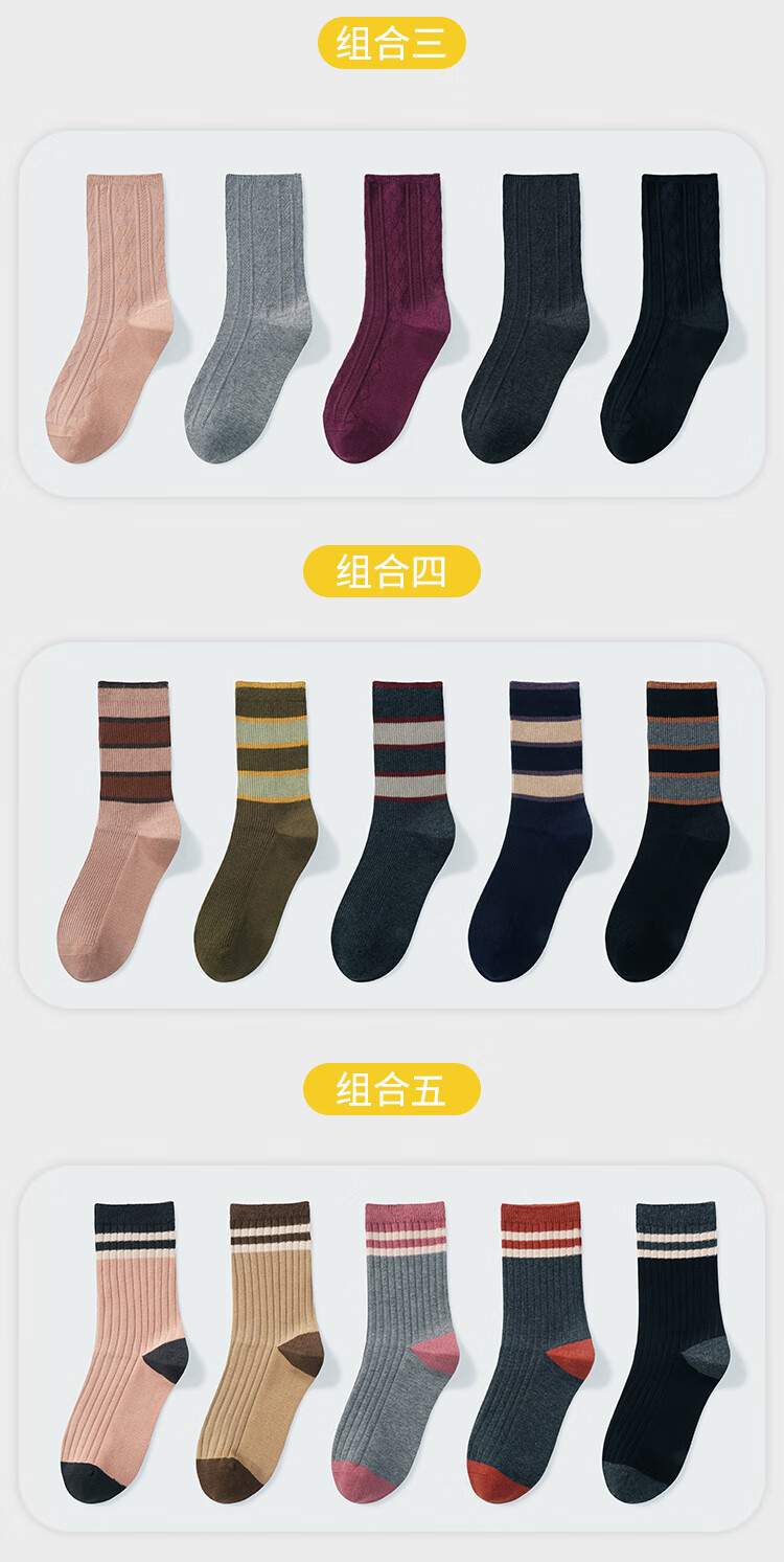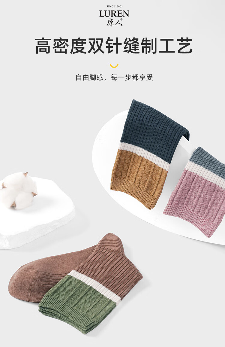 LU REN women's socks autumn and winter high-top double-needle wear-resistant splicing Xinjiang cotton long socks for women 6155-combination 1-pack 5 pairs one size