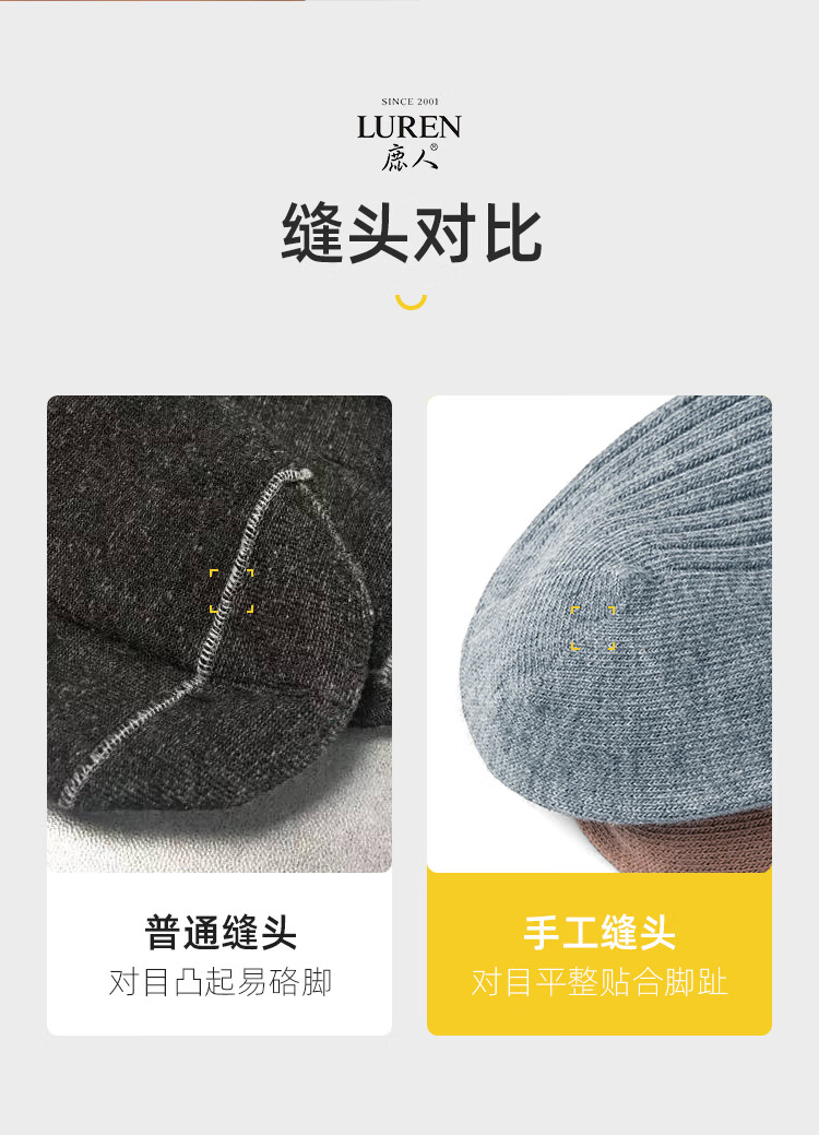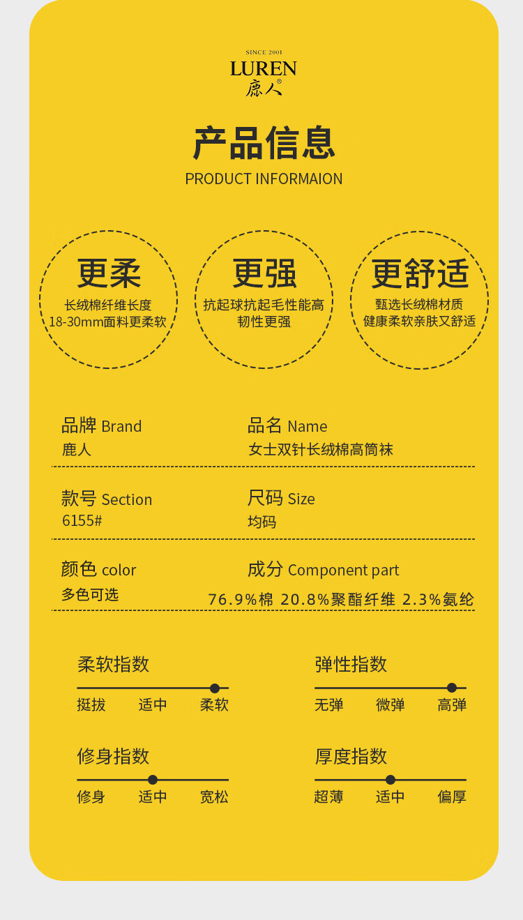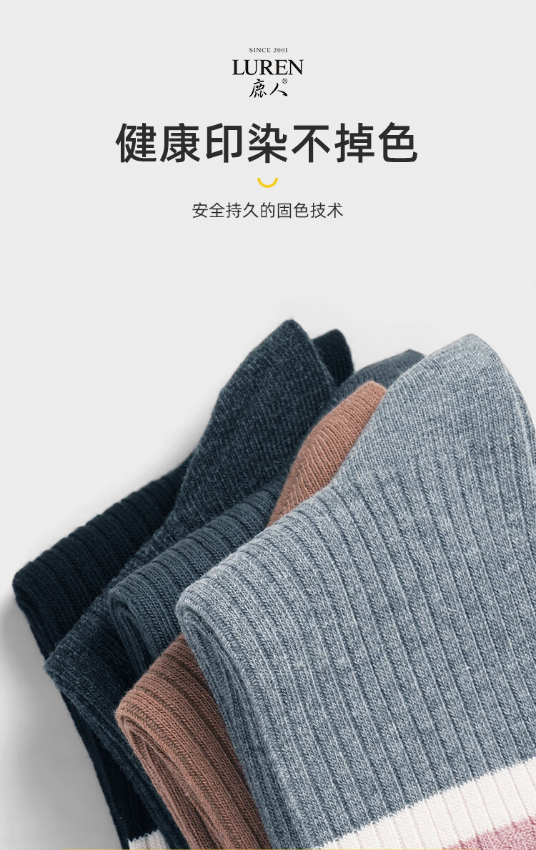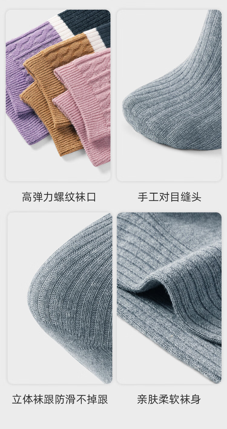 LU REN women's socks autumn and winter high-top double-needle wear-resistant splicing Xinjiang cotton long socks for women 6155-combination 1-pack 5 pairs one size