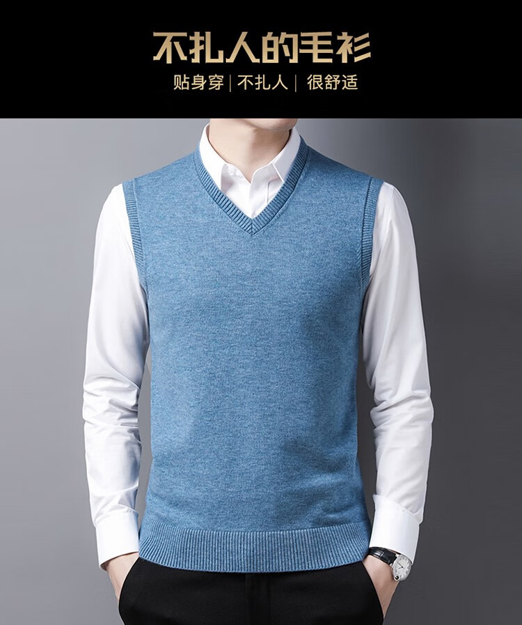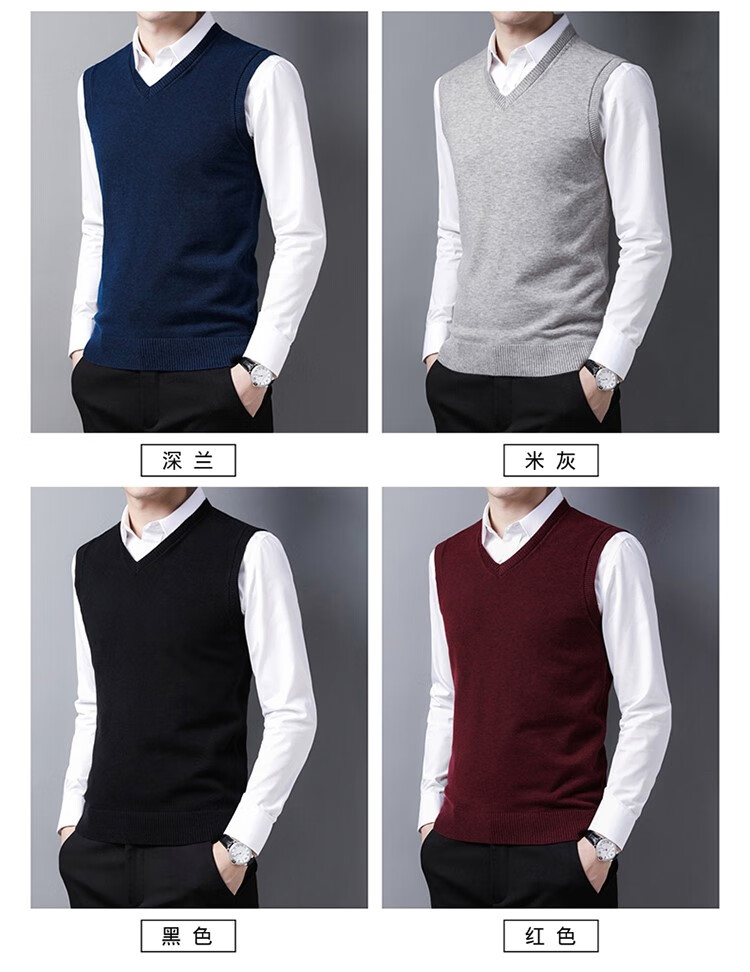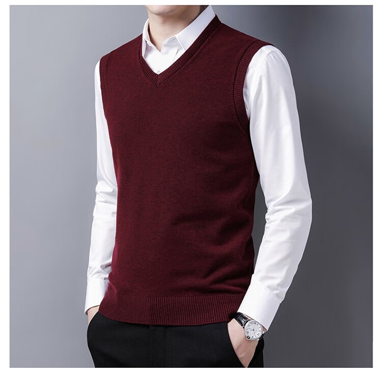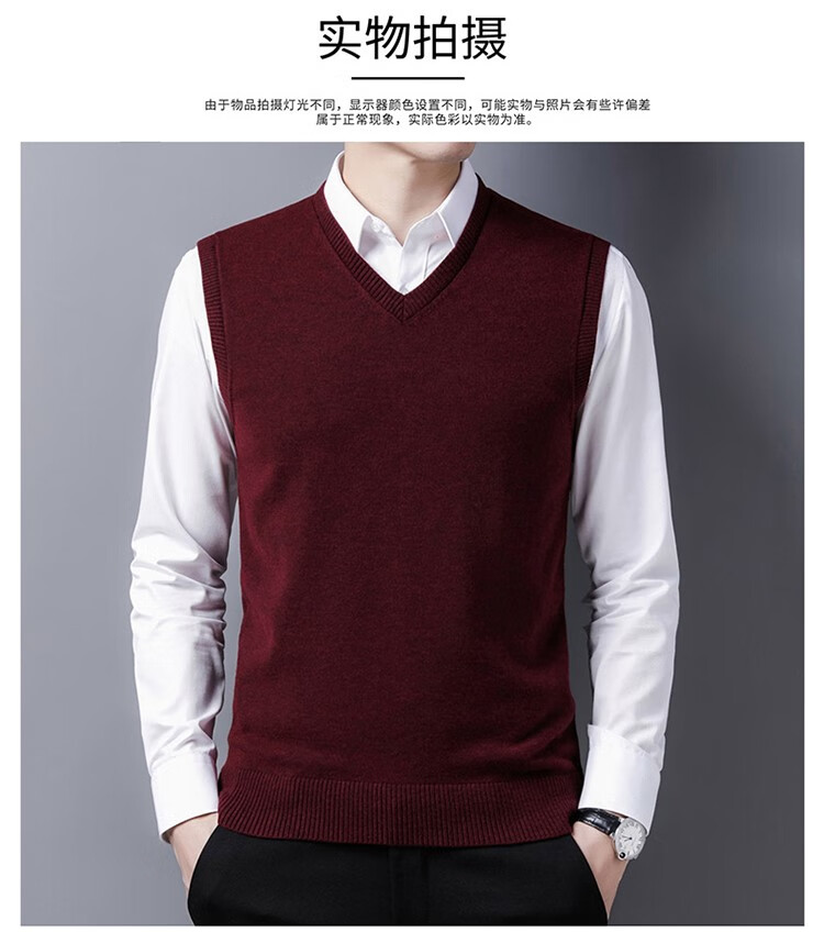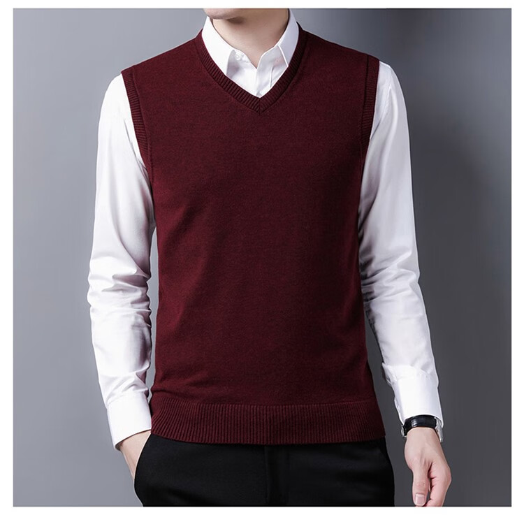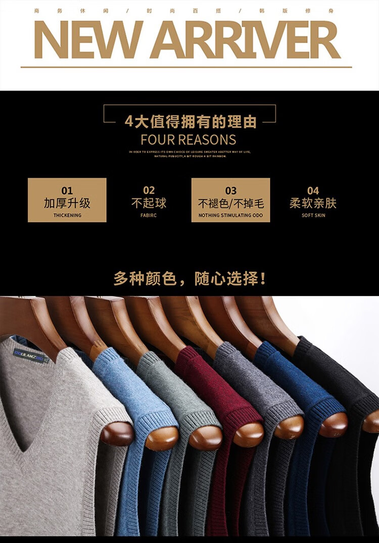 Lilan wool knitted vest men's autumn and winter new sleeveless vest pullover vest solid color V-neck warm sweater Lilan vest red Liang vest red 2XL 180/recommended 160180Jin Jin equals 0.5 kg
