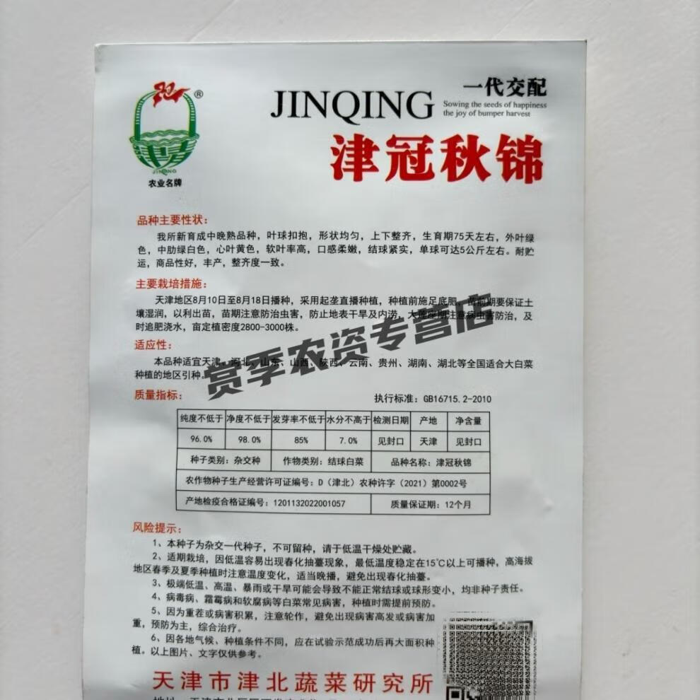 Jinguanqiujin yellow-heart Chinese cabbage seeds, high-yielding and bolting-resistant, South Korean spring and autumn agricultural field planting vegetable seeds, Jinbei Jinguanqiujin Chinese cabbage 50g