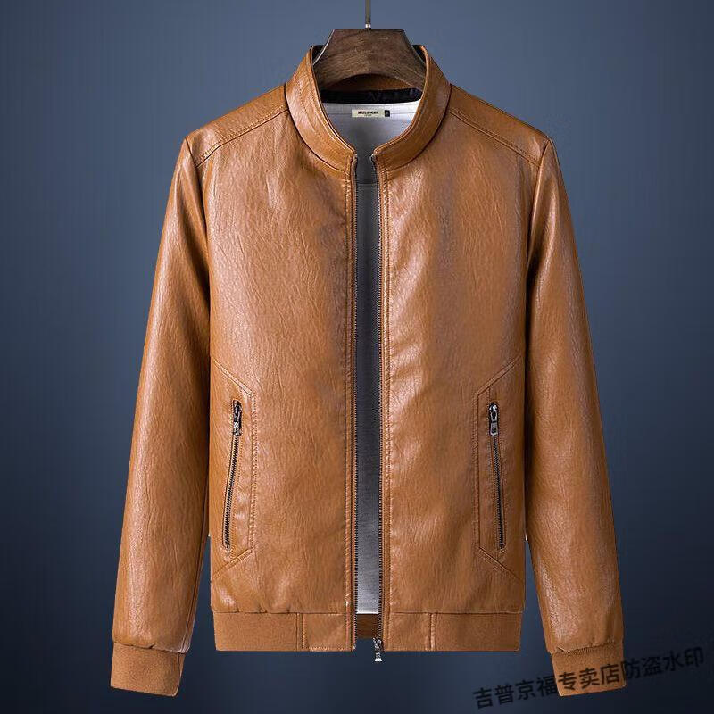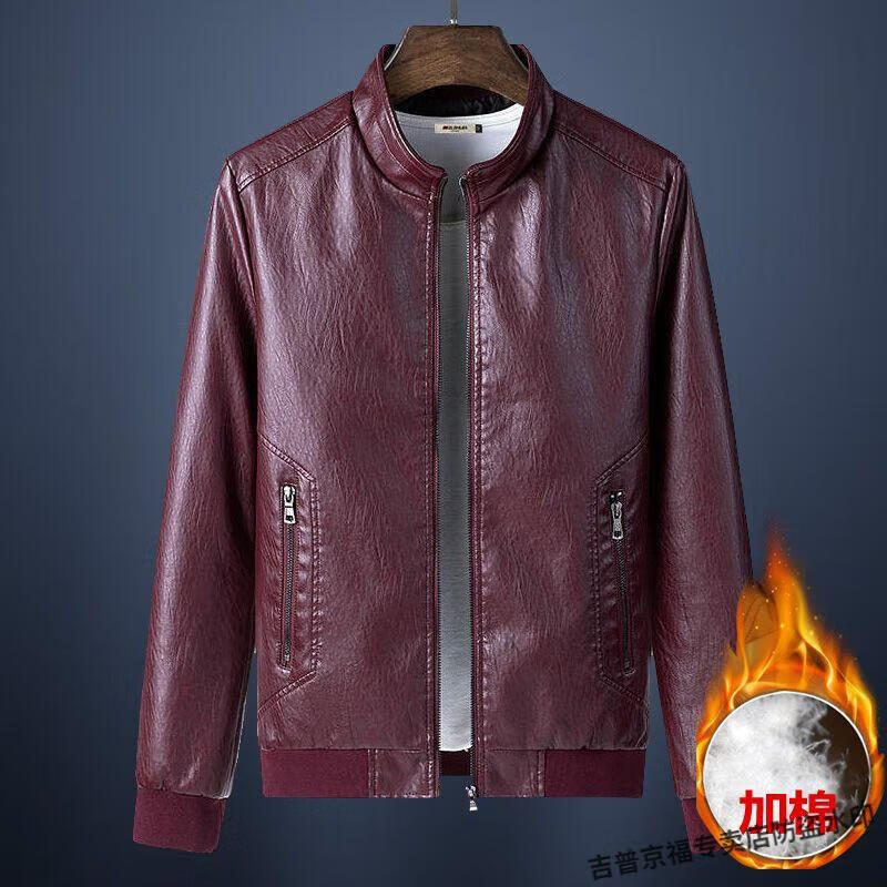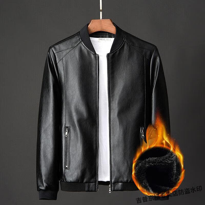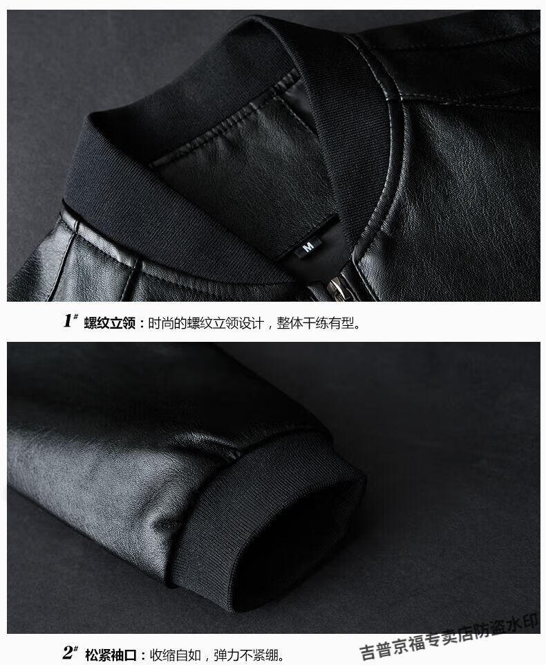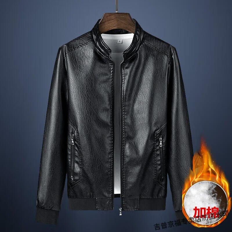 JEEP SPIRIT Jeep Brand Men's Haining Velvet Leather Jacket Men's Large Size Men's Jacket Imitation Sheep Leather Jacket Cycling Motorcycle 817 Black XL