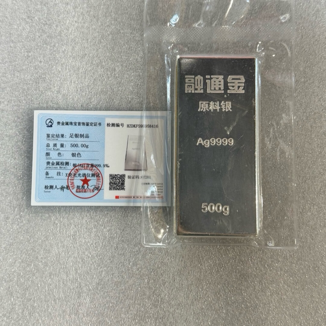 Rongtong gold silver silver bar raw material Ag9999 investment silver silver bar pure silver water shell pure silver bar Rongtong gold 200 grams silver bar certificate