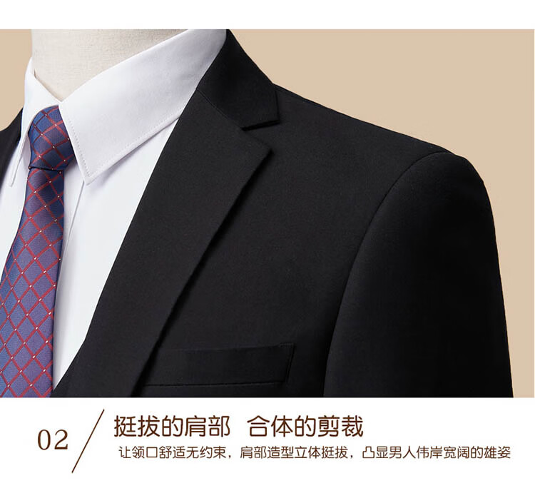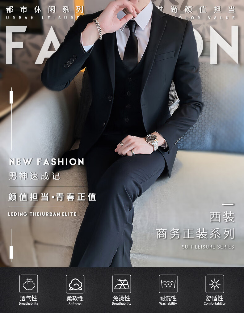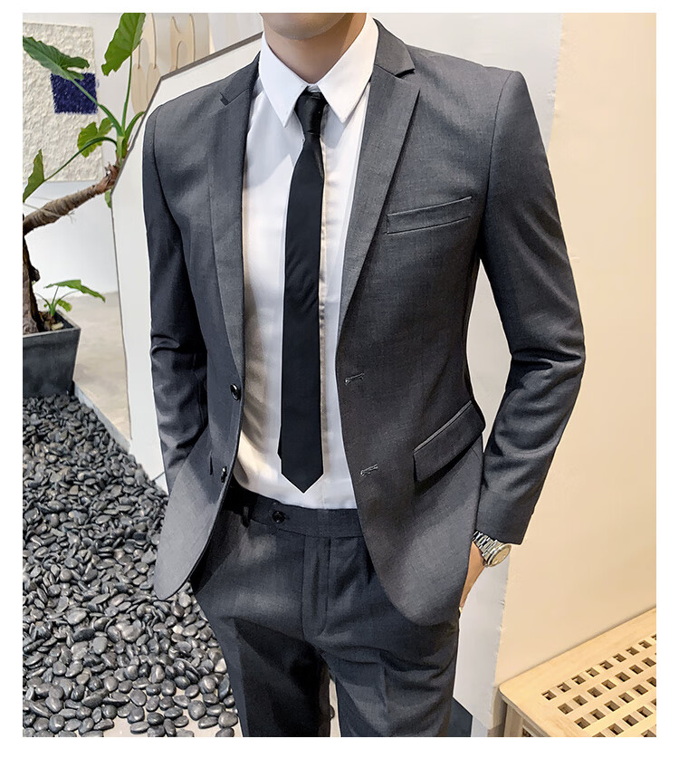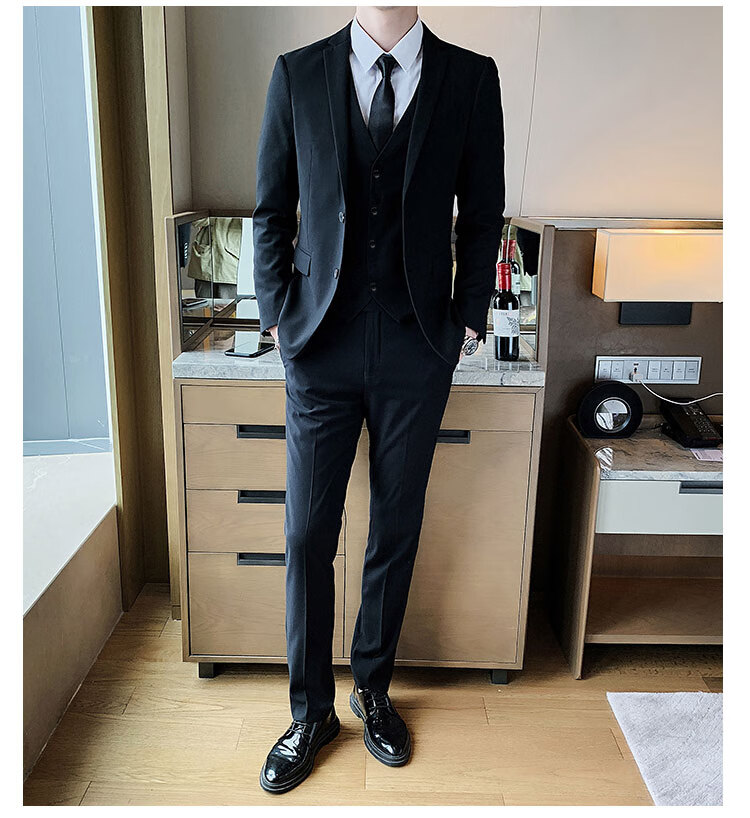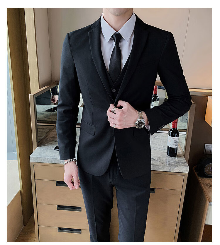 Playboy Suit Men's Korean Slim Jacket Groom Wedding Dress Business Professional Formal Casual Small Suit Men Double-button Black Suit+Pants+Shirt Free Belt