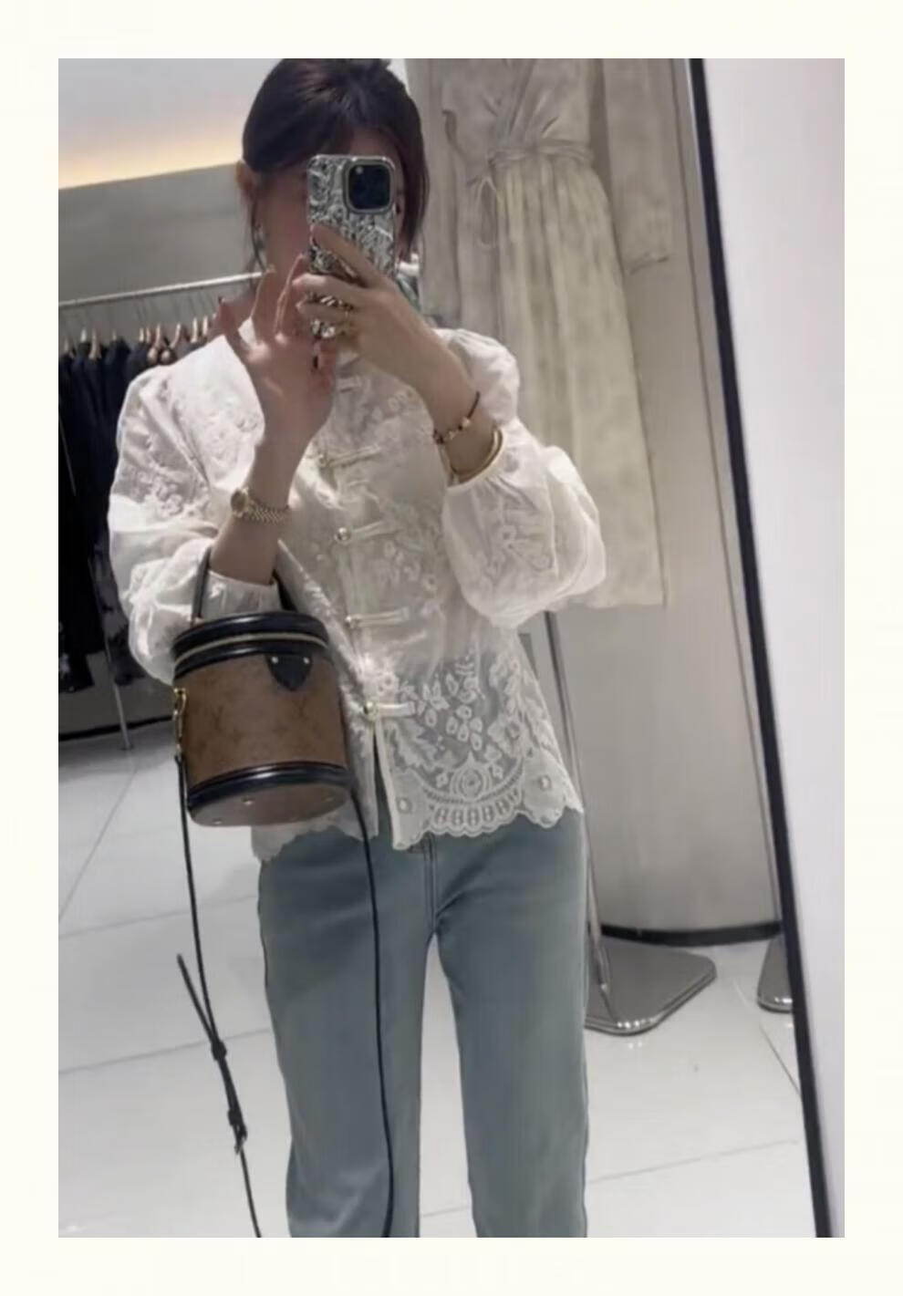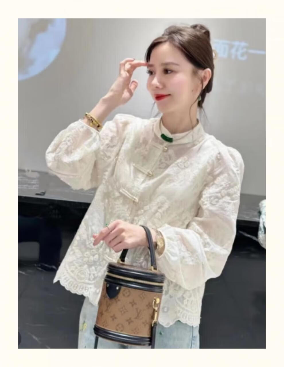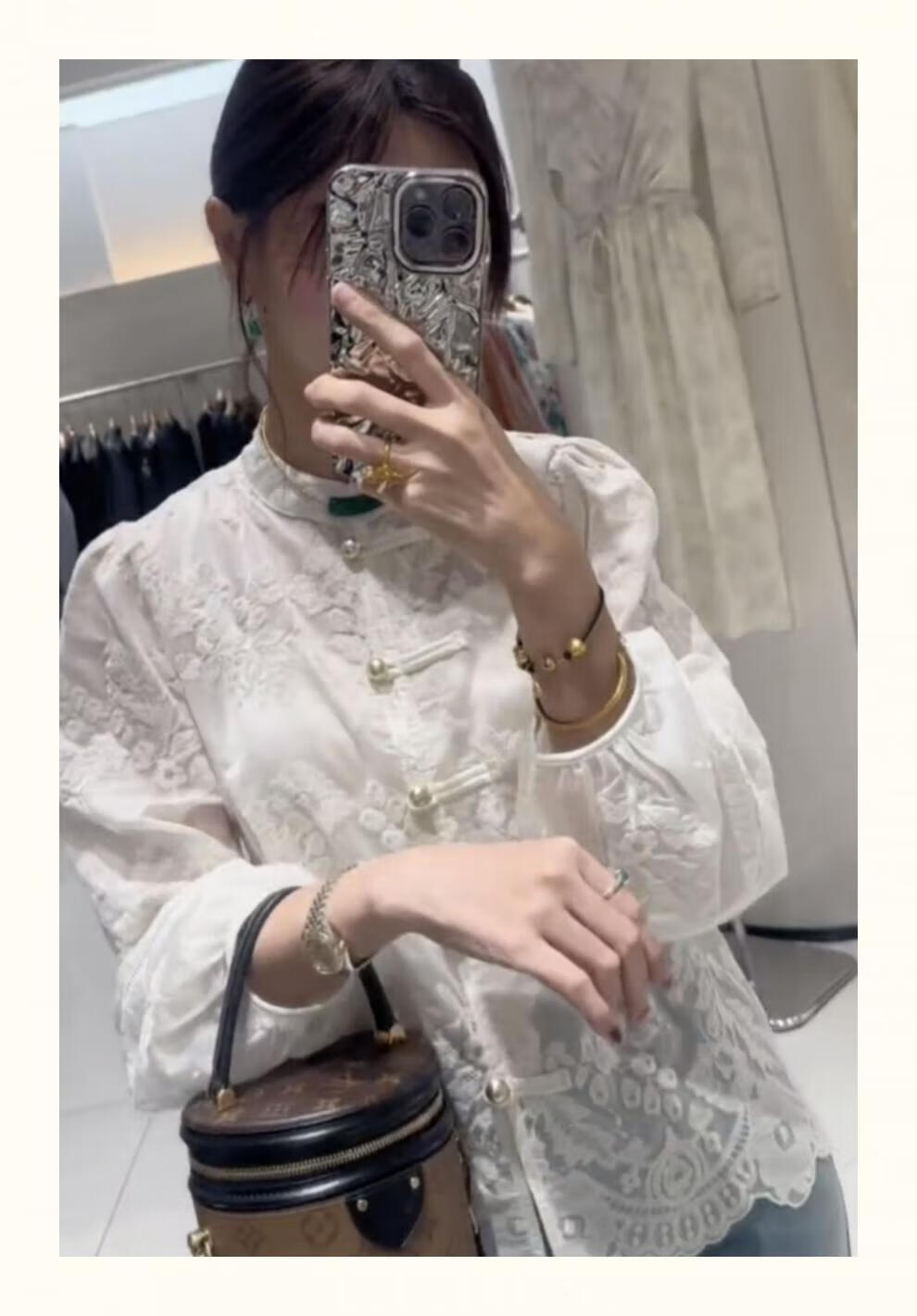 VOYDOVE New Chinese Top Women's Shirt 2025 New Style Light Luxury Spring and Autumn National Style Embroidery Design Shirt Off-White Shirt z M (100-115Jin Jin is equal to 0.5 kg)