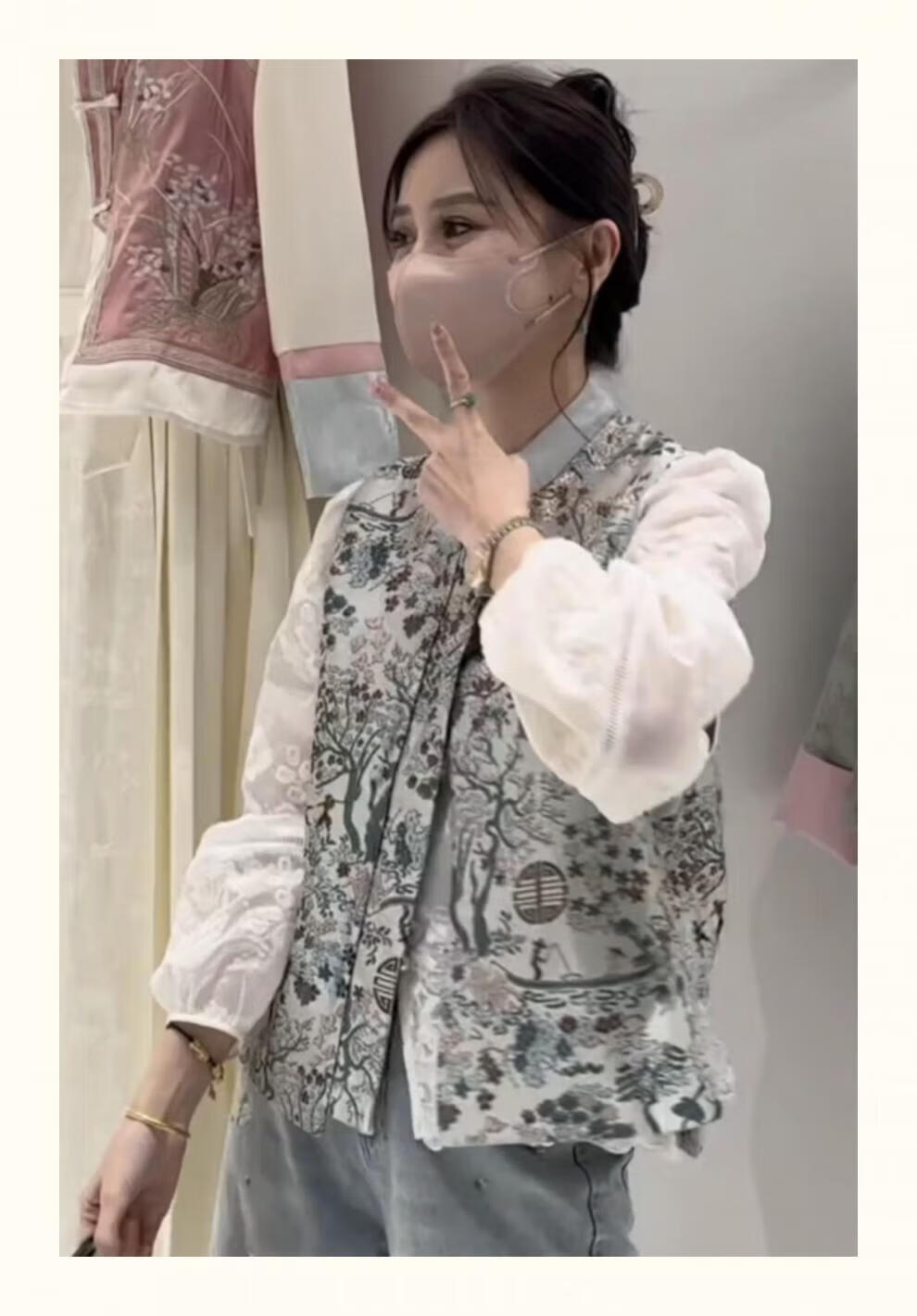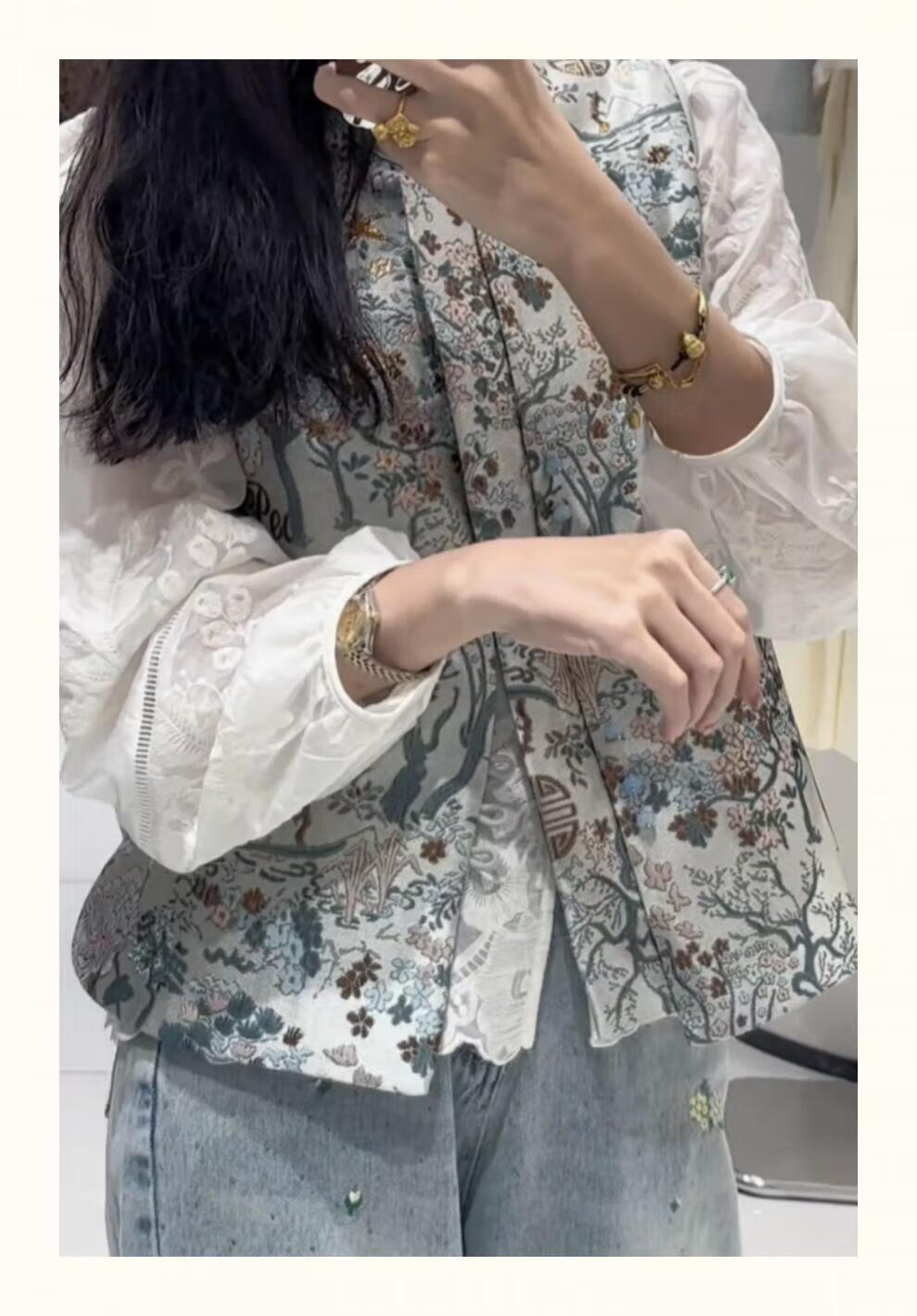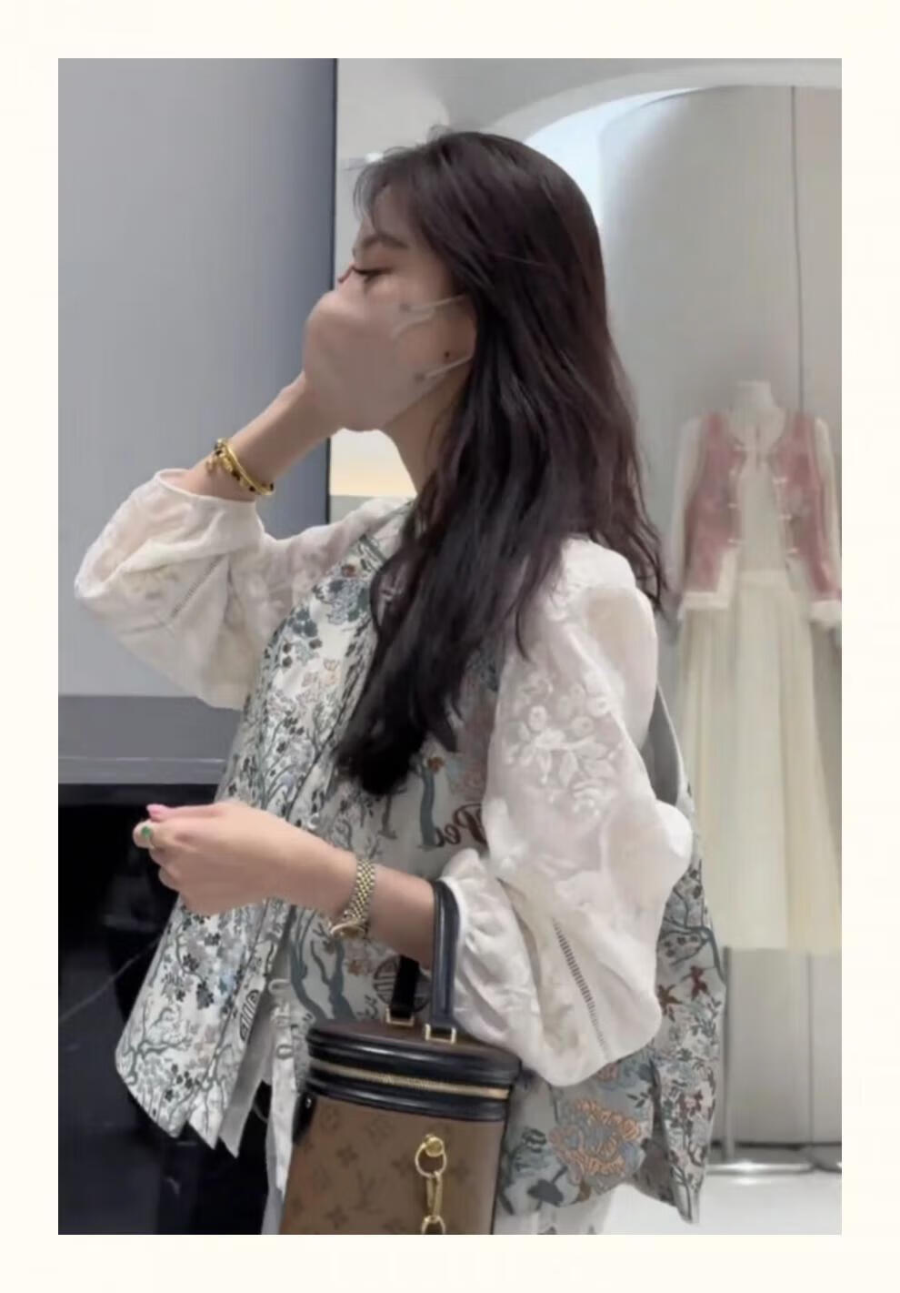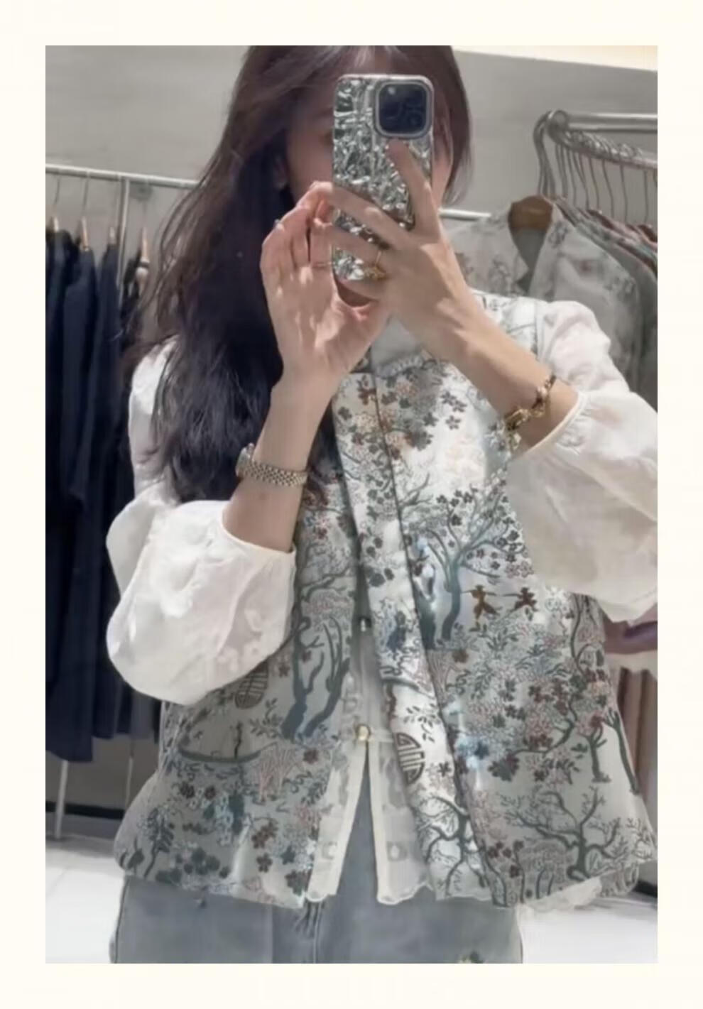 VOYDOVE New Chinese Top Women's Shirt 2025 New Style Light Luxury Spring and Autumn National Style Embroidery Design Shirt Off-White Shirt z M (100-115Jin Jin is equal to 0.5 kg)