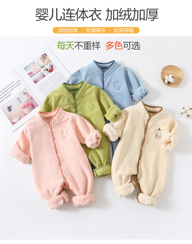 HAL.DUCK baby jumpsuit, newborn baby plus fleece clothes, spring, autumn and winter outer wear outer suit, thickened and warm outdoor clothing, plus fleece hemming, bear blue 73cm
