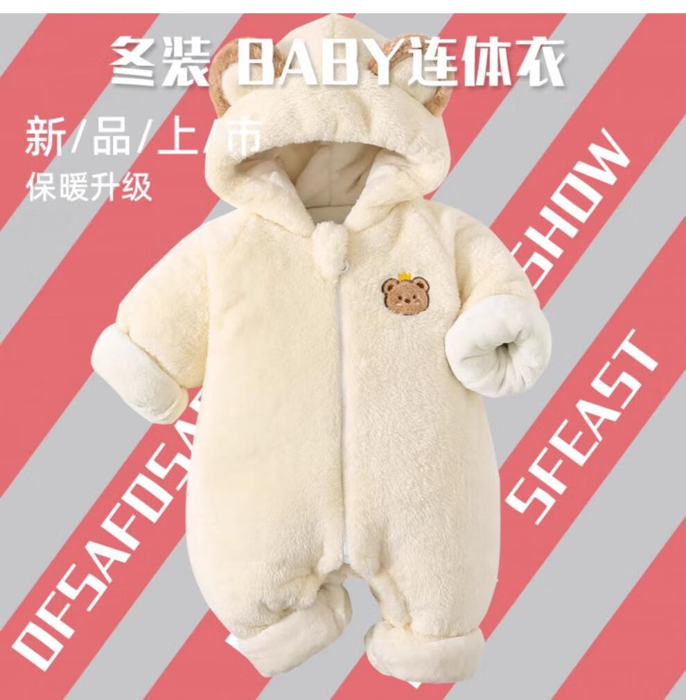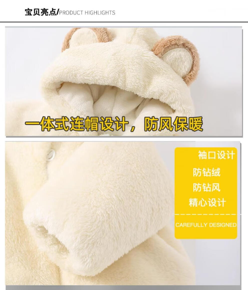 HAL.DUCK baby winter clothing infant jumpsuit baby autumn and winter thickened cotton clothes cotton clothes newborn hug clothes outing jacket Crown Bear Pink 66cm