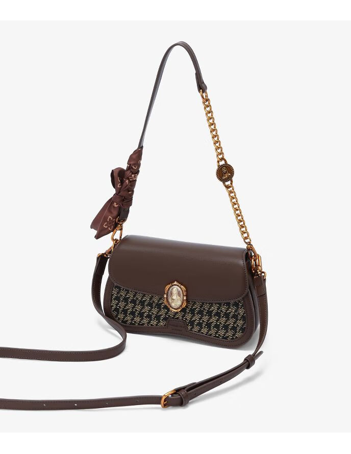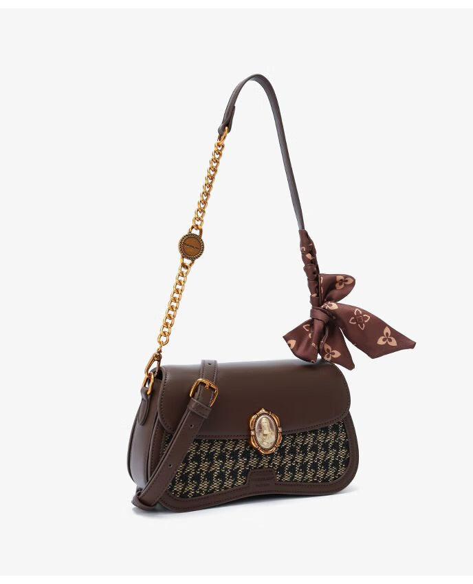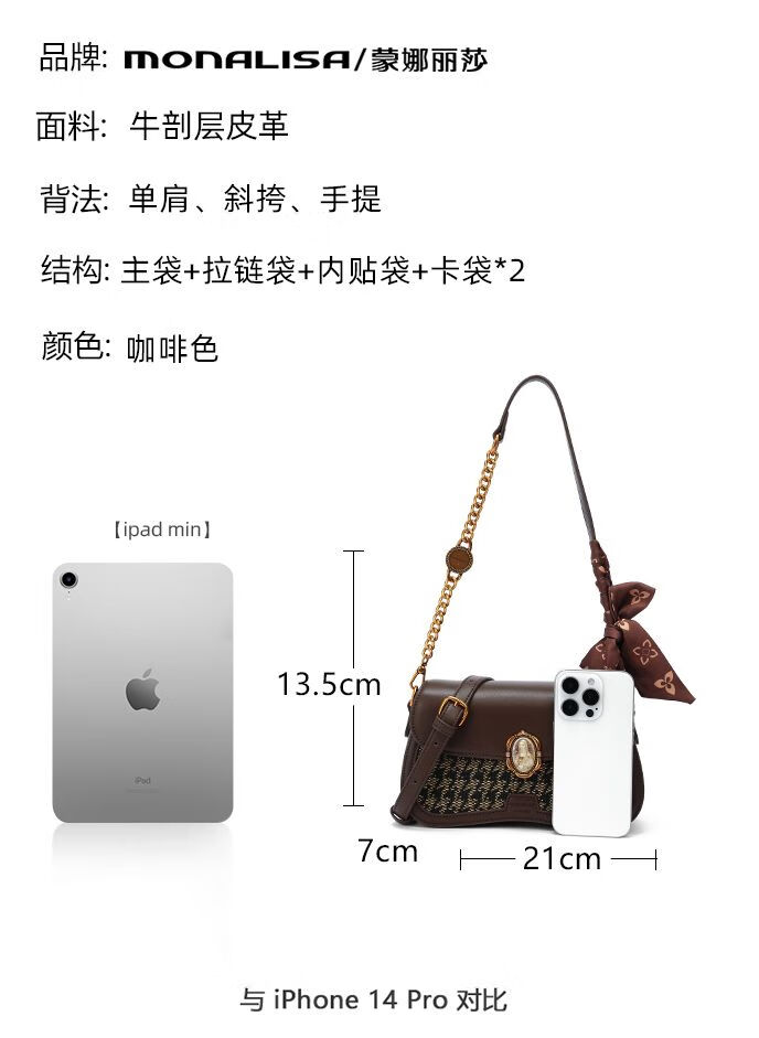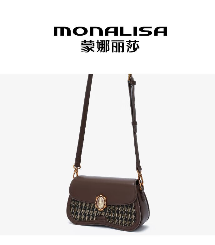 Mona Lisa/Mona Lisa 2024 new genuine leather armpit bag woven fashionable cowhide shoulder crossbody bag for women, coffee color