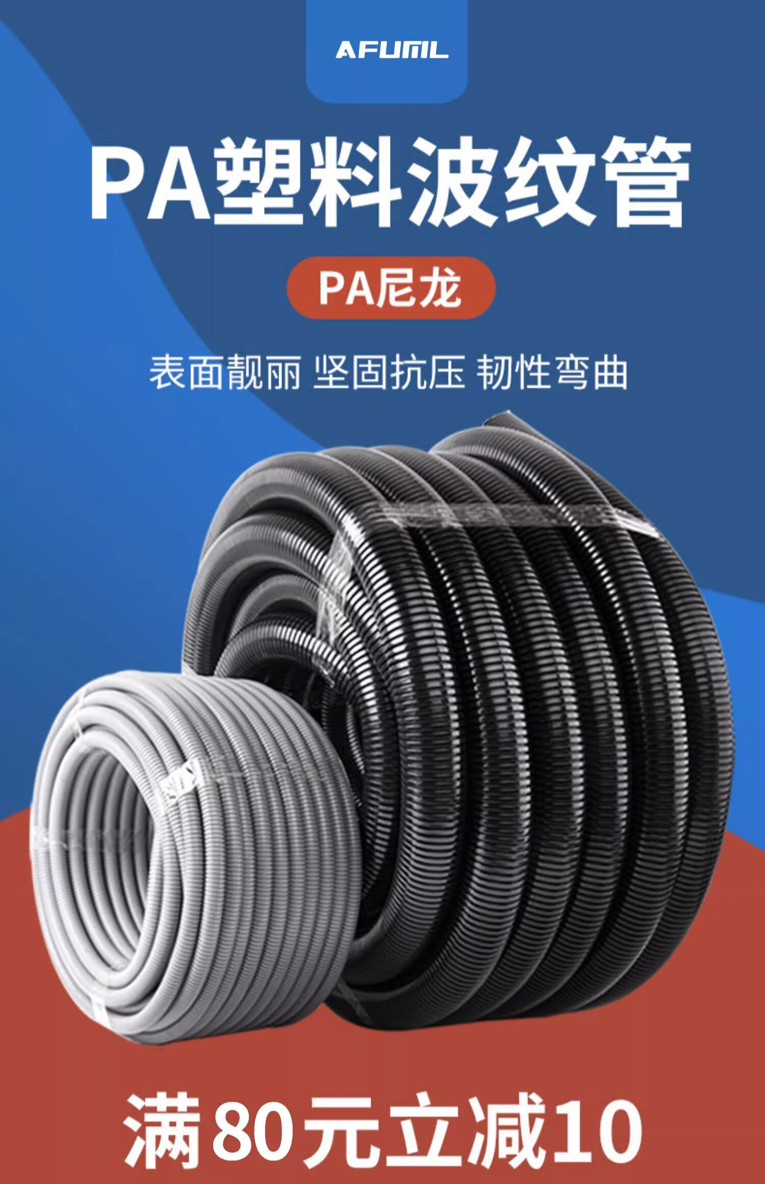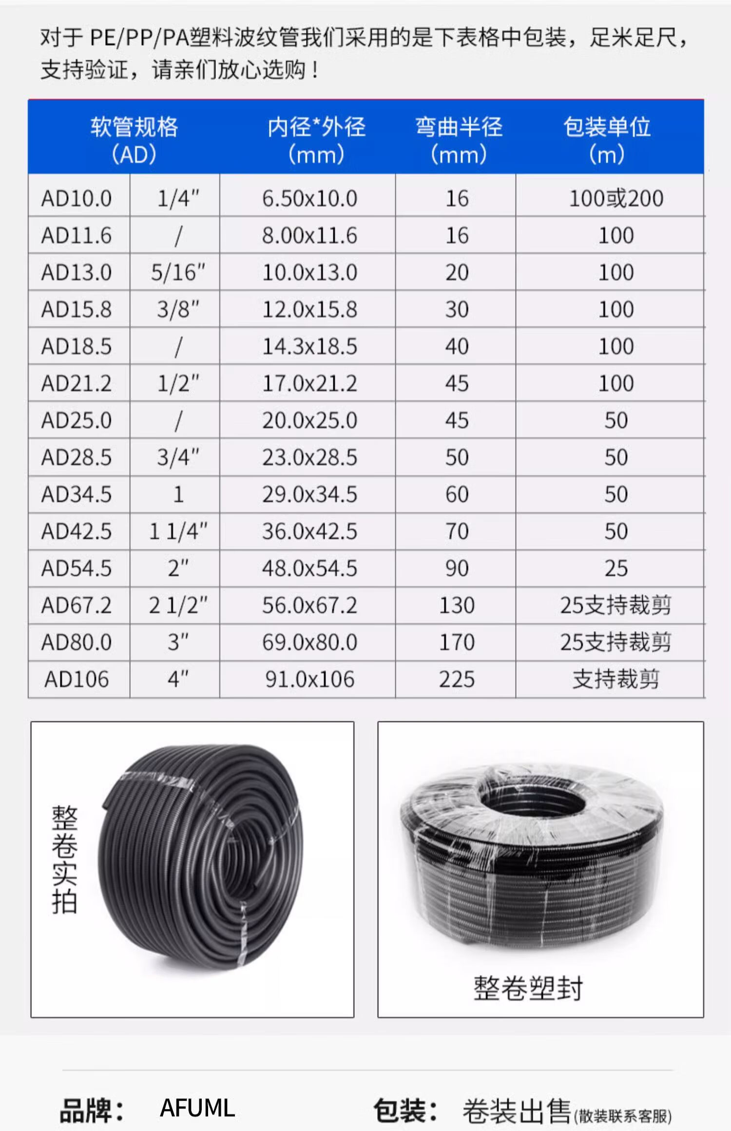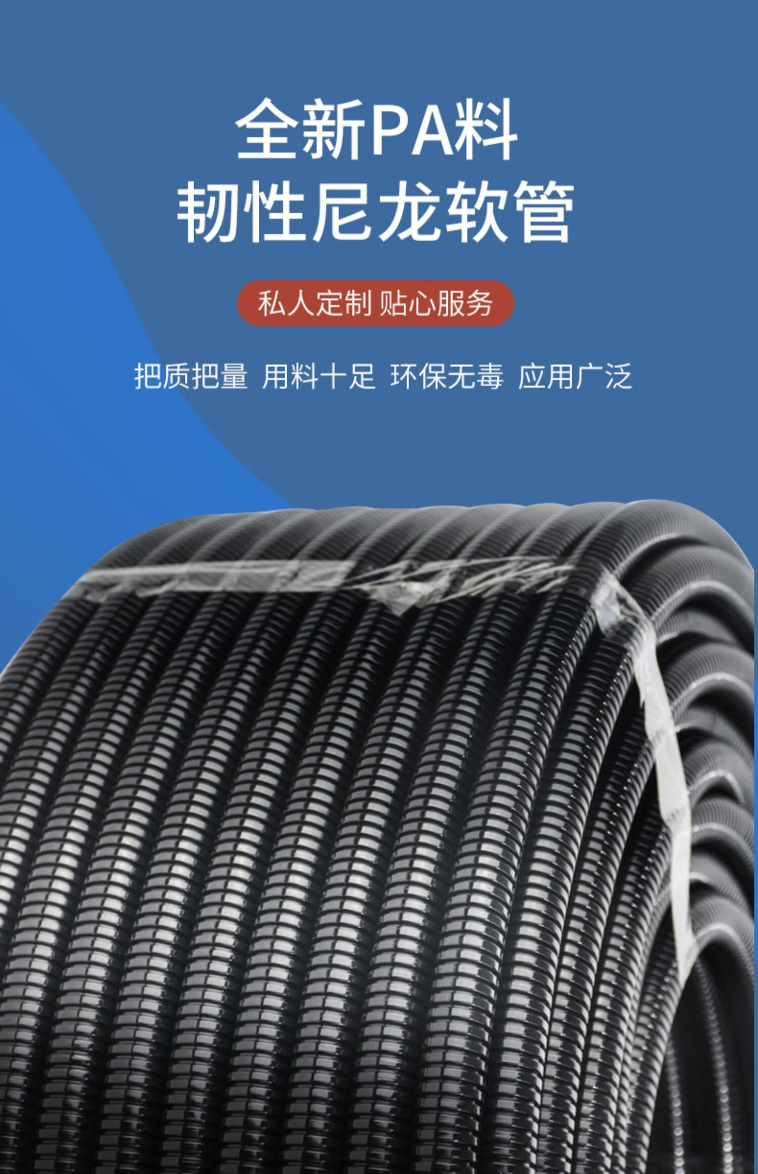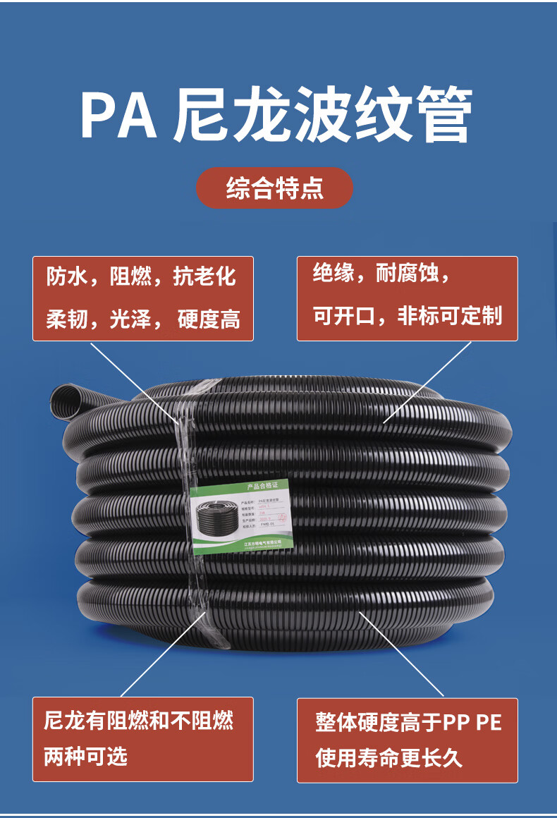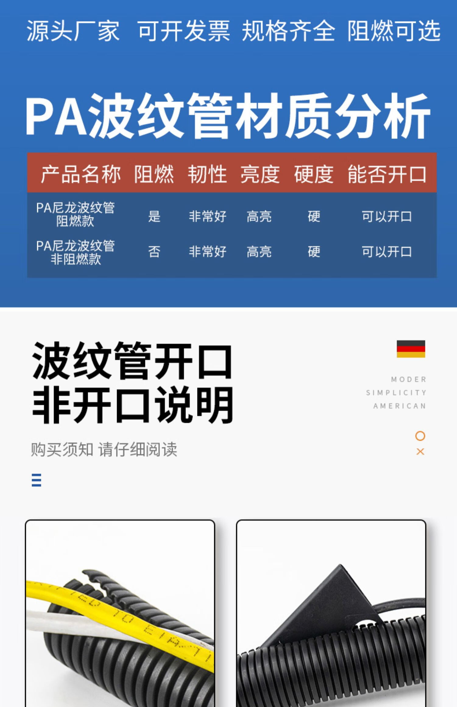 PA nylon flame retardant threading hose wire and cable electrician protection sleeve threaded pipe openable plastic corrugated pipe PA42.5mm/50 meters flame retardant