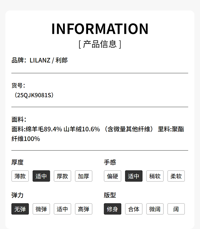 Lilang Shopping Mall Same Style Wool Cashmere Jacket Men's Lapel Simple Commuting Business Men's Jacket Autumn 2025 Black (25QJK9081S) XL 175/88A