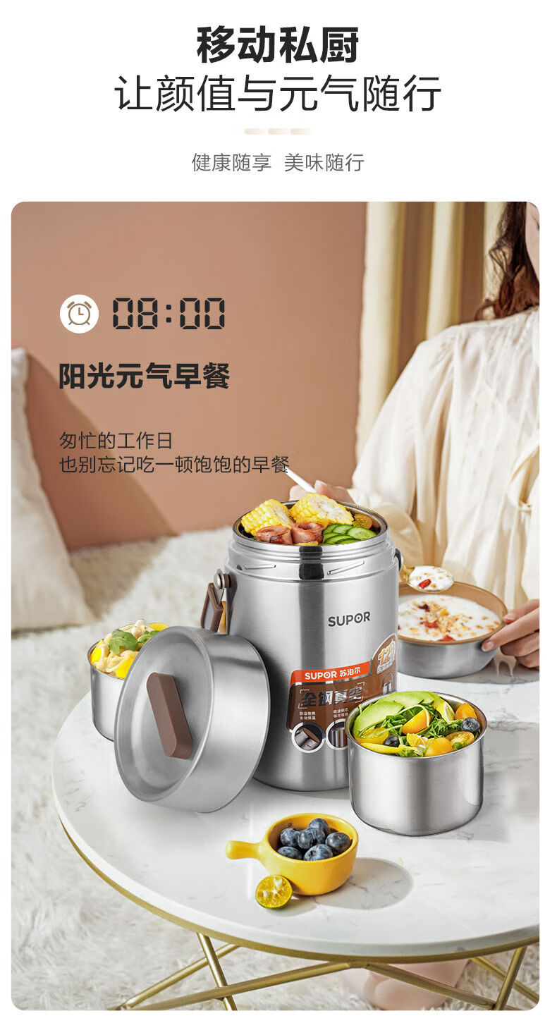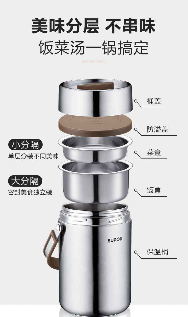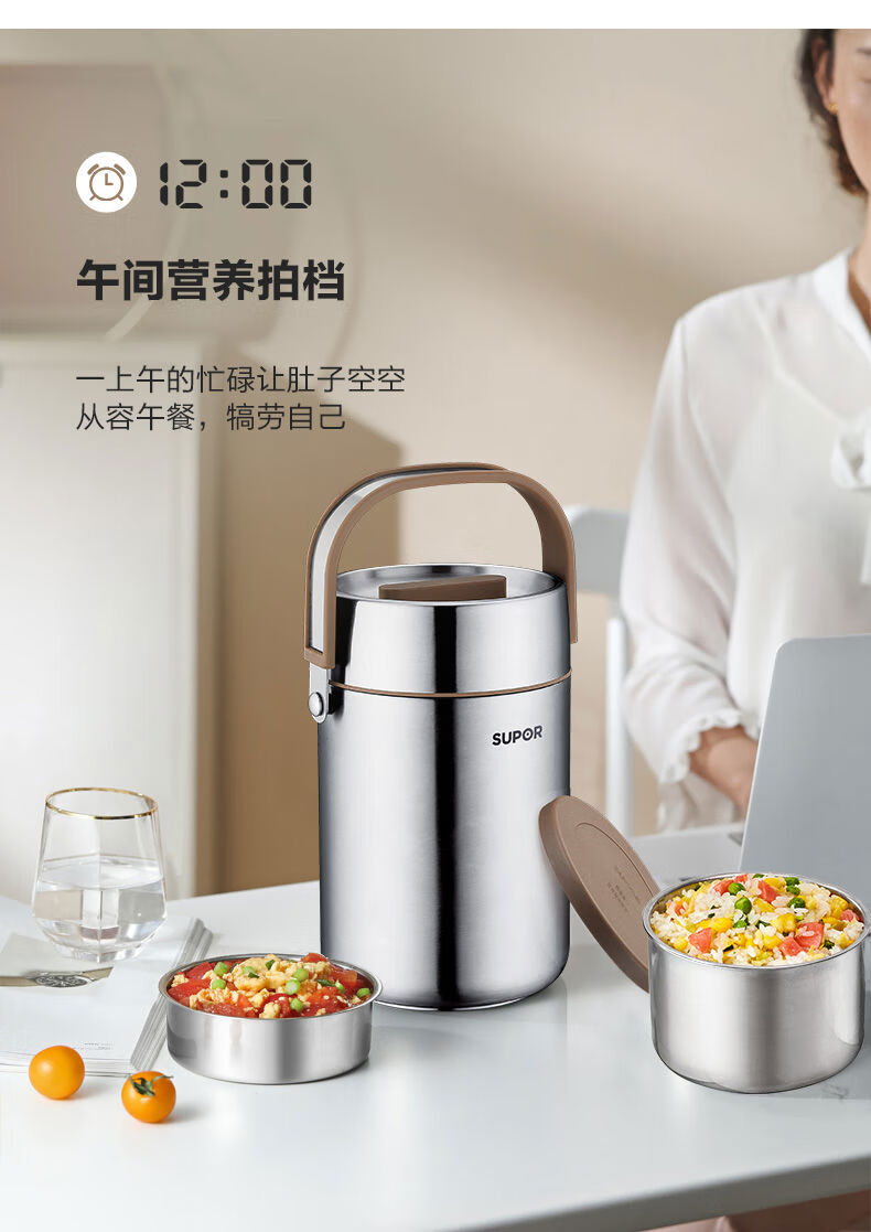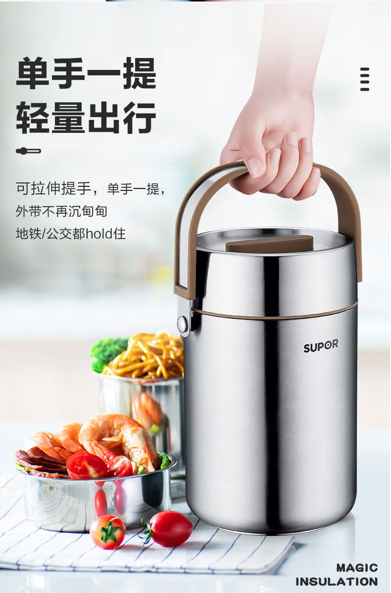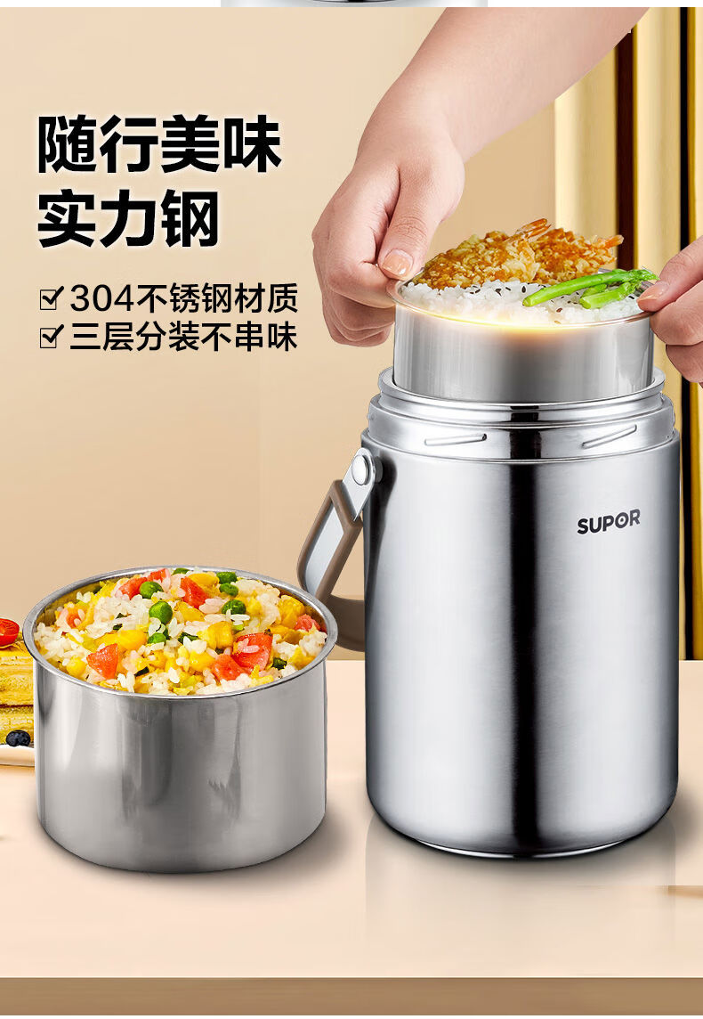 SUPOR SUPOR insulated lunch box bucket for home office workers 304 stainless steel 1-person student lunch box portable multi-layer winter day 1 point 6L warm 6-12H free insulation bag tableware