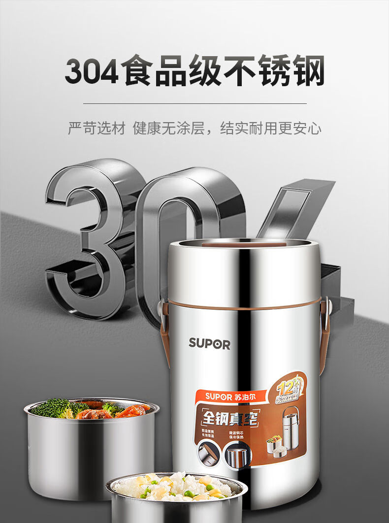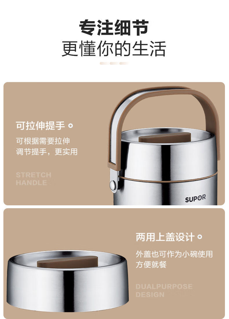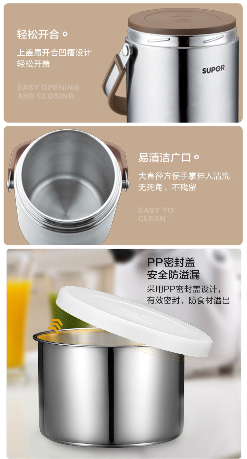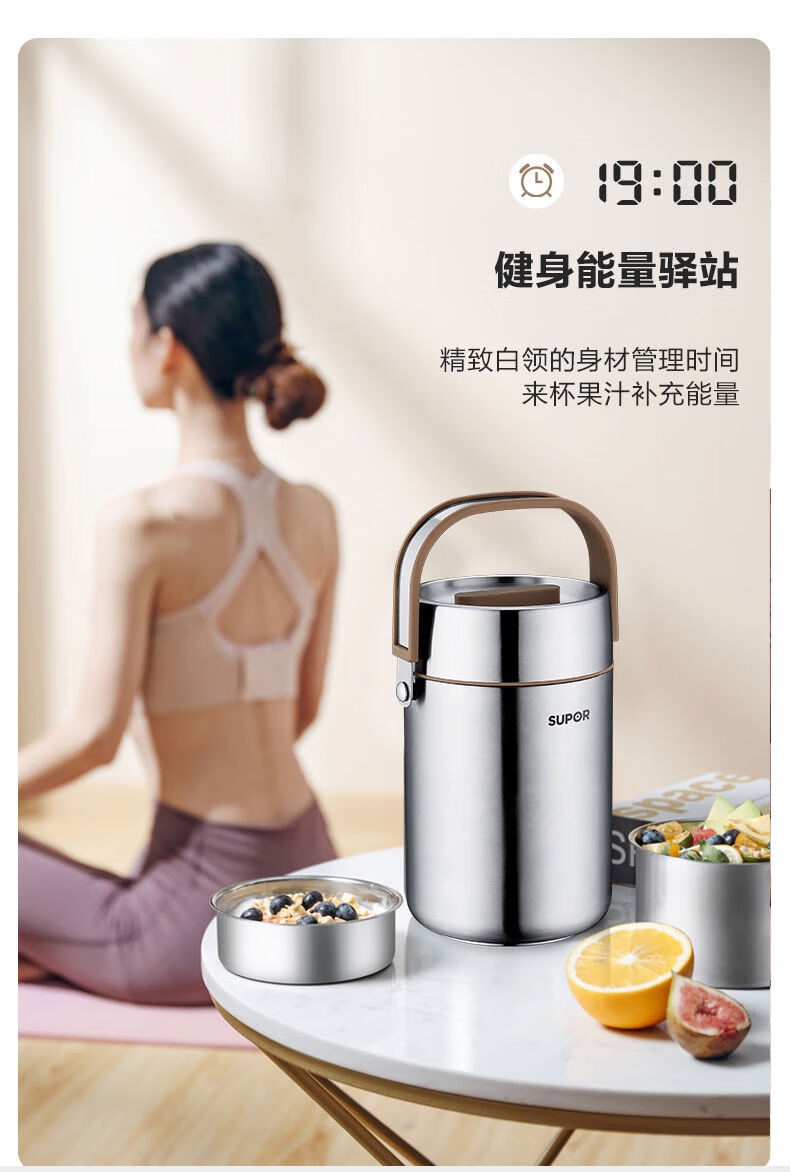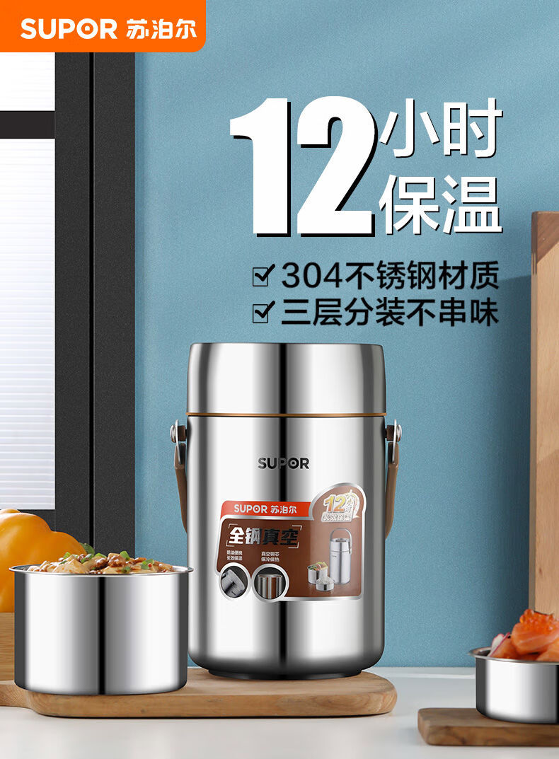 SUPOR SUPOR insulated lunch box bucket for home office workers 304 stainless steel 1-person student lunch box portable multi-layer winter day 1 point 6L warm 6-12H free insulation bag tableware