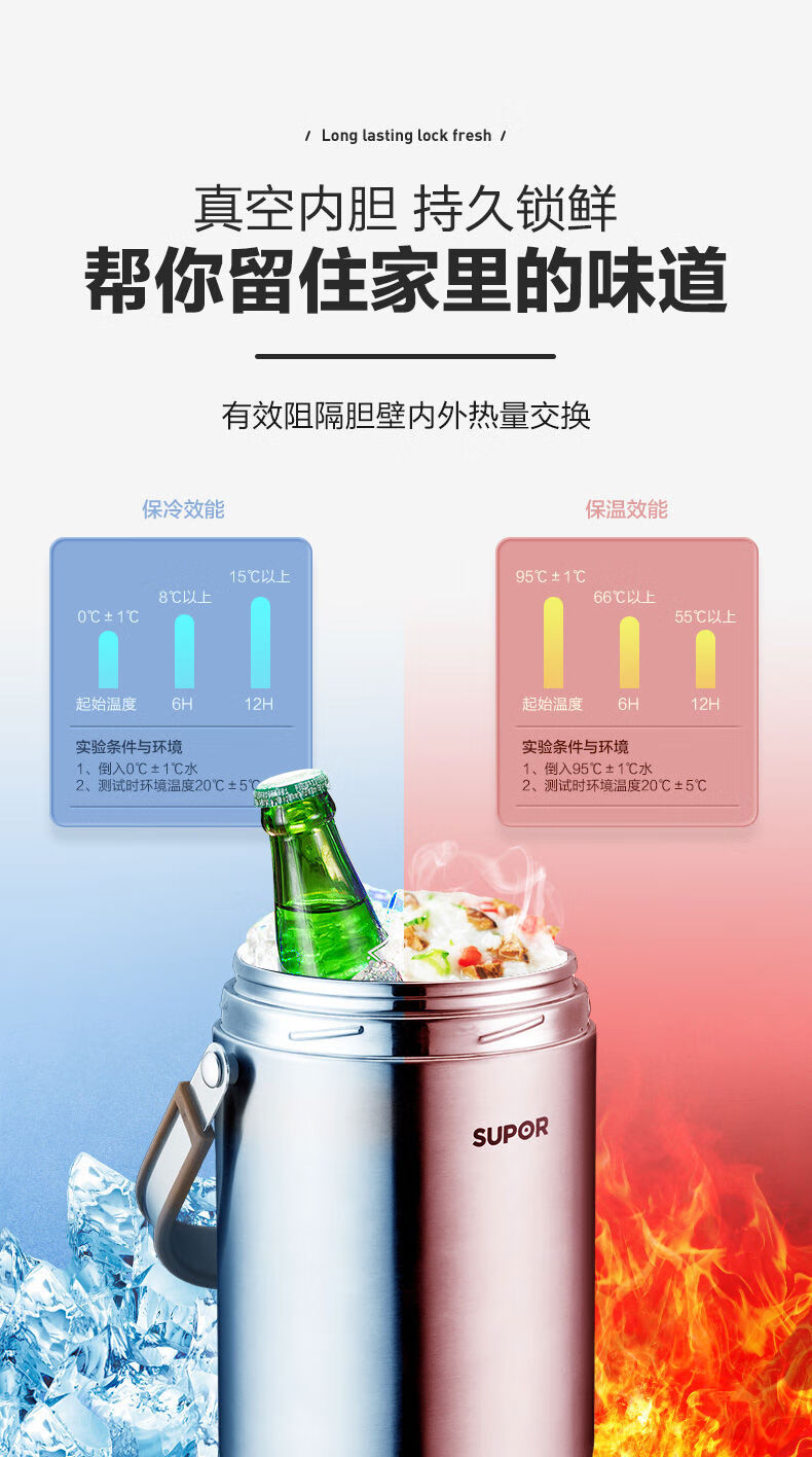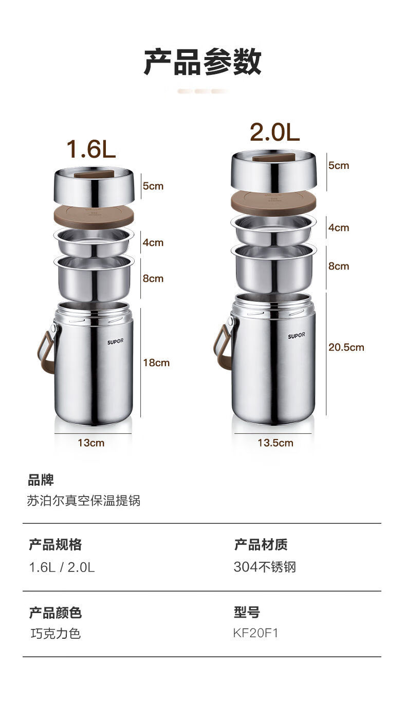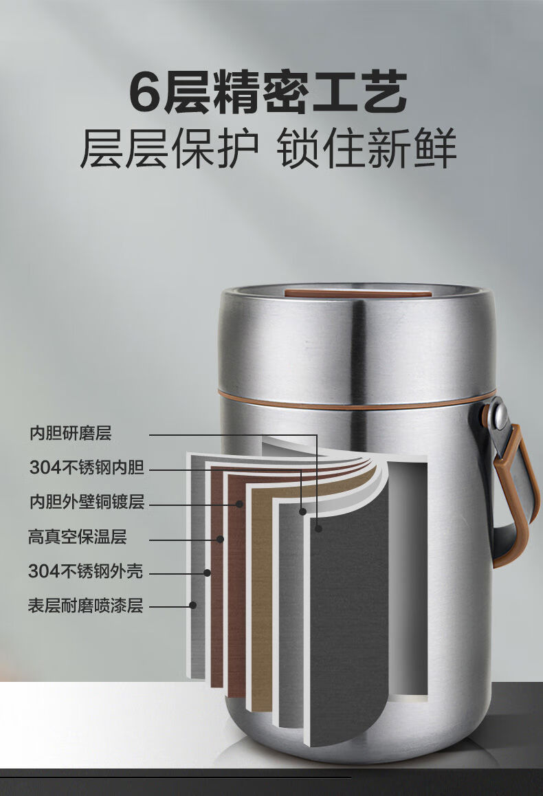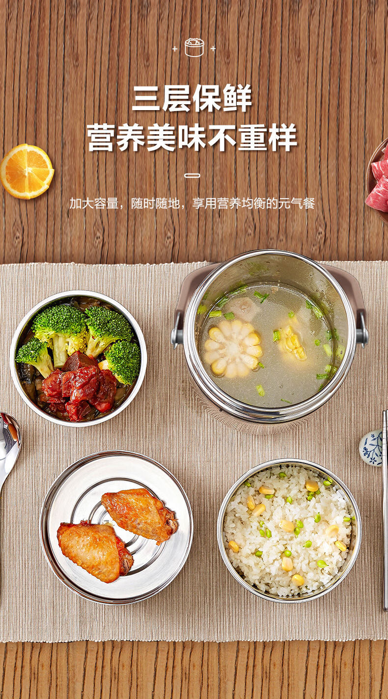 SUPOR SUPOR insulated lunch box bucket for home office workers 304 stainless steel 1-person student lunch box portable multi-layer winter day 1 point 6L warm 6-12H free insulation bag tableware