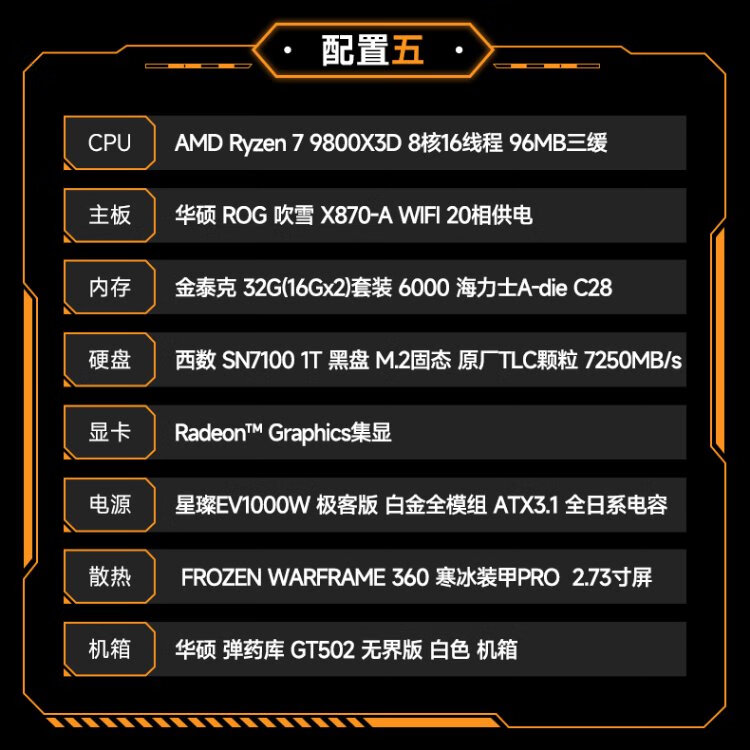 ASUS ROG TUF family bucket ammunition depot 9800X3D/no card/5070TI/5080 ammunition depot