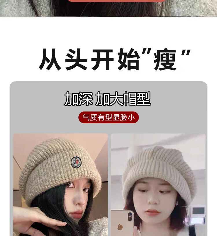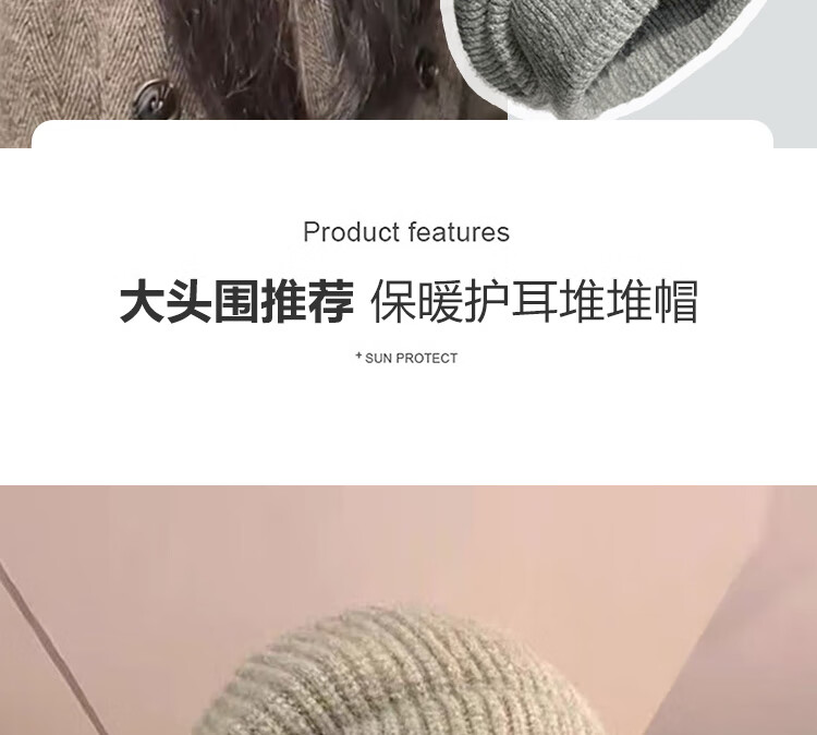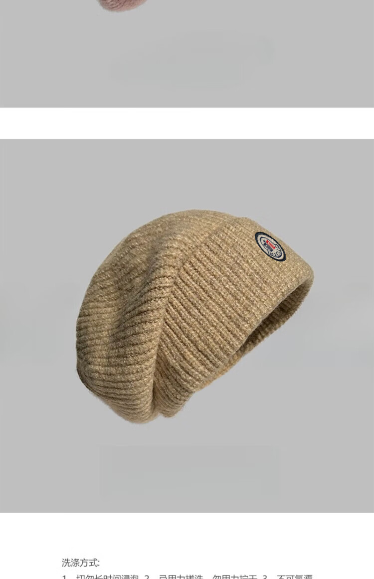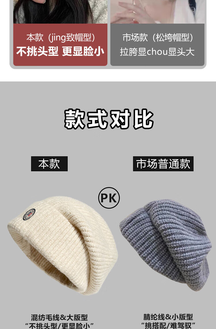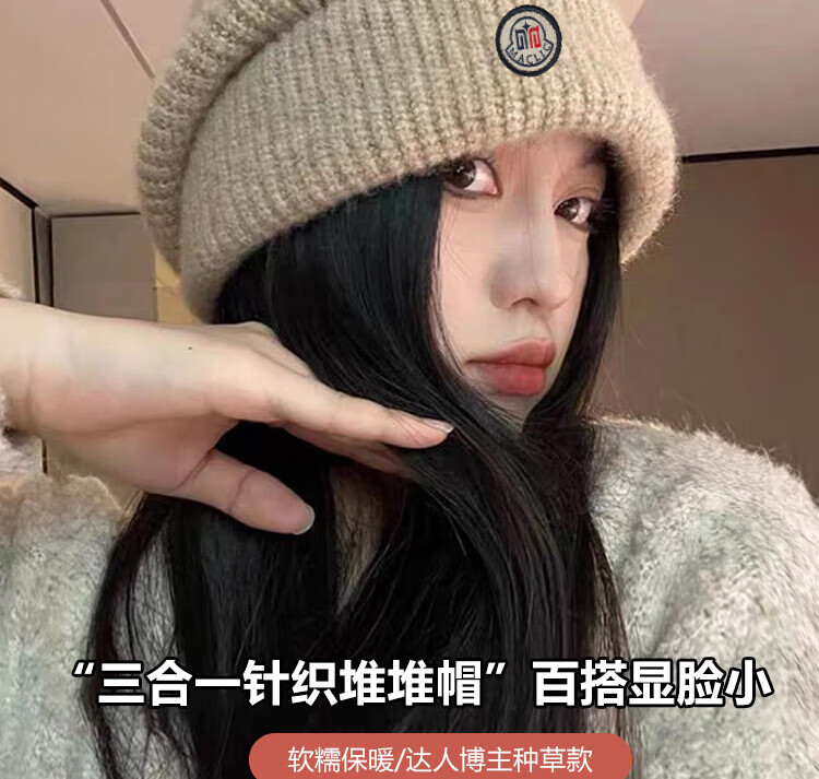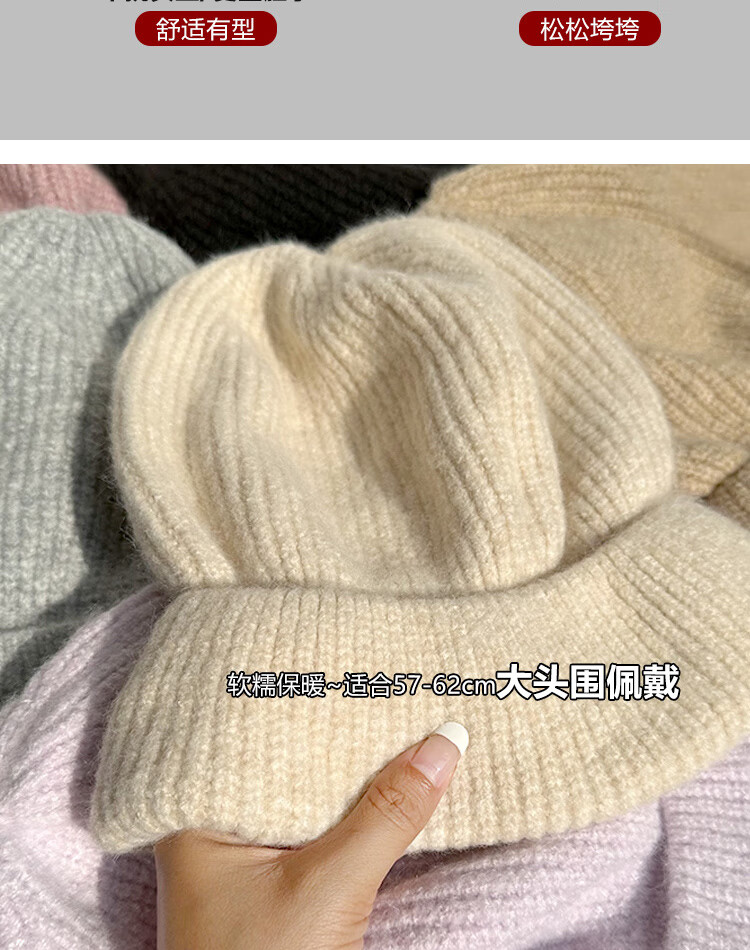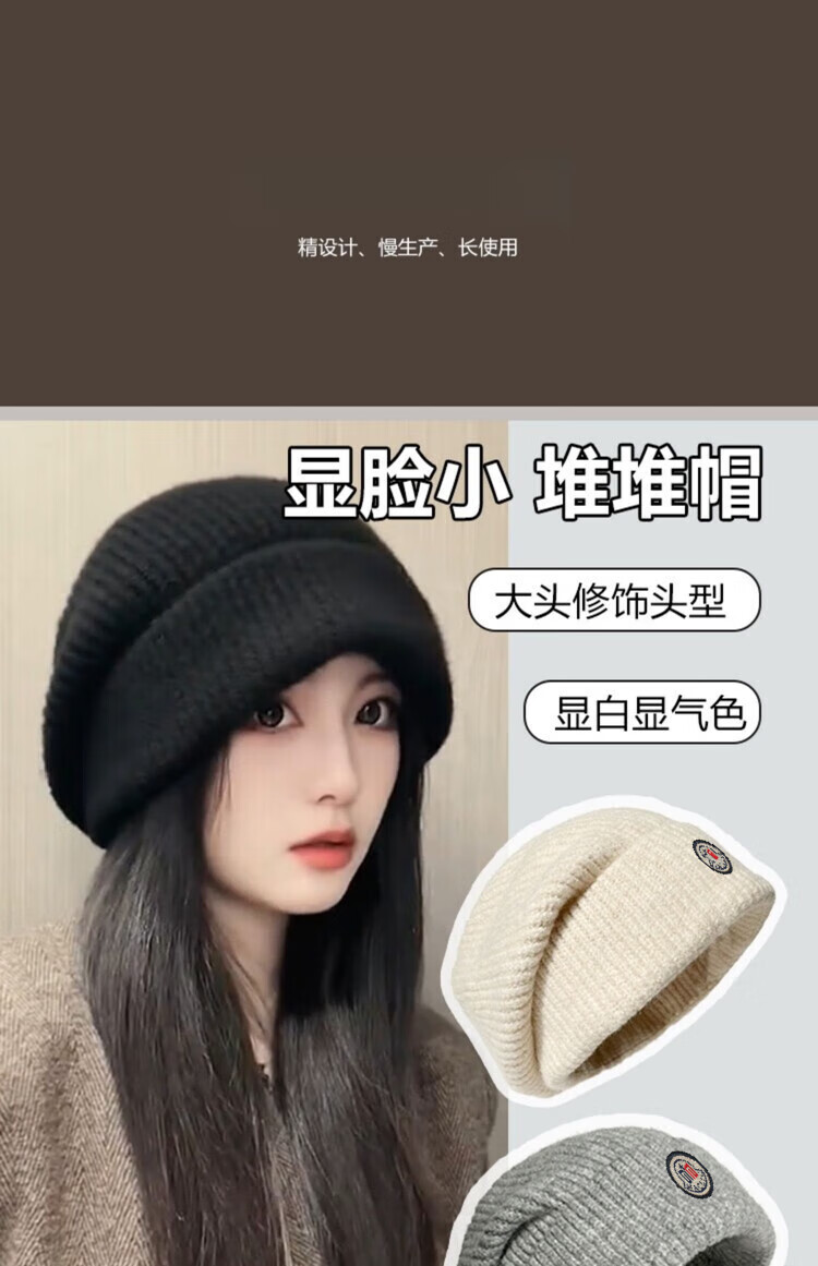 Mengbilin ins knitted hat for women in winter new warm ear protection woolen hat Korean version loose big head circumference net red pile hat black elastic (55-59cm)