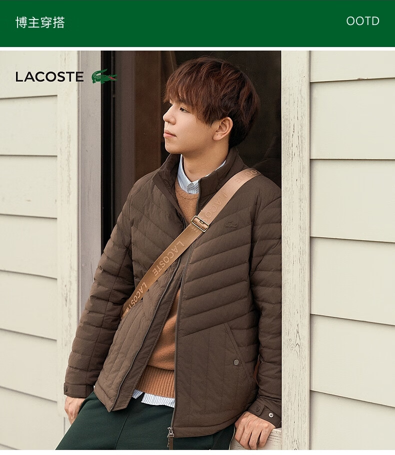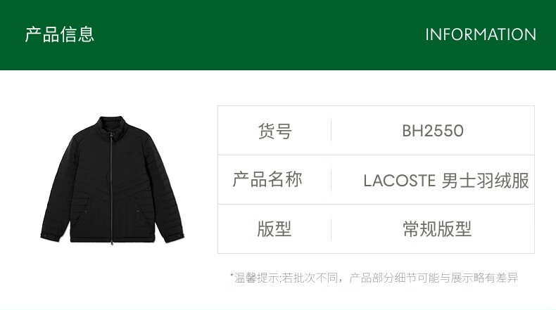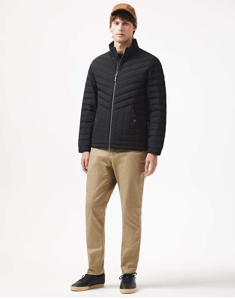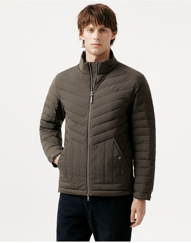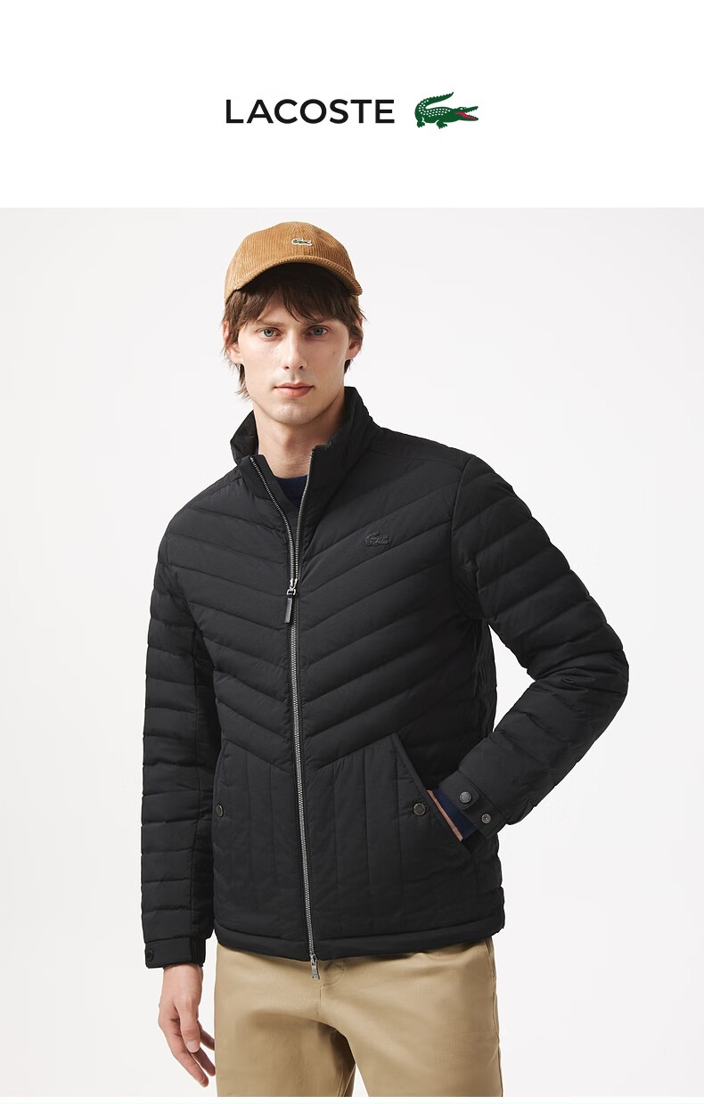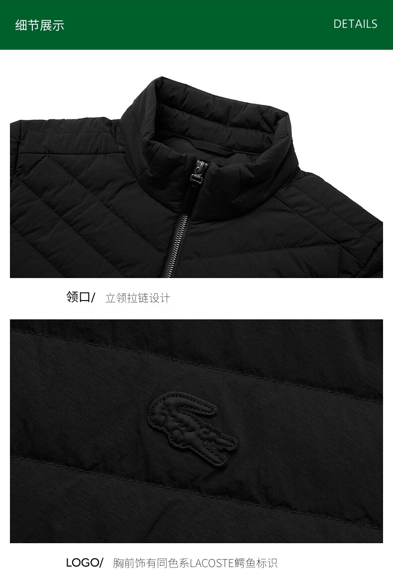 LACOSTE French crocodile men's 25 autumn new V-shaped partition quilted goose down jacket | BH2550 031/black S 46