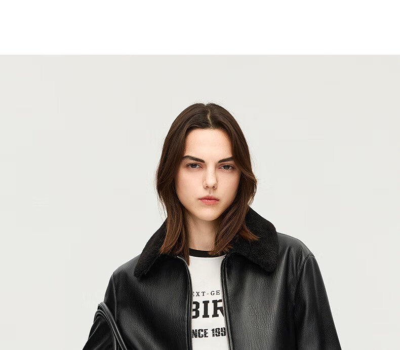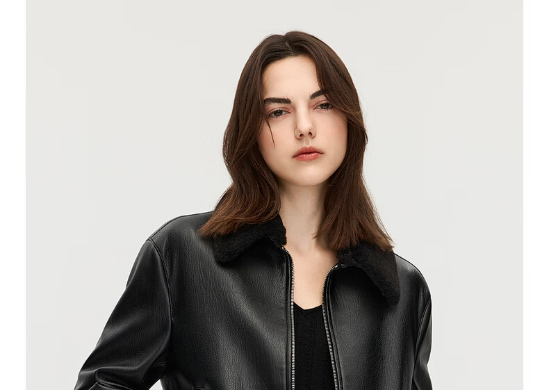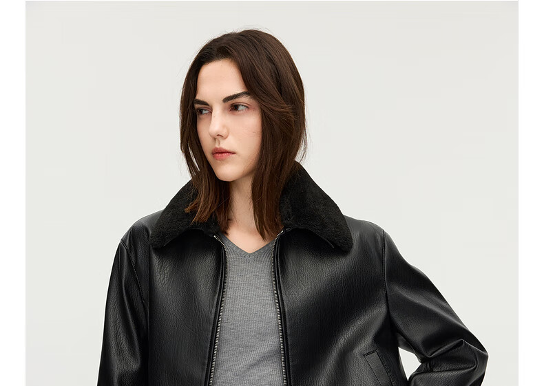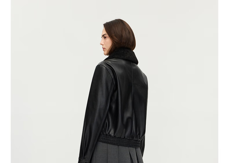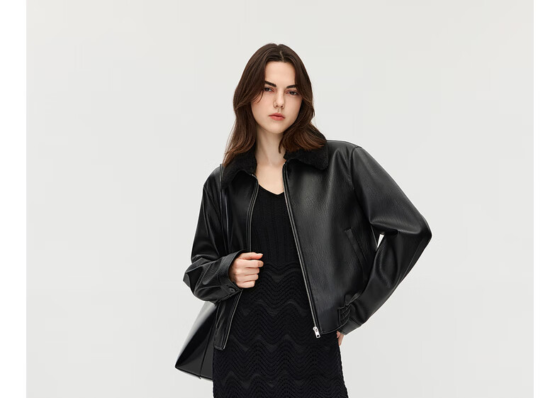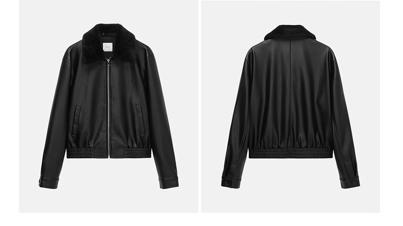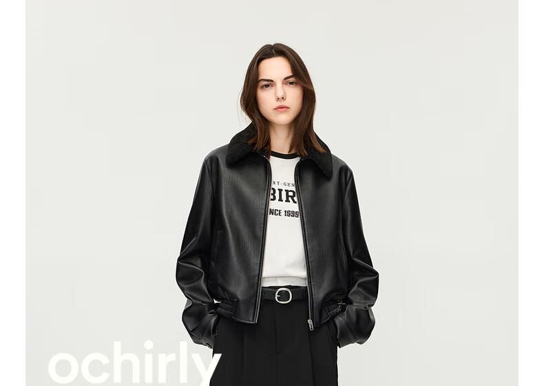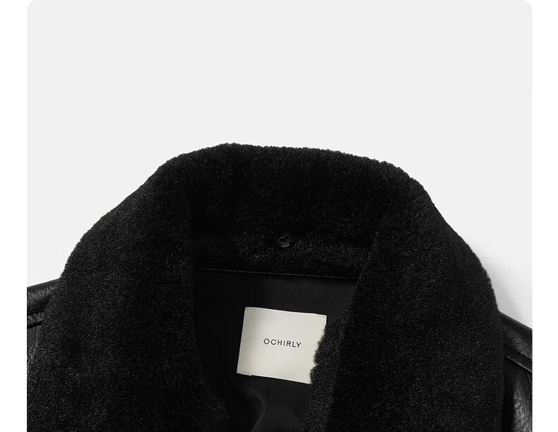 OCHIRLY Special Discount Detachable Fur Collar Jacket Leather Jacket Women's Matte High-Quality 25 Winter Black M