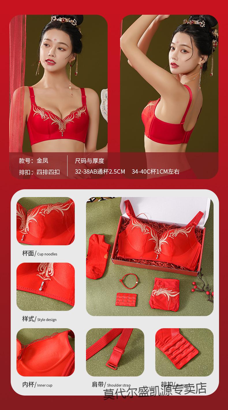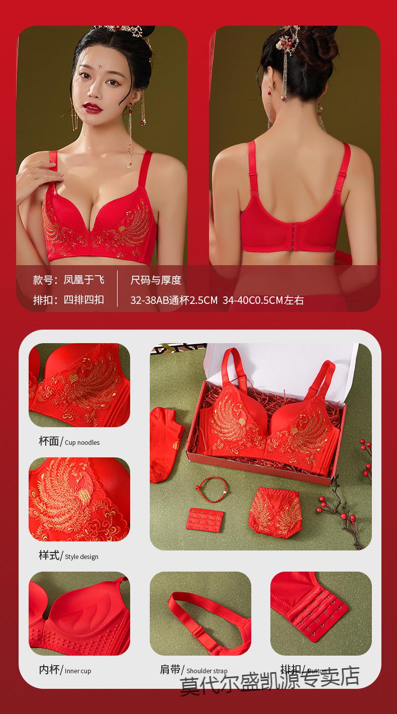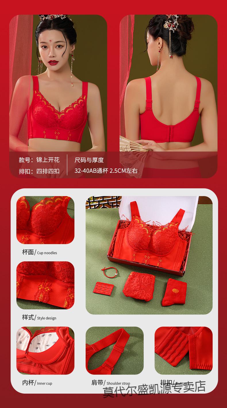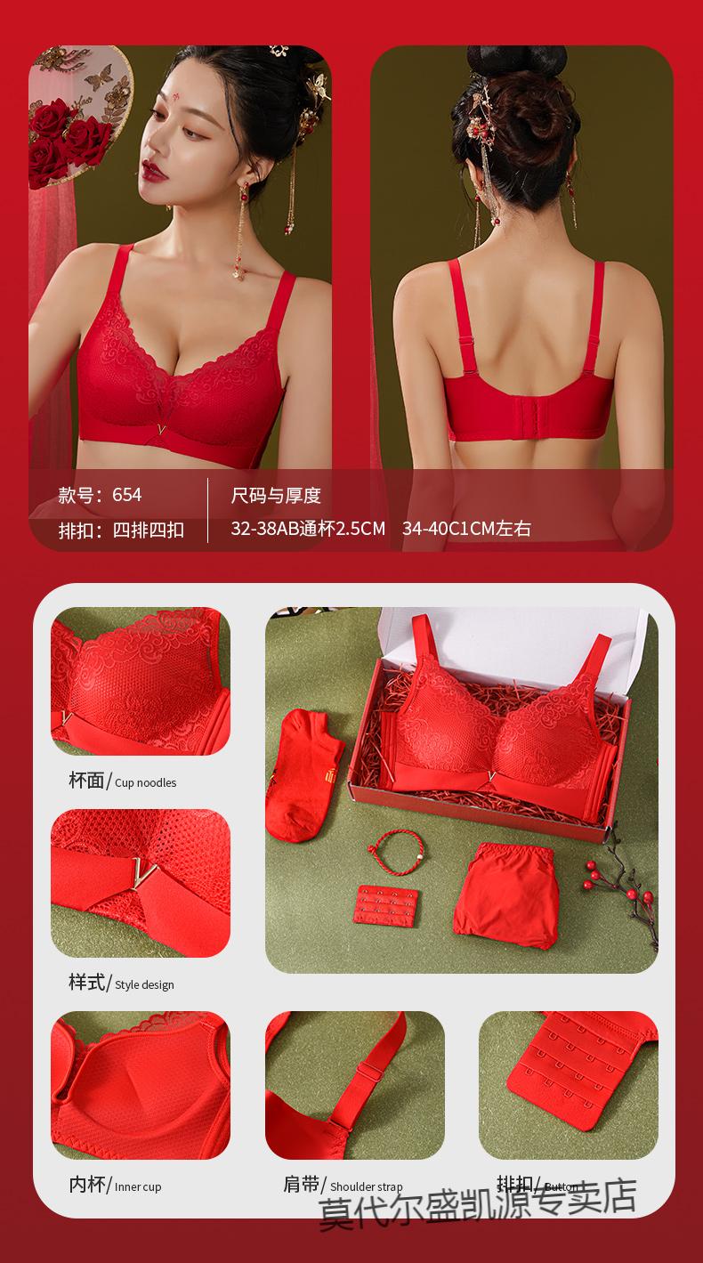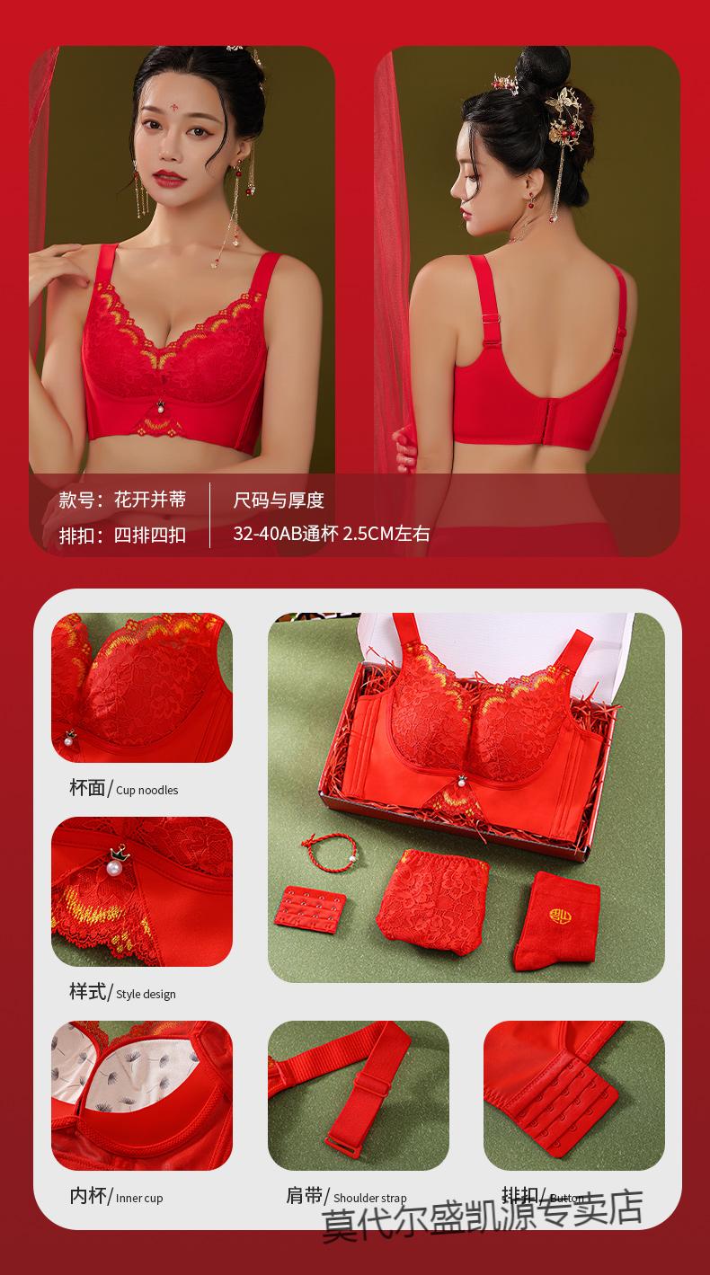 Modal Zodiac Year Red Underwear Set Women Small Breast Gathering Sexy Lace Red Festive Wedding Bra Blooming Wealth Lucky Gift Box Set 70A 32