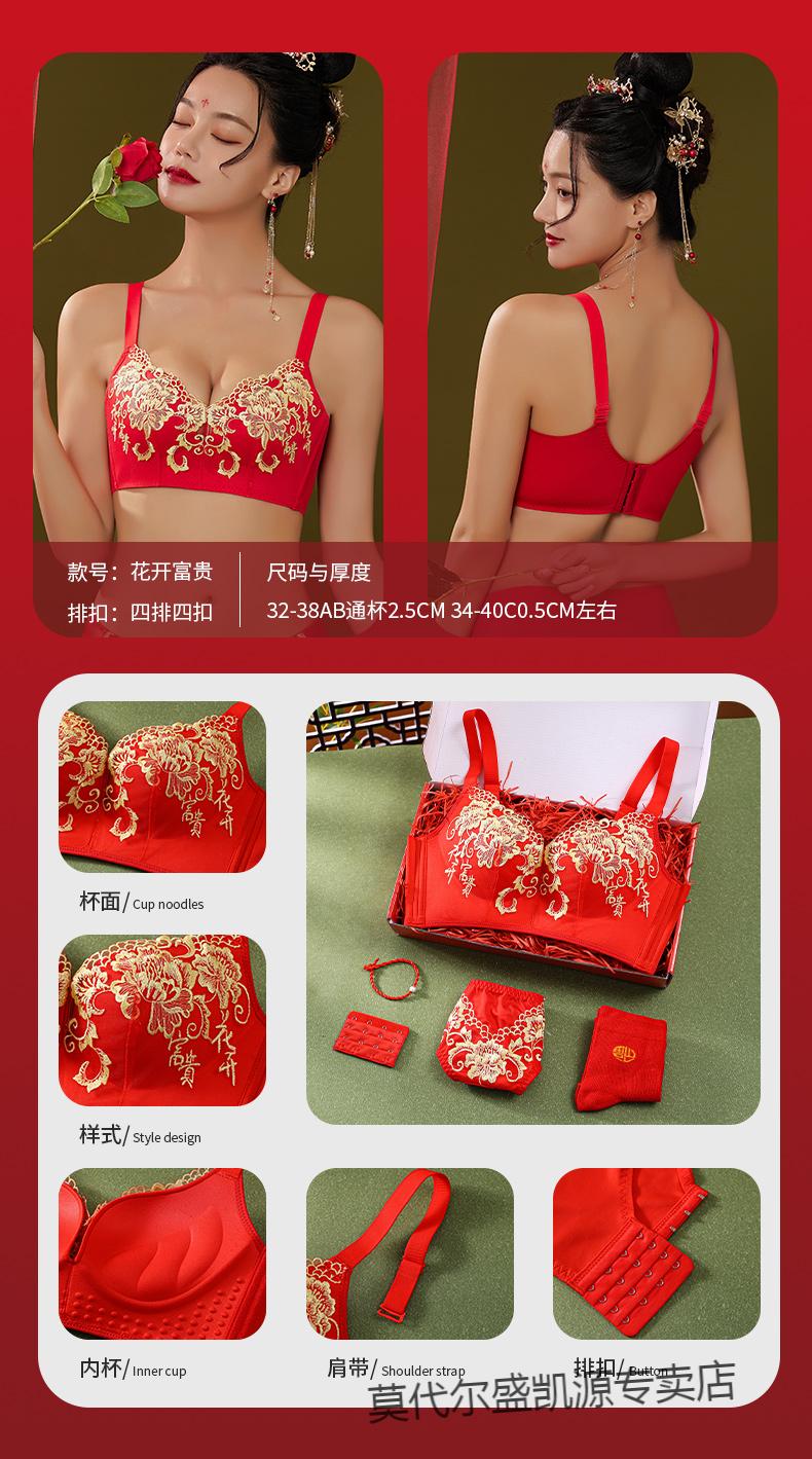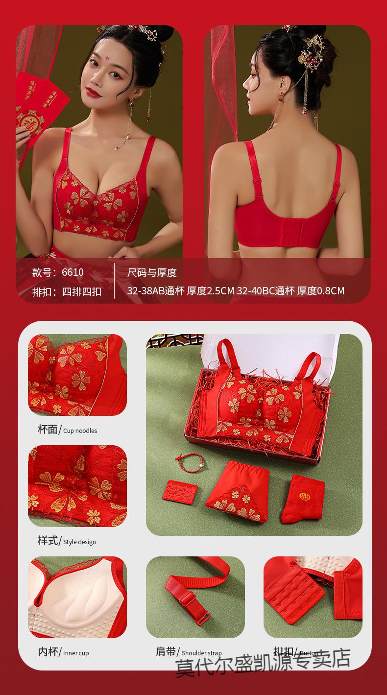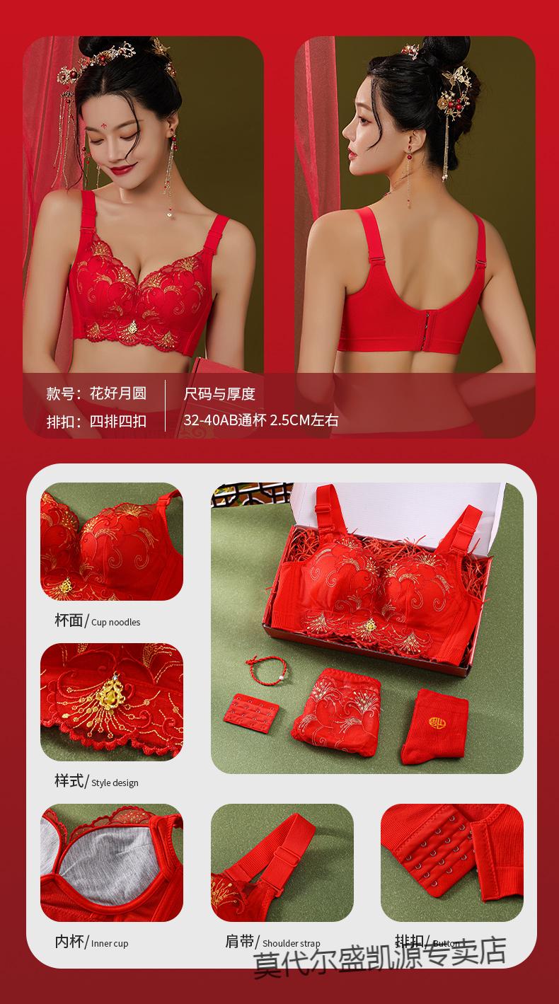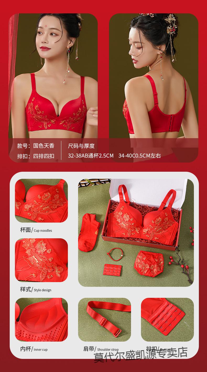Modal Zodiac Year Red Underwear Set Women Small Breast Gathering Sexy Lace Red Festive Wedding Bra Blooming Wealth Lucky Gift Box Set 70A 32