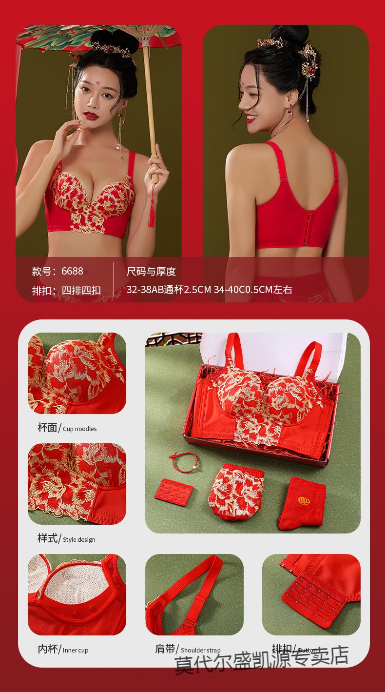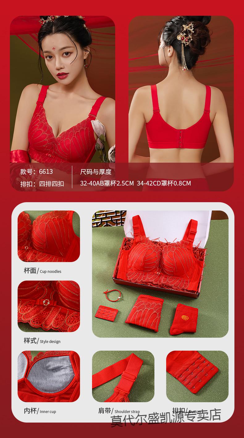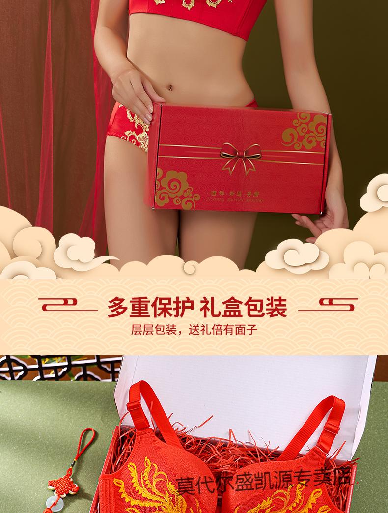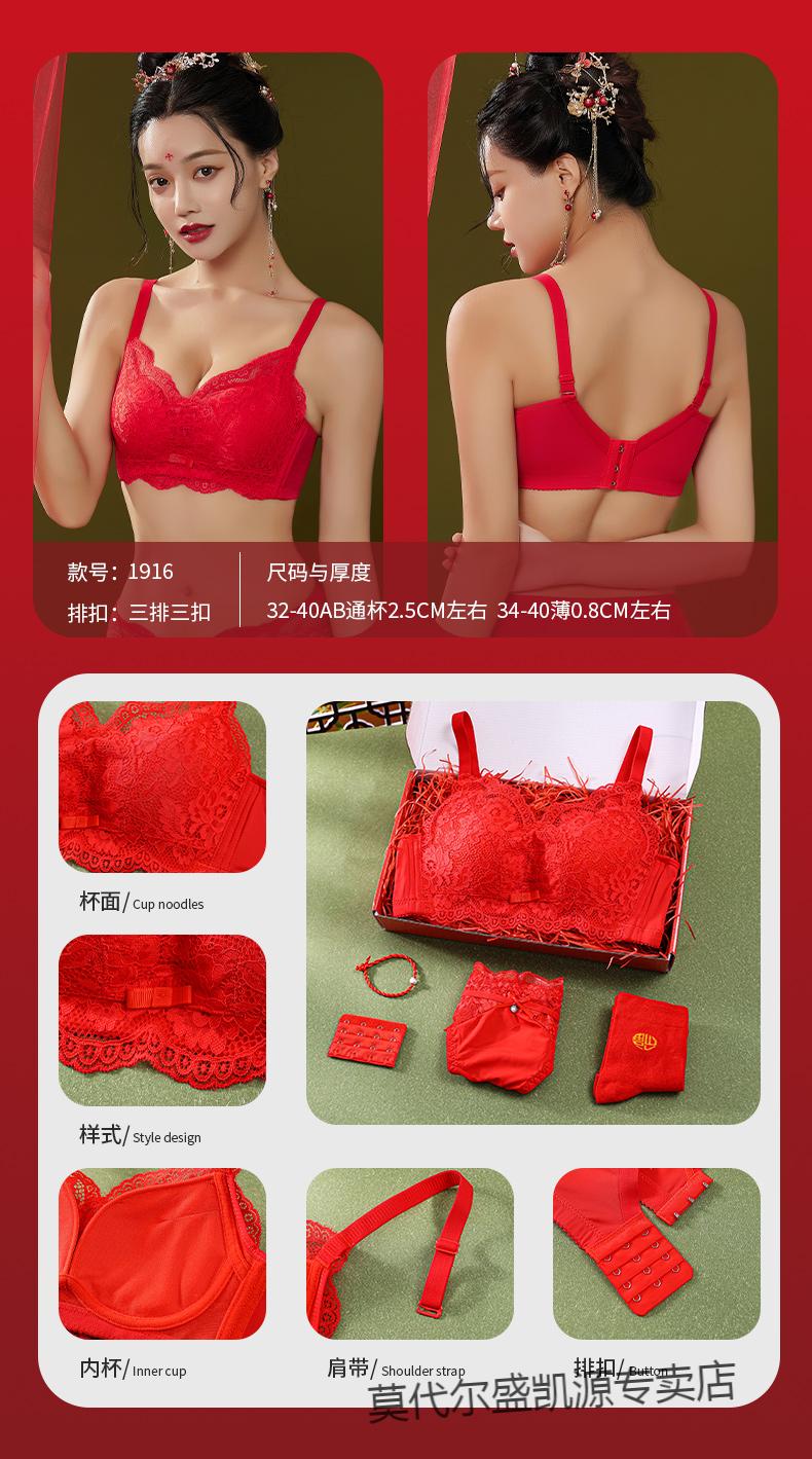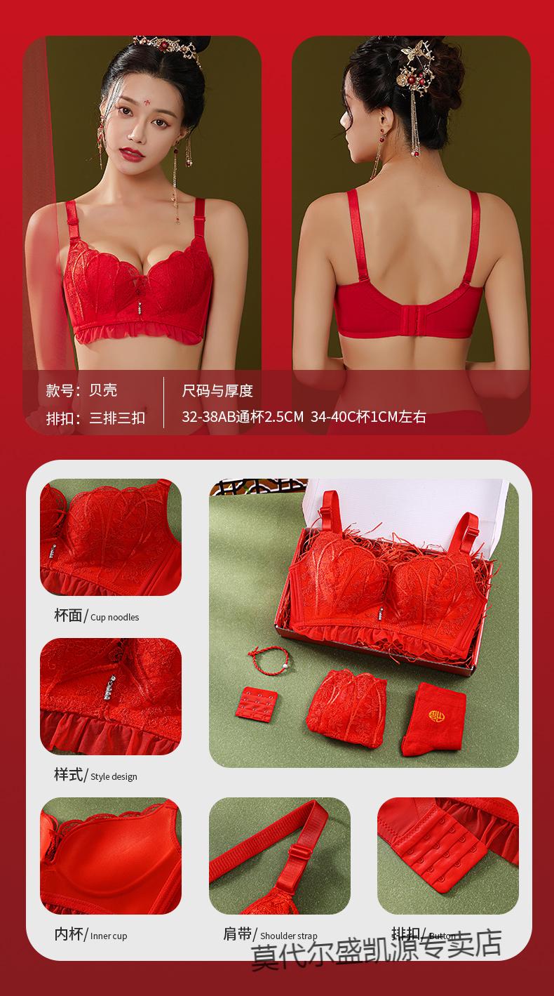 Modal Zodiac Year Red Underwear Set Women Small Breast Gathering Sexy Lace Red Festive Wedding Bra Blooming Wealth Lucky Gift Box Set 70A 32