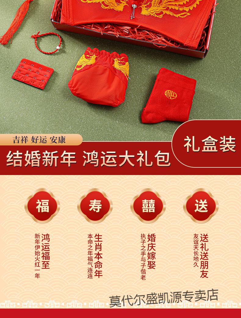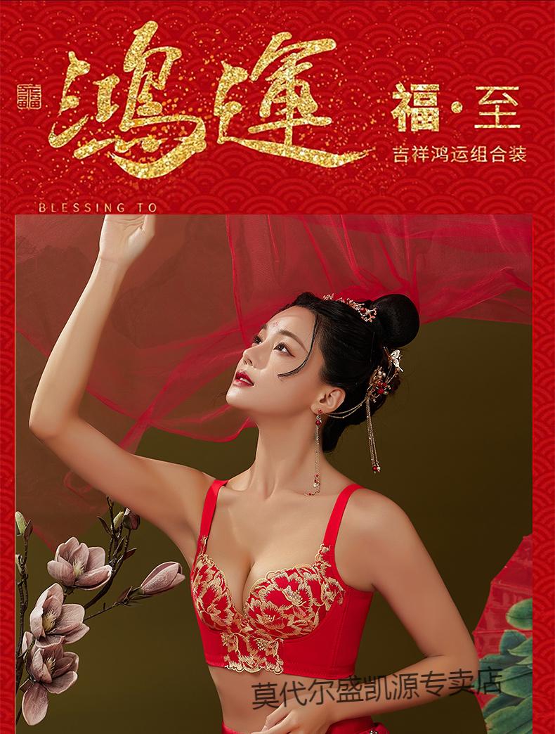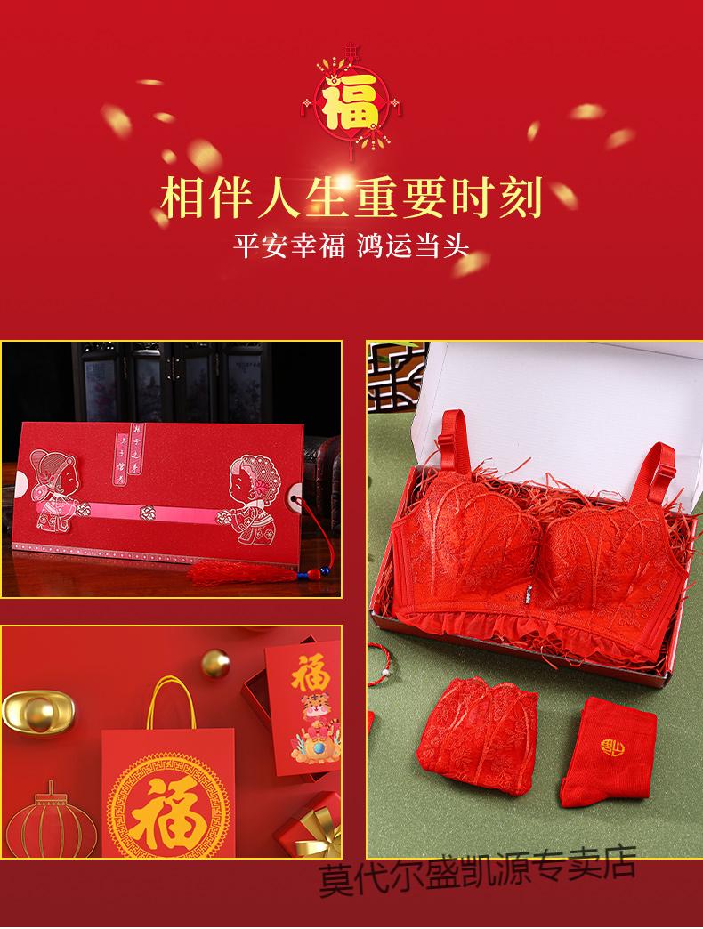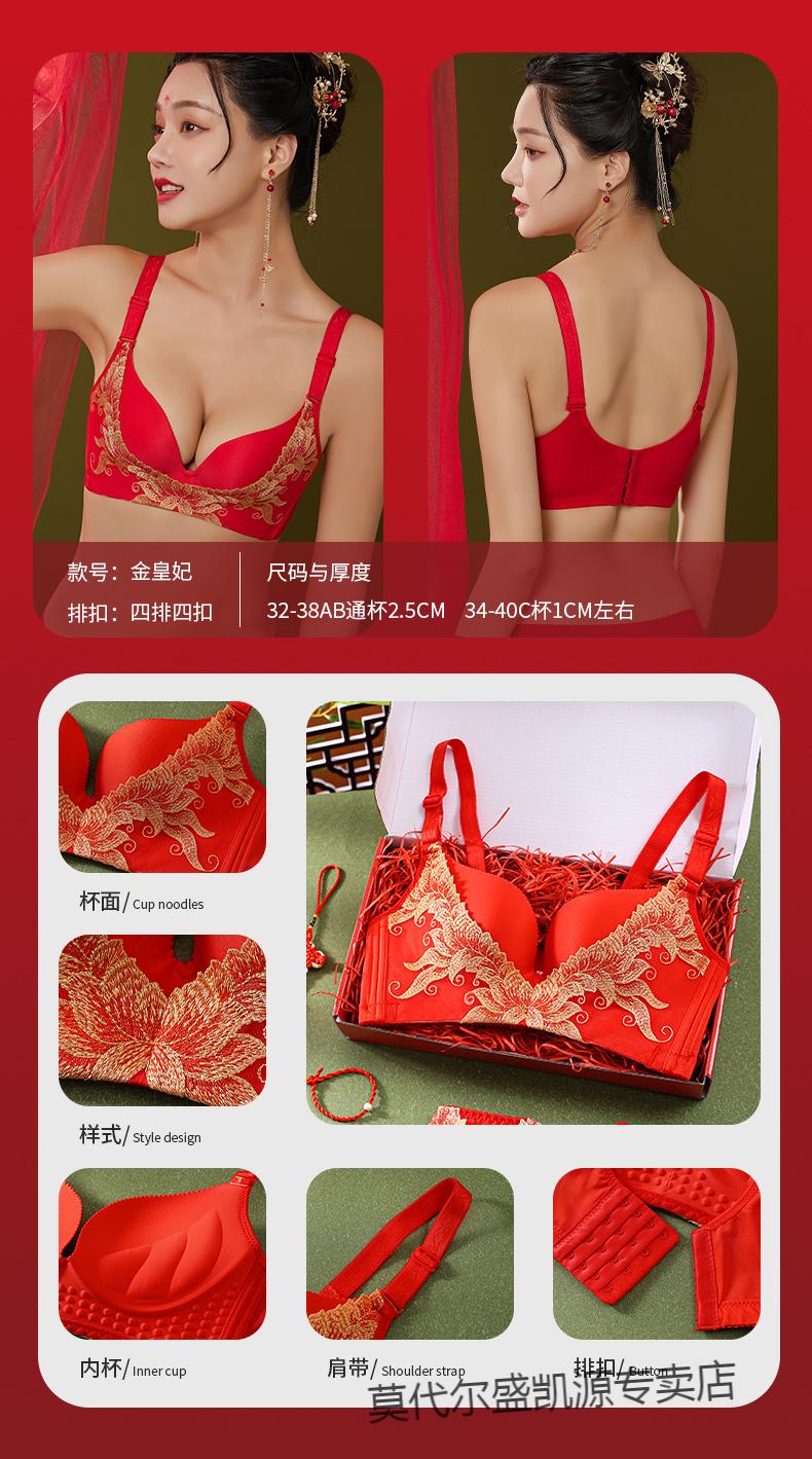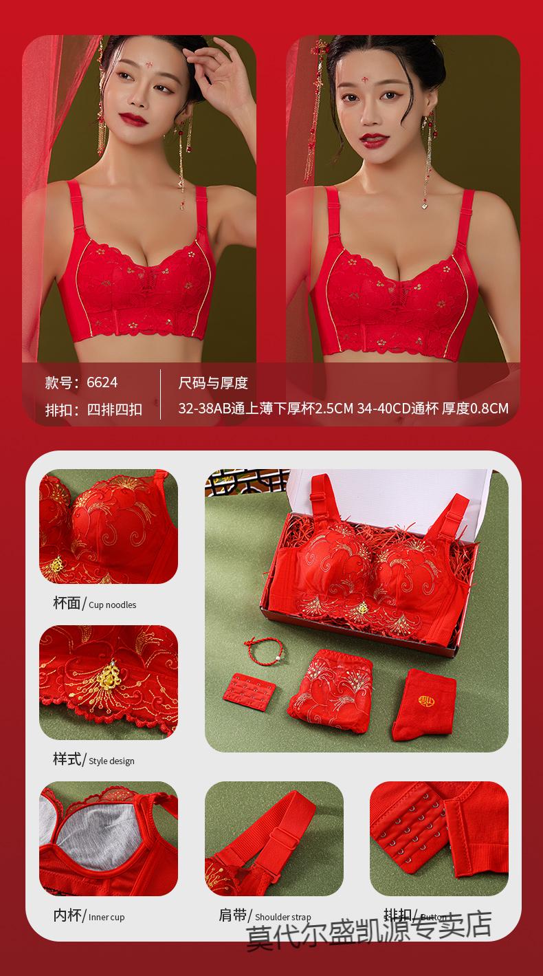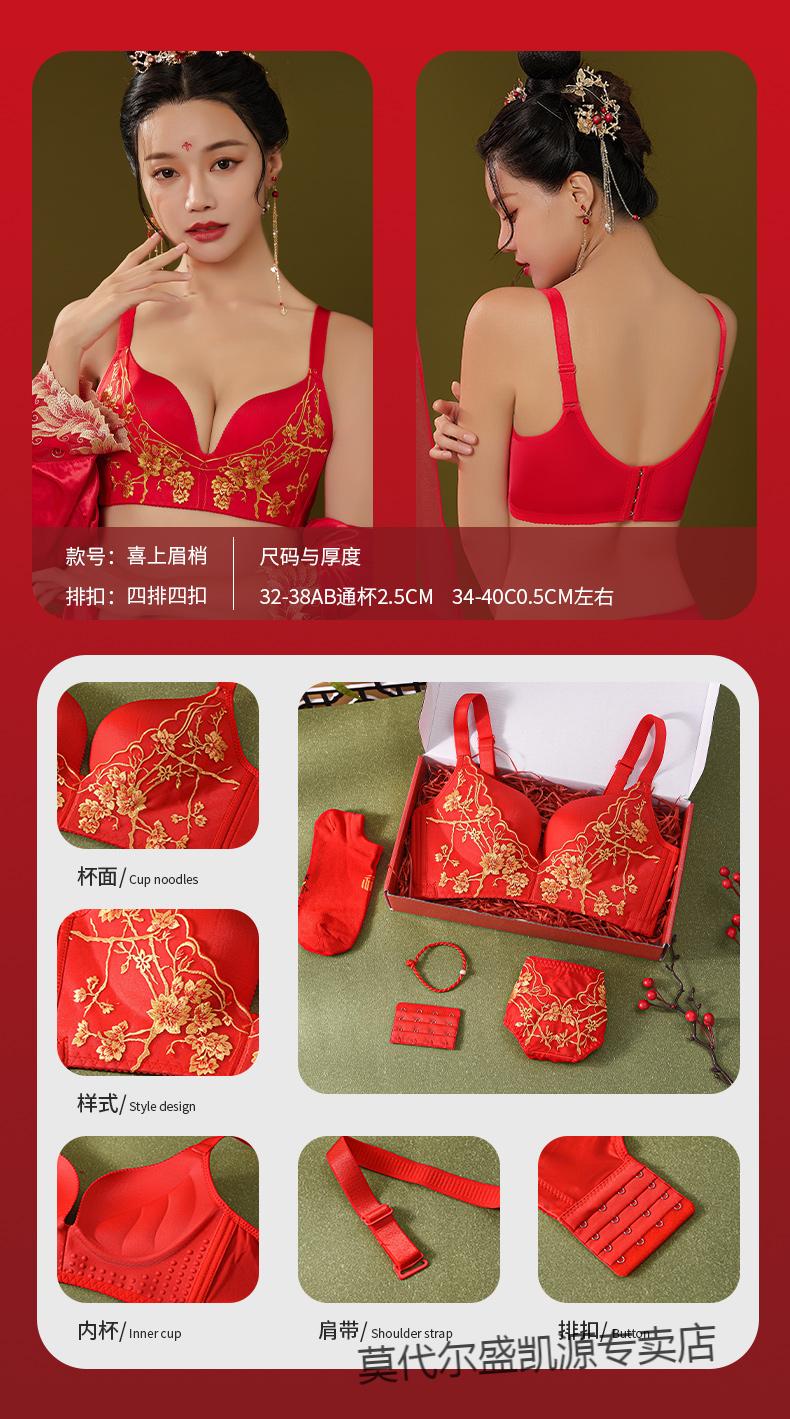 Modal Zodiac Year Red Underwear Set Women Small Breast Gathering Sexy Lace Red Festive Wedding Bra Blooming Wealth Lucky Gift Box Set 70A 32