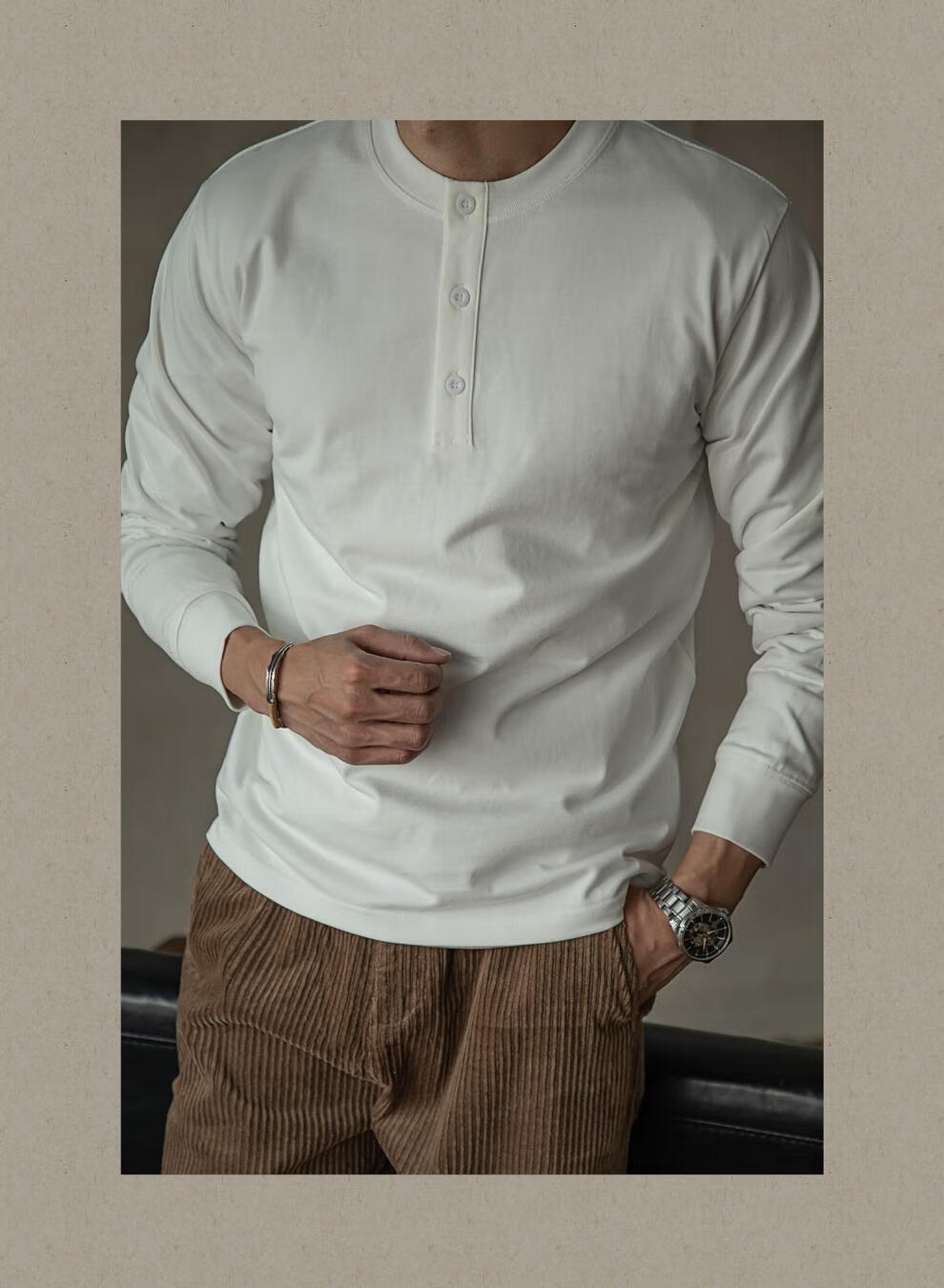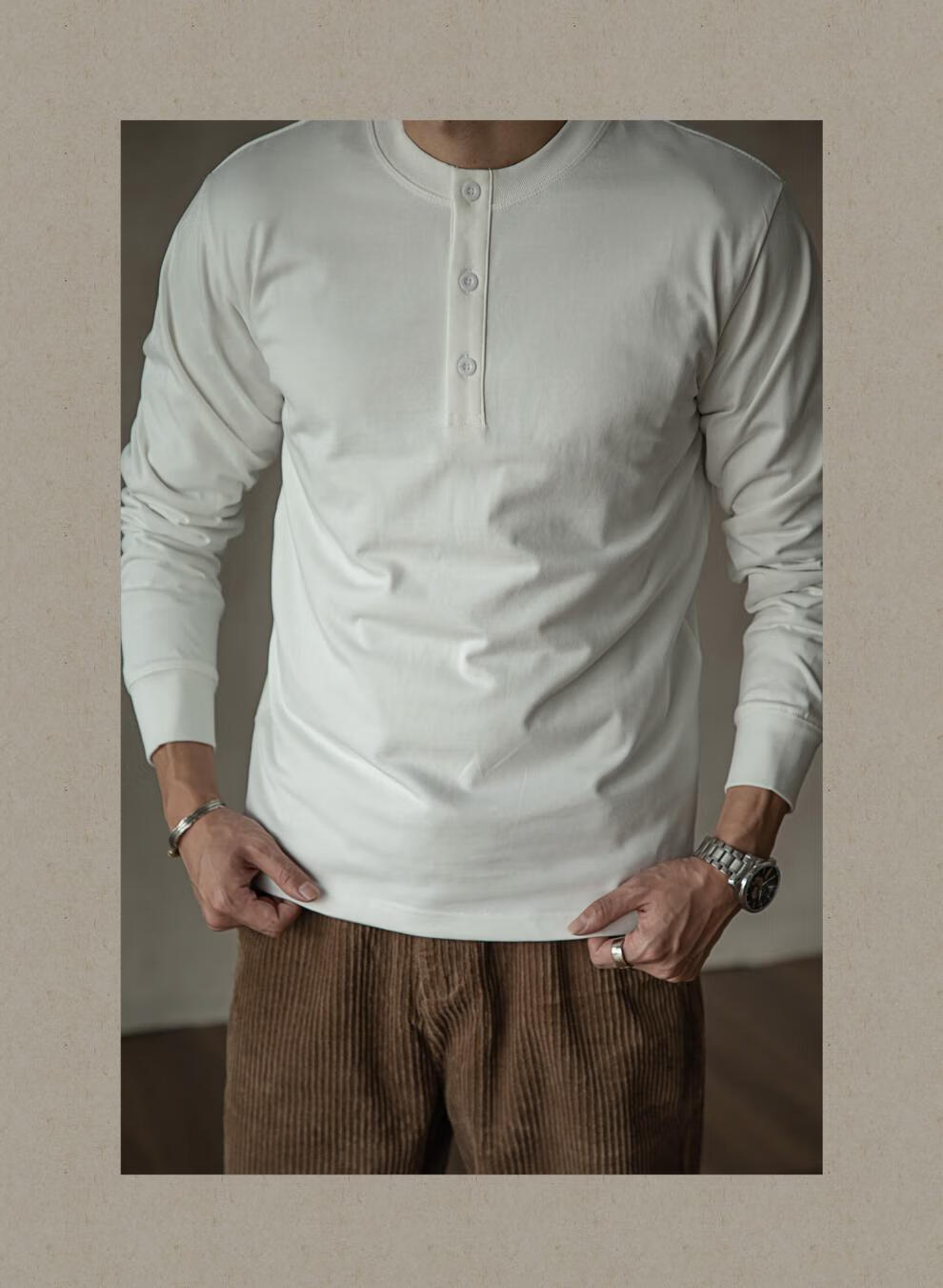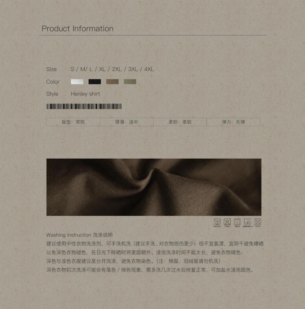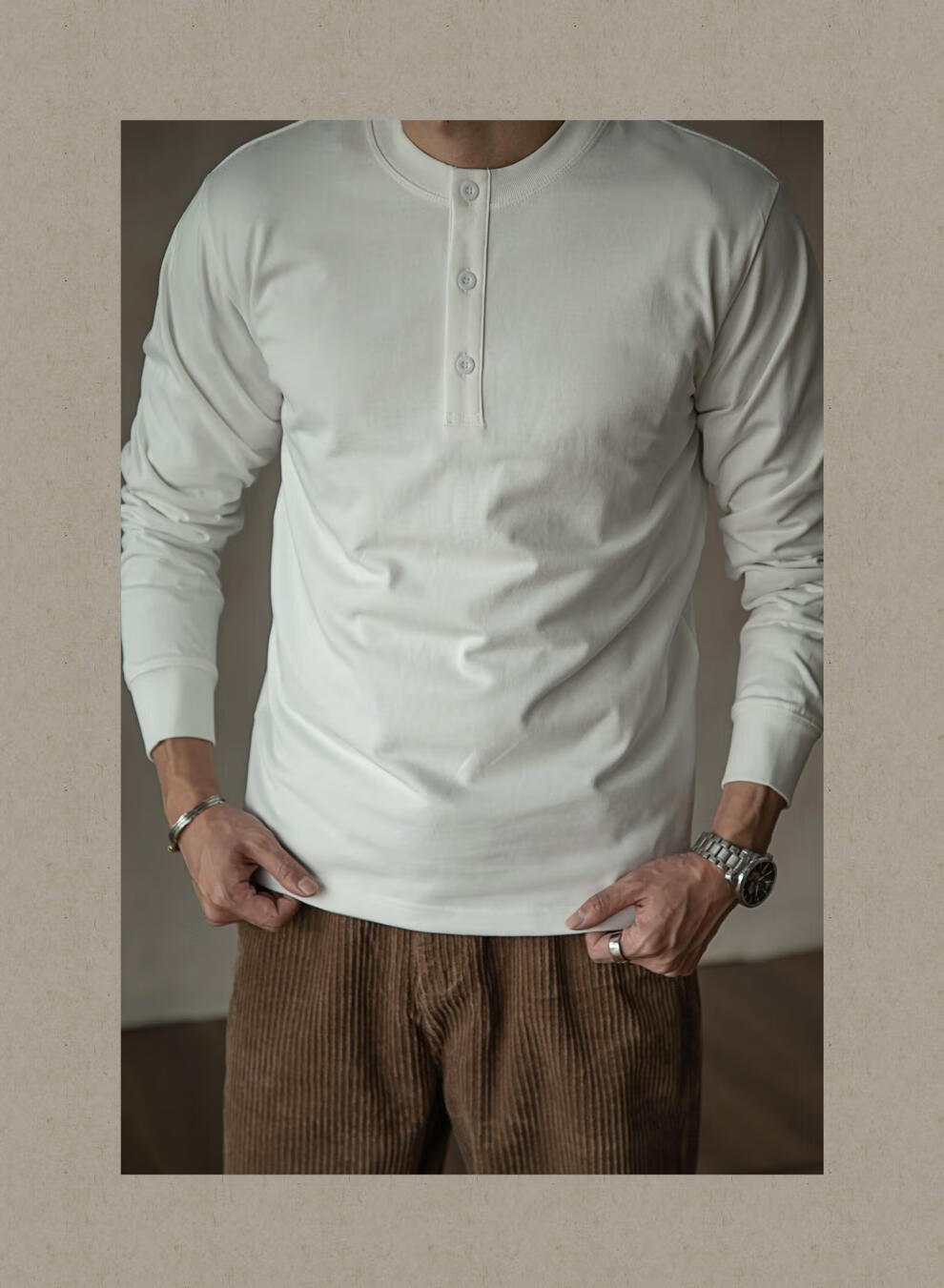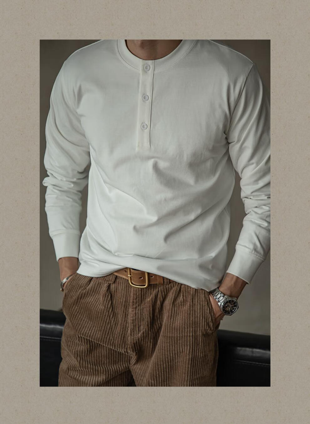 ROMON high-end workwear American retro tough guy style heavy henley T-shirt long-sleeved pure cotton inner layering shirt for men autumn and winter brown L