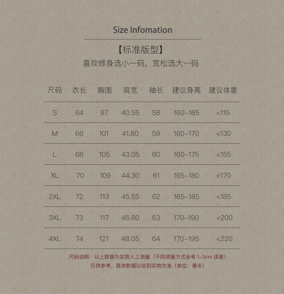 China (cm) 165 / 88-90 170 / 96-98 175 / 108-110 180 / 118-122 185 / 126-130