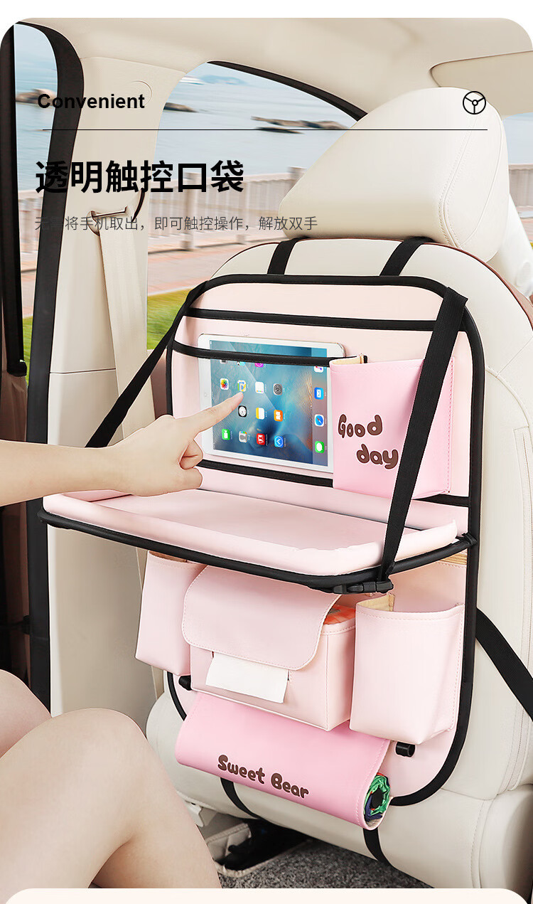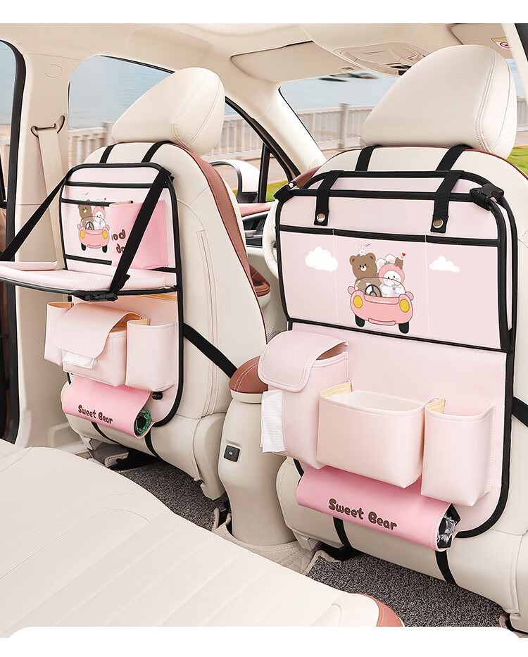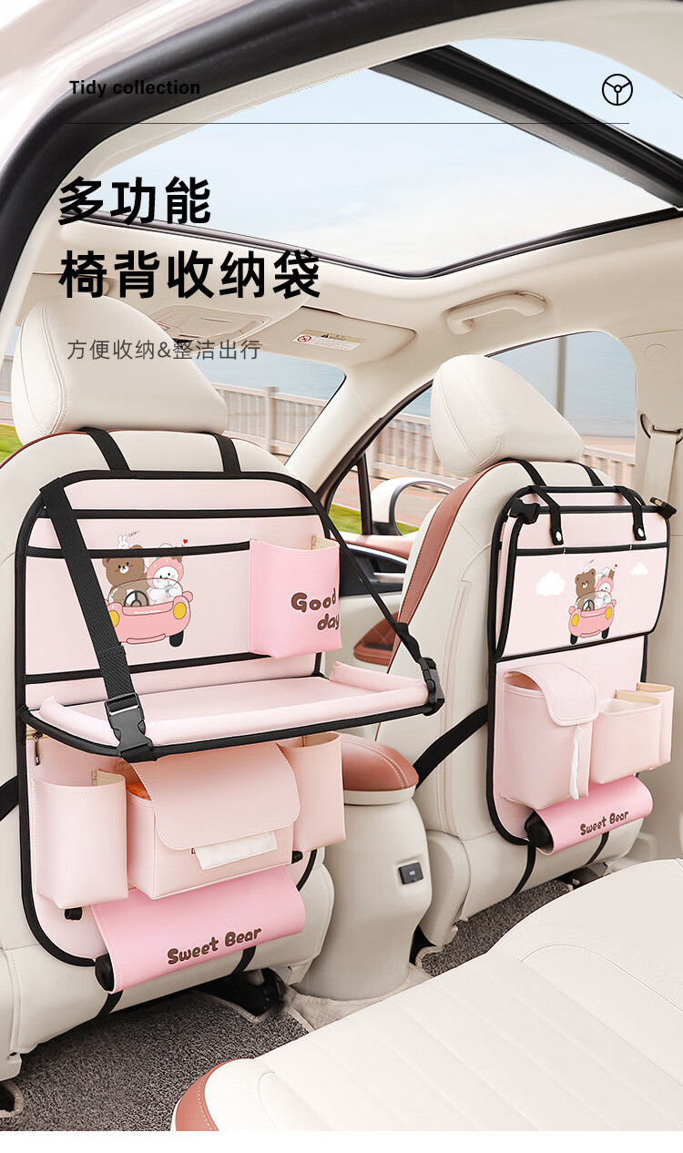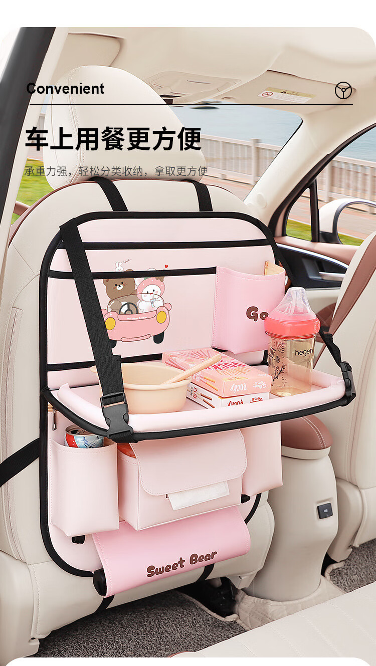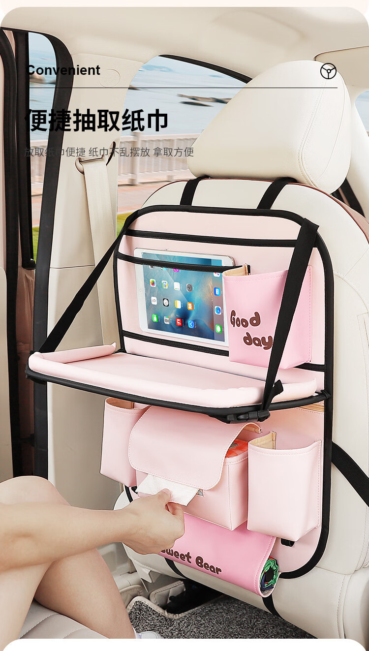 Car seat back storage bag, children's table storage bag in car, car multi-functional rear storage bag, cake bear - foldable dining table + tissue box