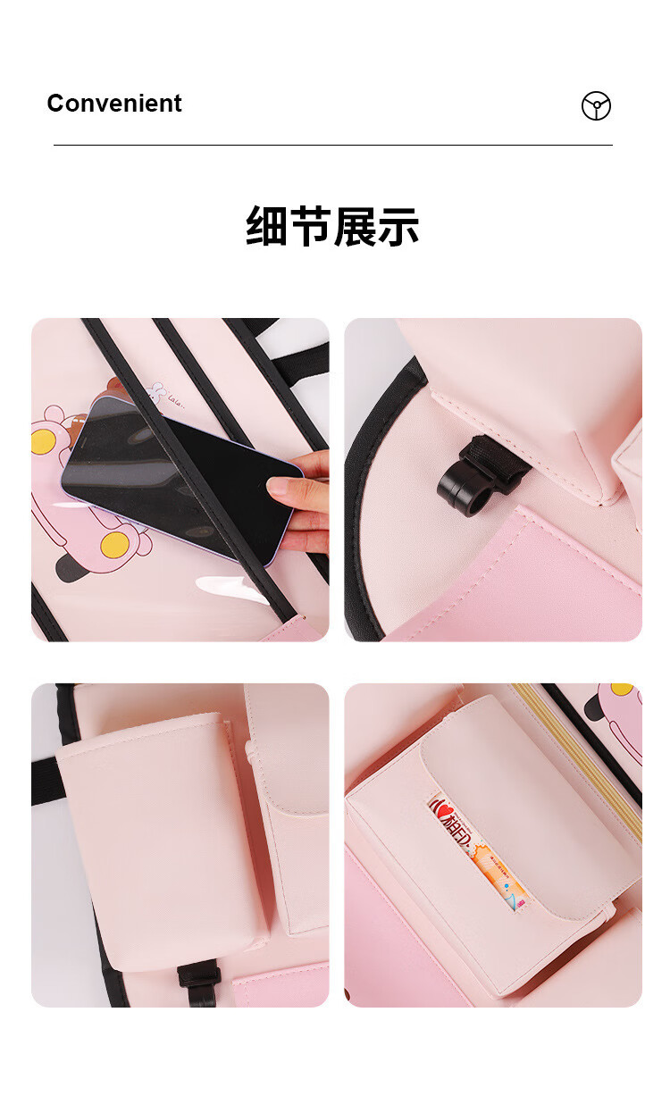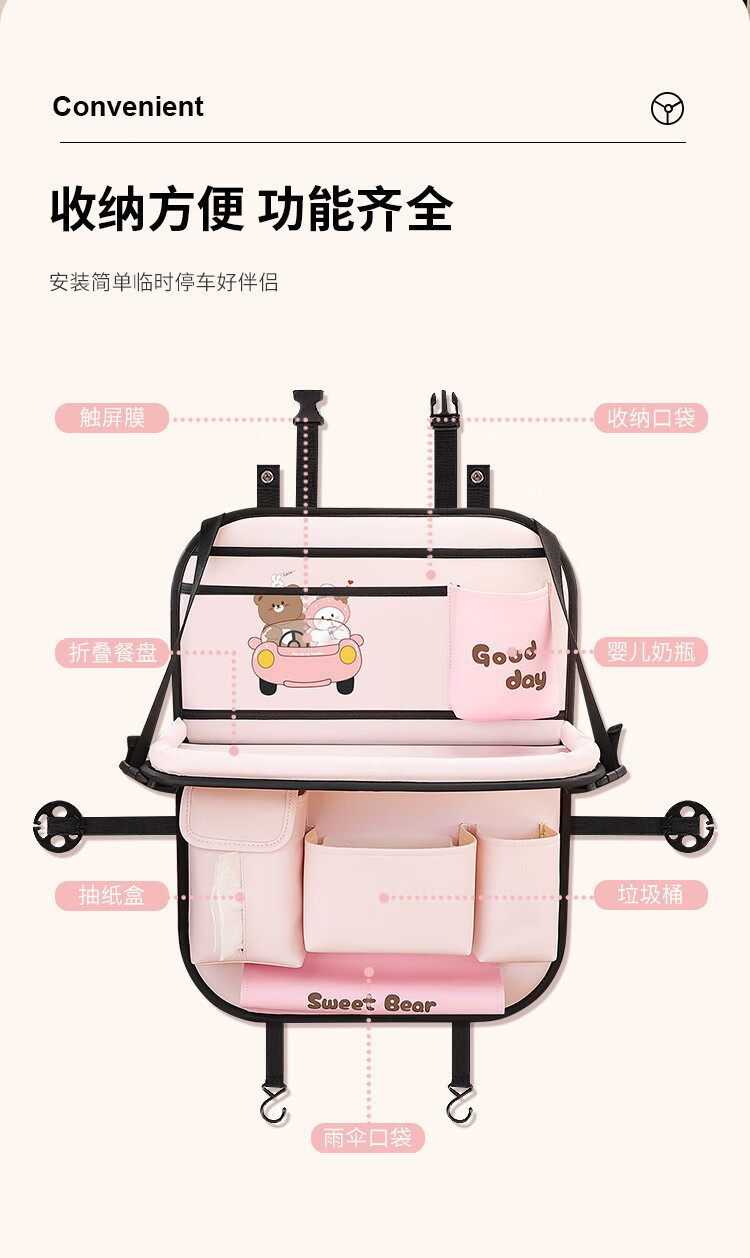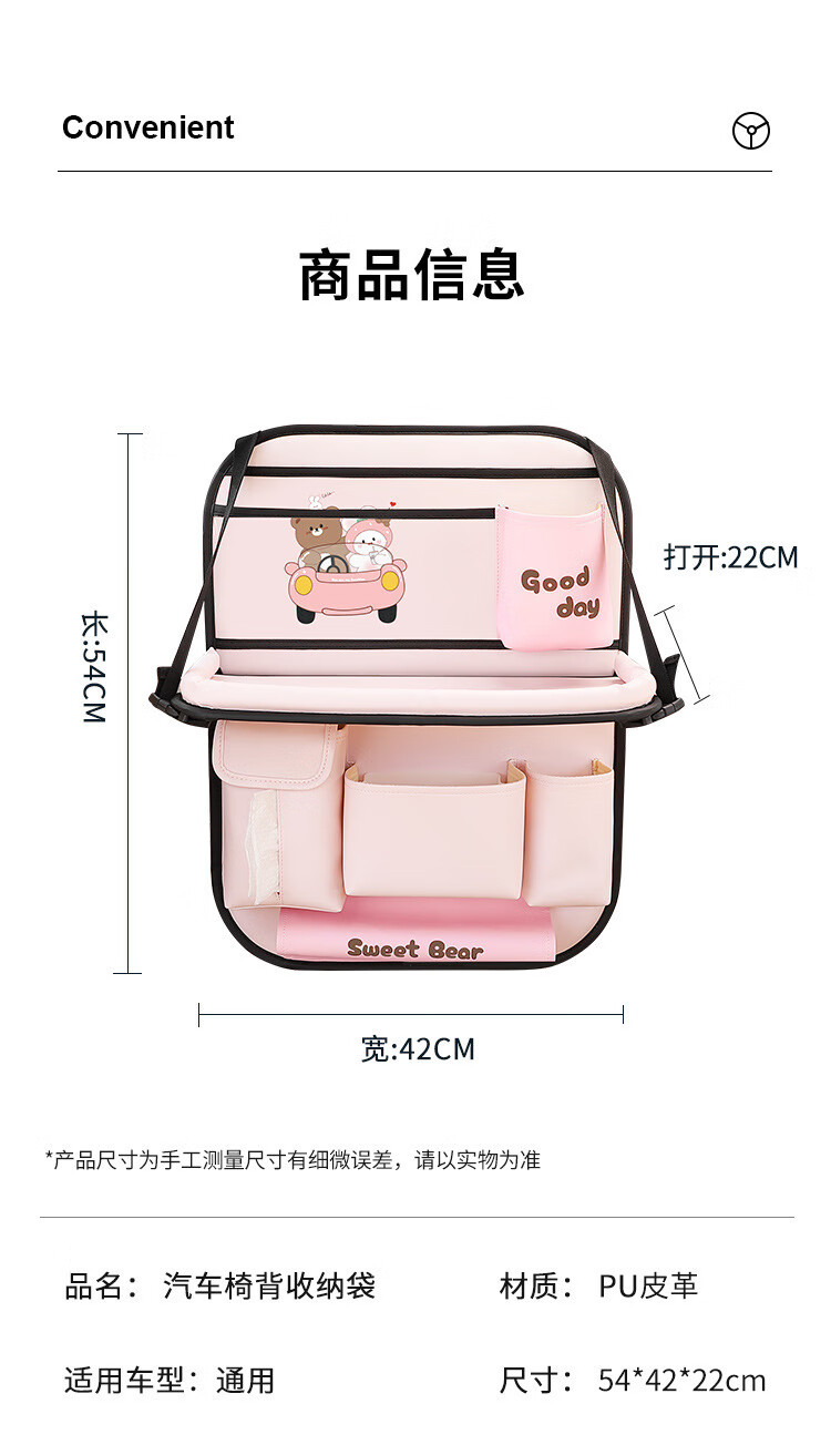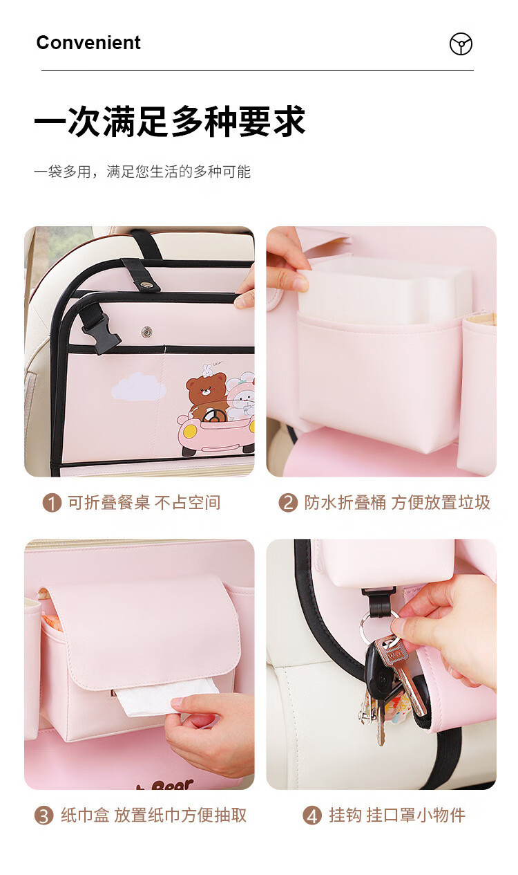 Car seat back storage bag, children's table storage bag in car, car multi-functional rear storage bag, cake bear - foldable dining table + tissue box