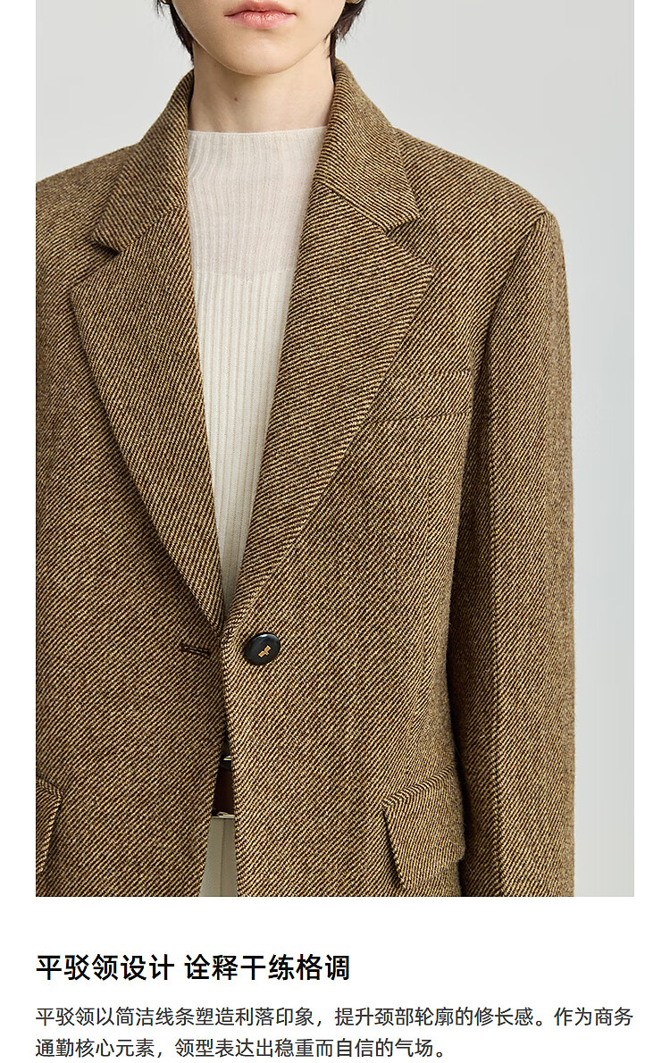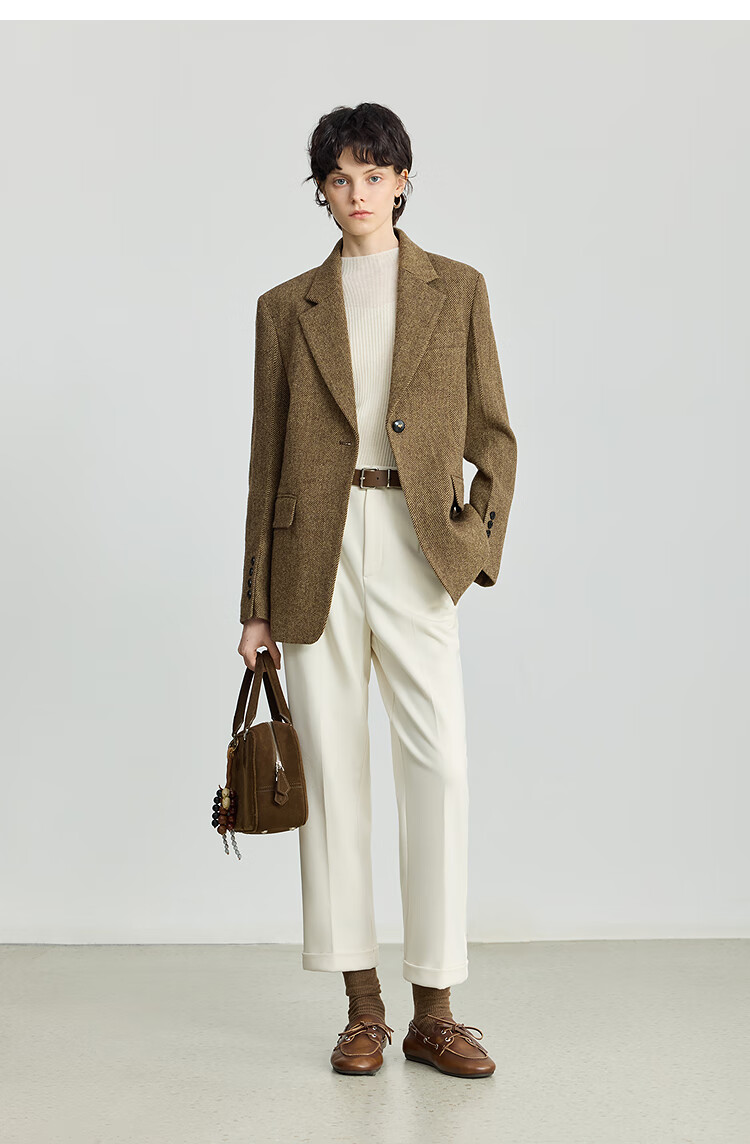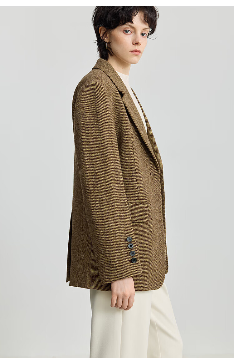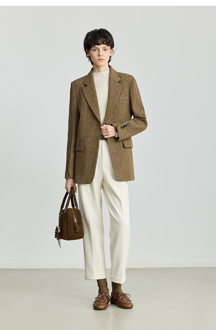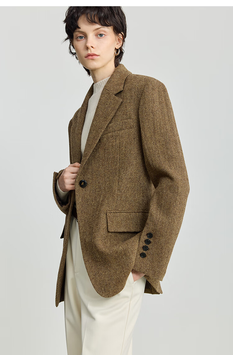 LILY 100% wool 2025 winter new style retro old money style thickened temperament commuter brown suit jacket for women 710 coffee L
