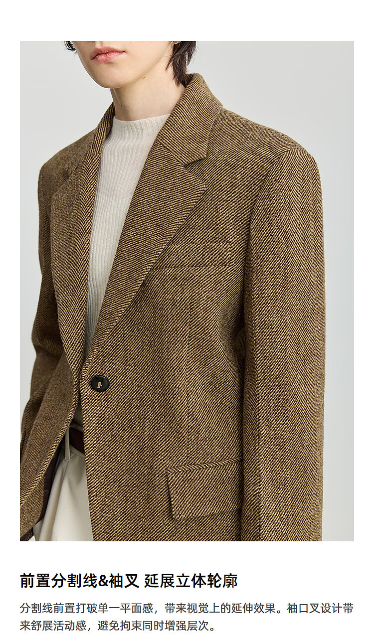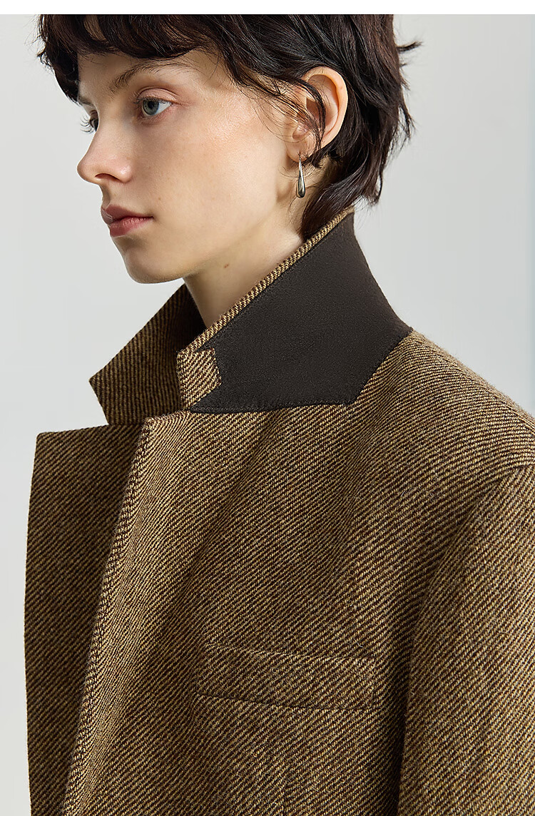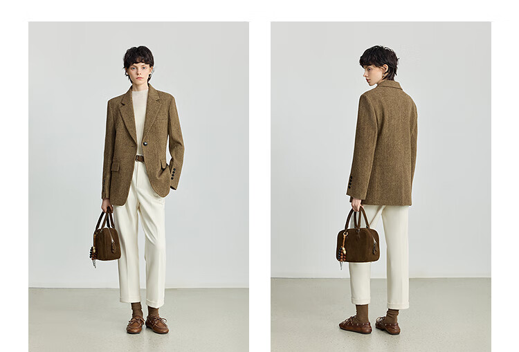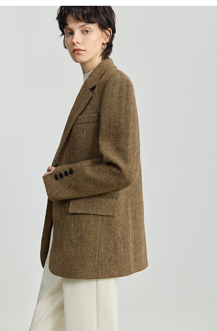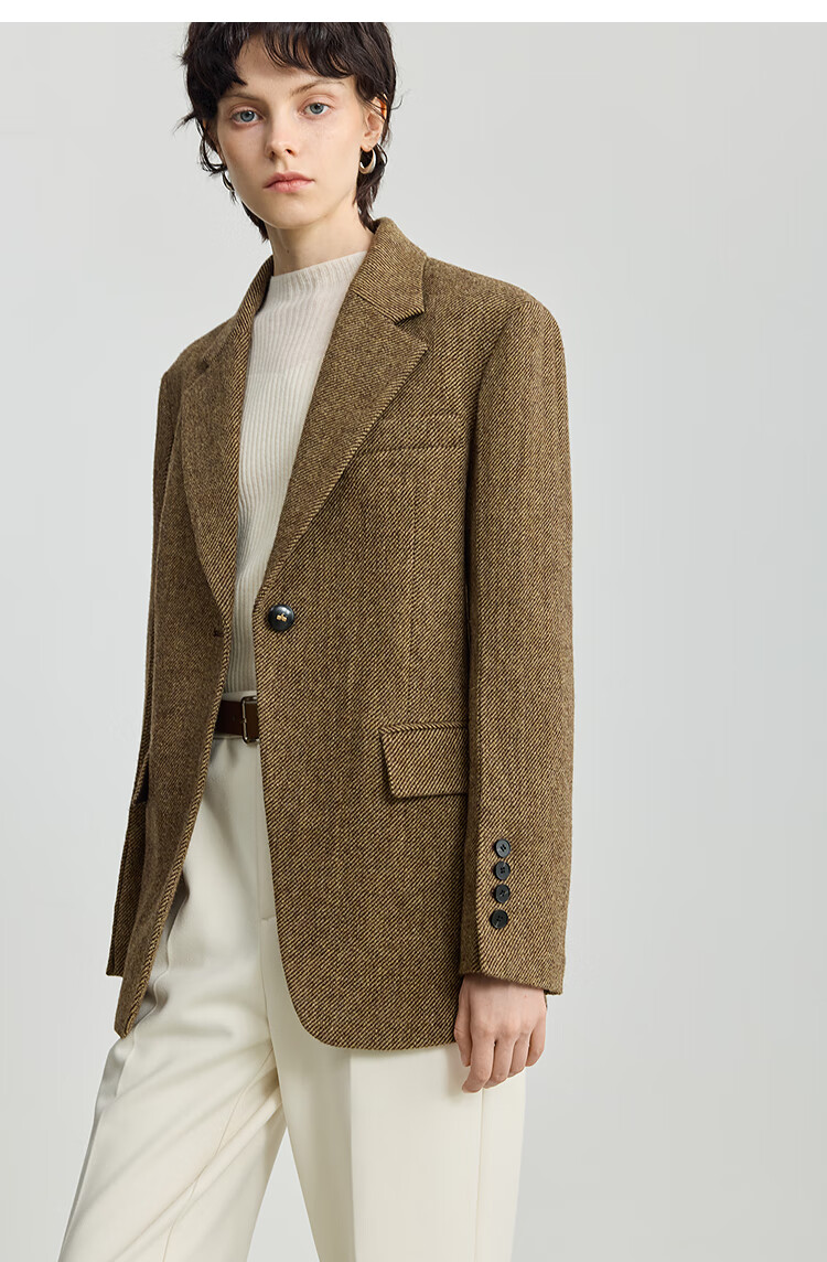LILY 100% wool 2025 winter new style retro old money style thickened temperament commuter brown suit jacket for women 710 coffee L