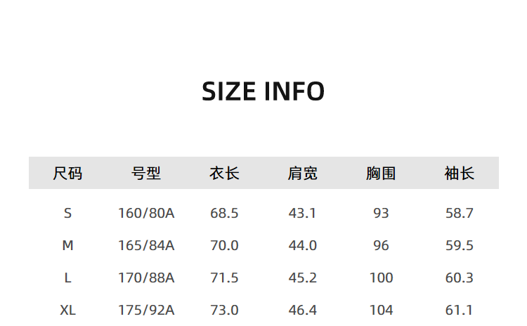 China(cm) 72-76 76-81 81-87 87-93 93-98